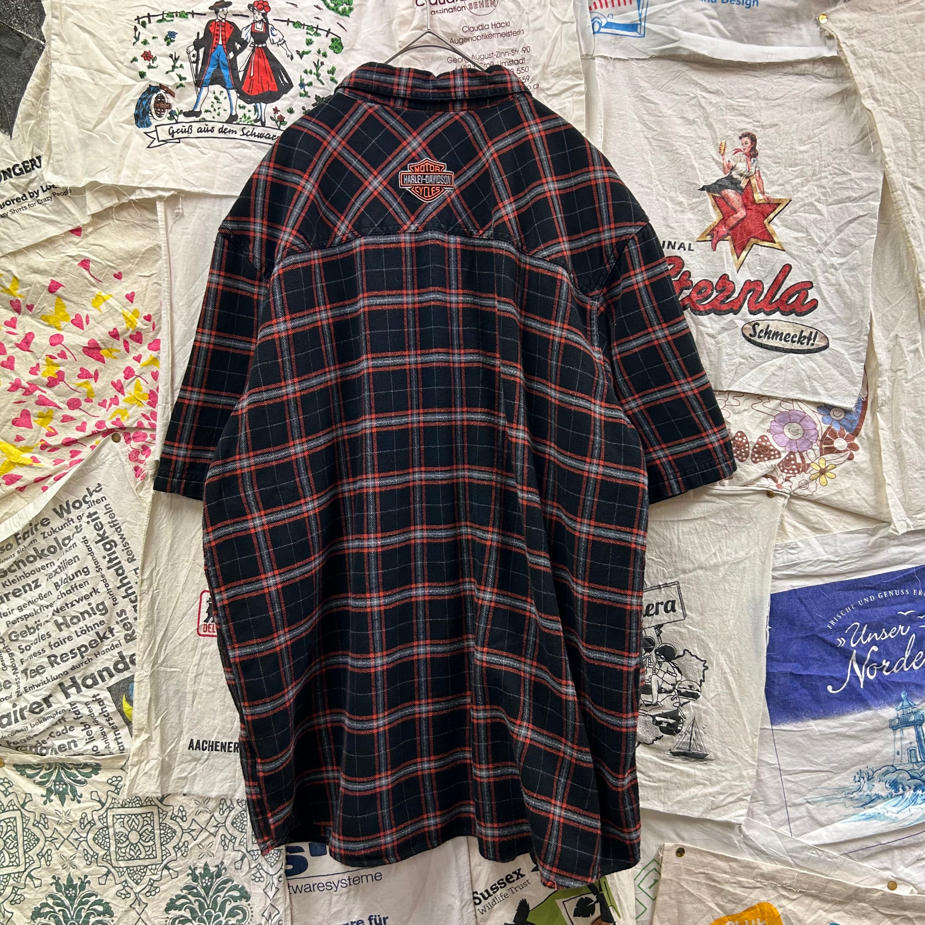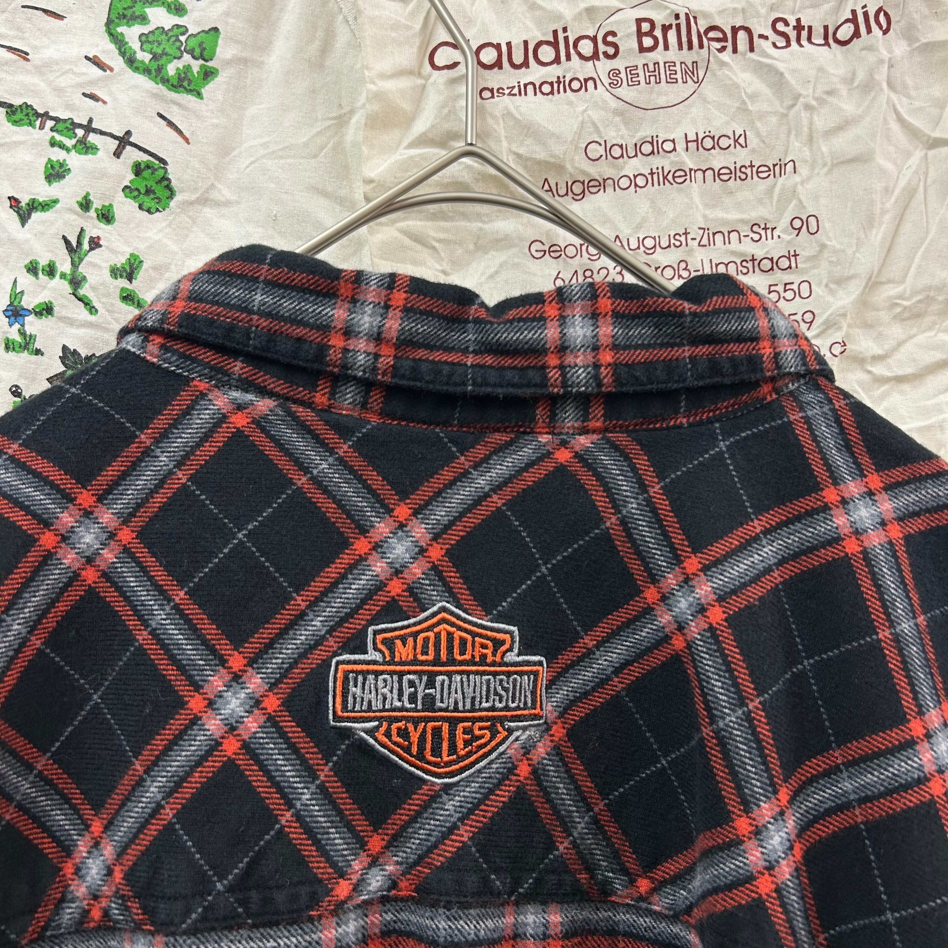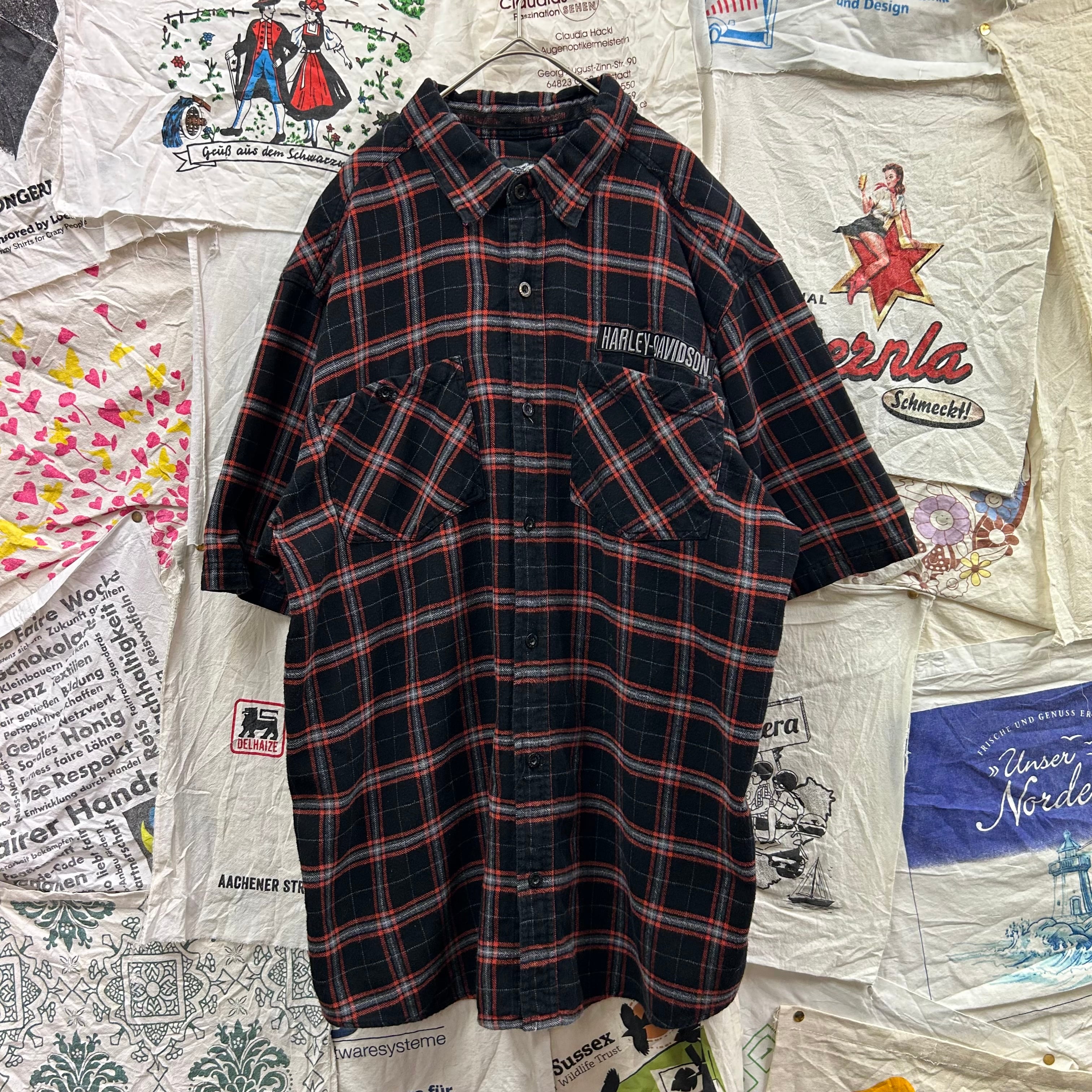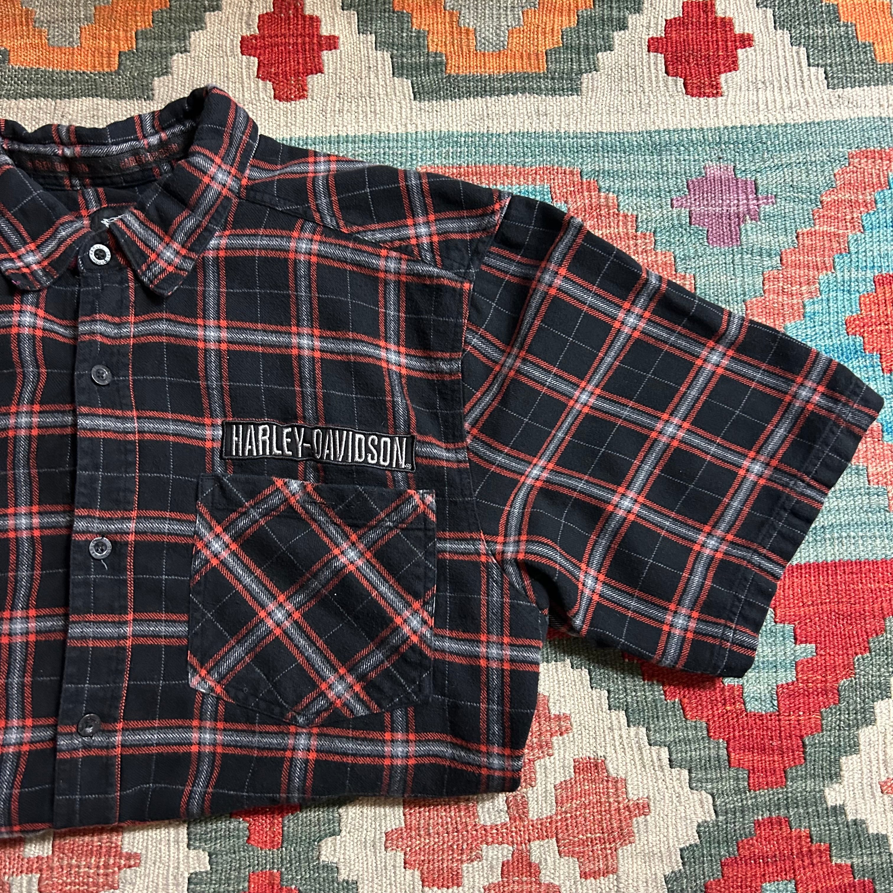 HARLEY-DAVIDSON 胸元ロゴ刺繍チェック柄半袖シャツ