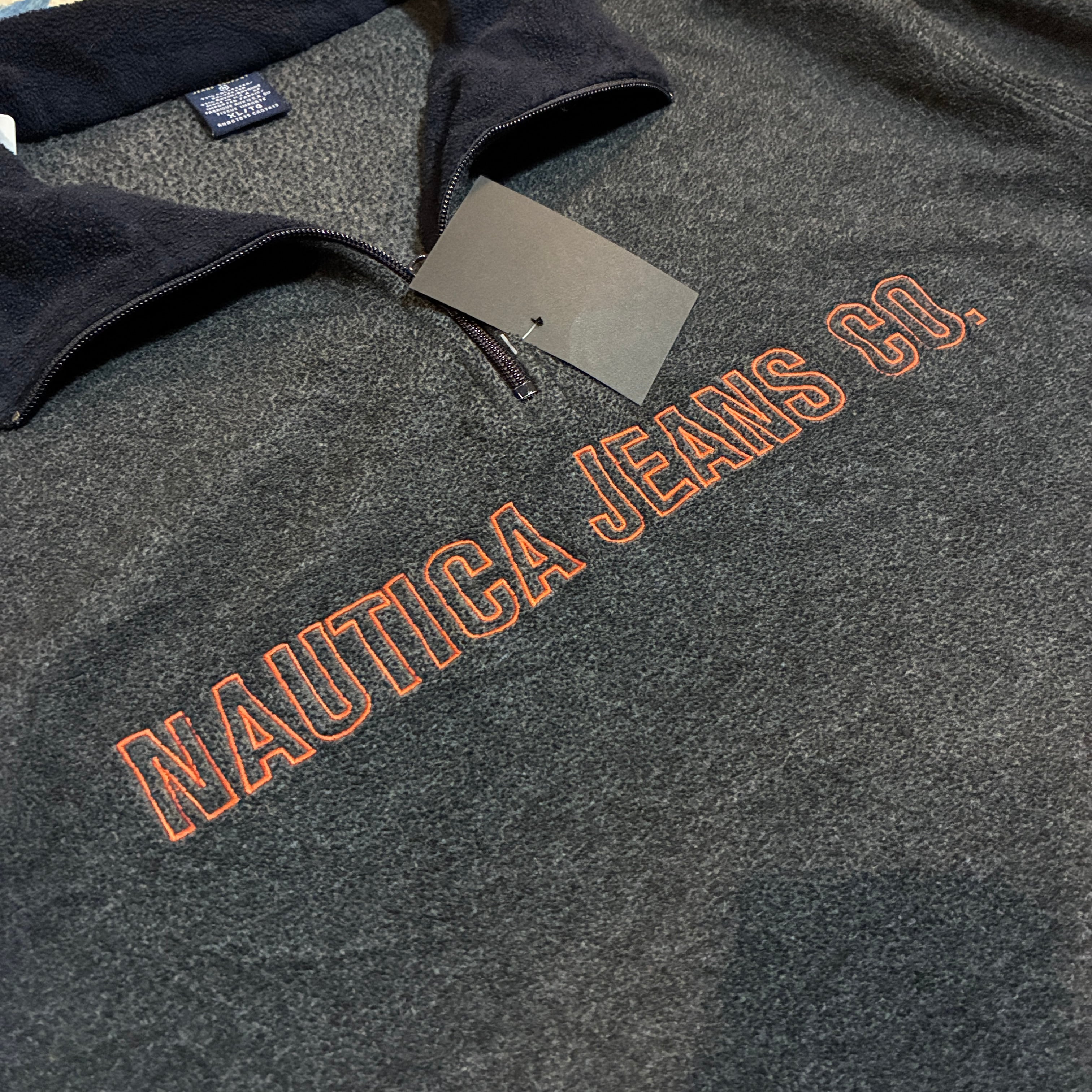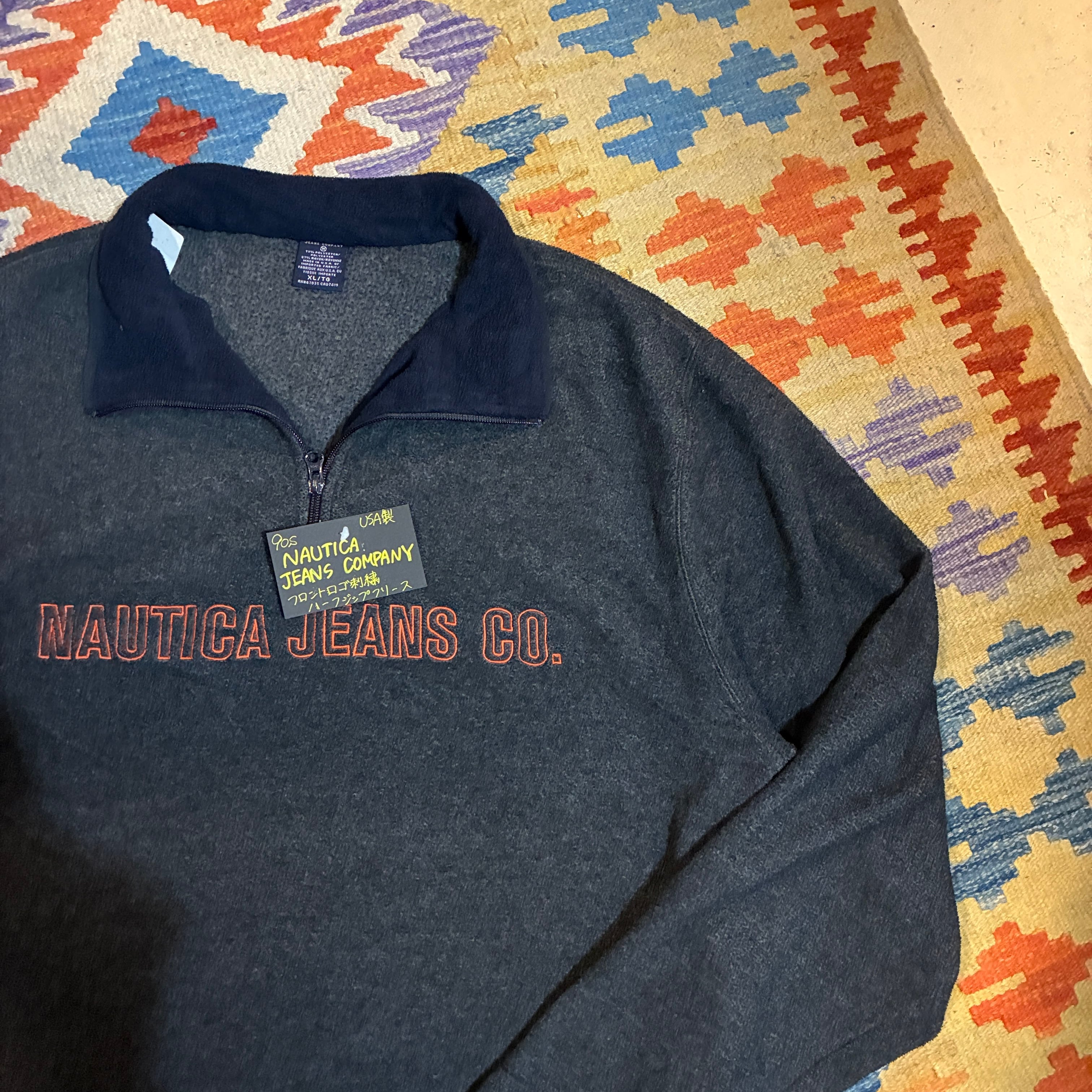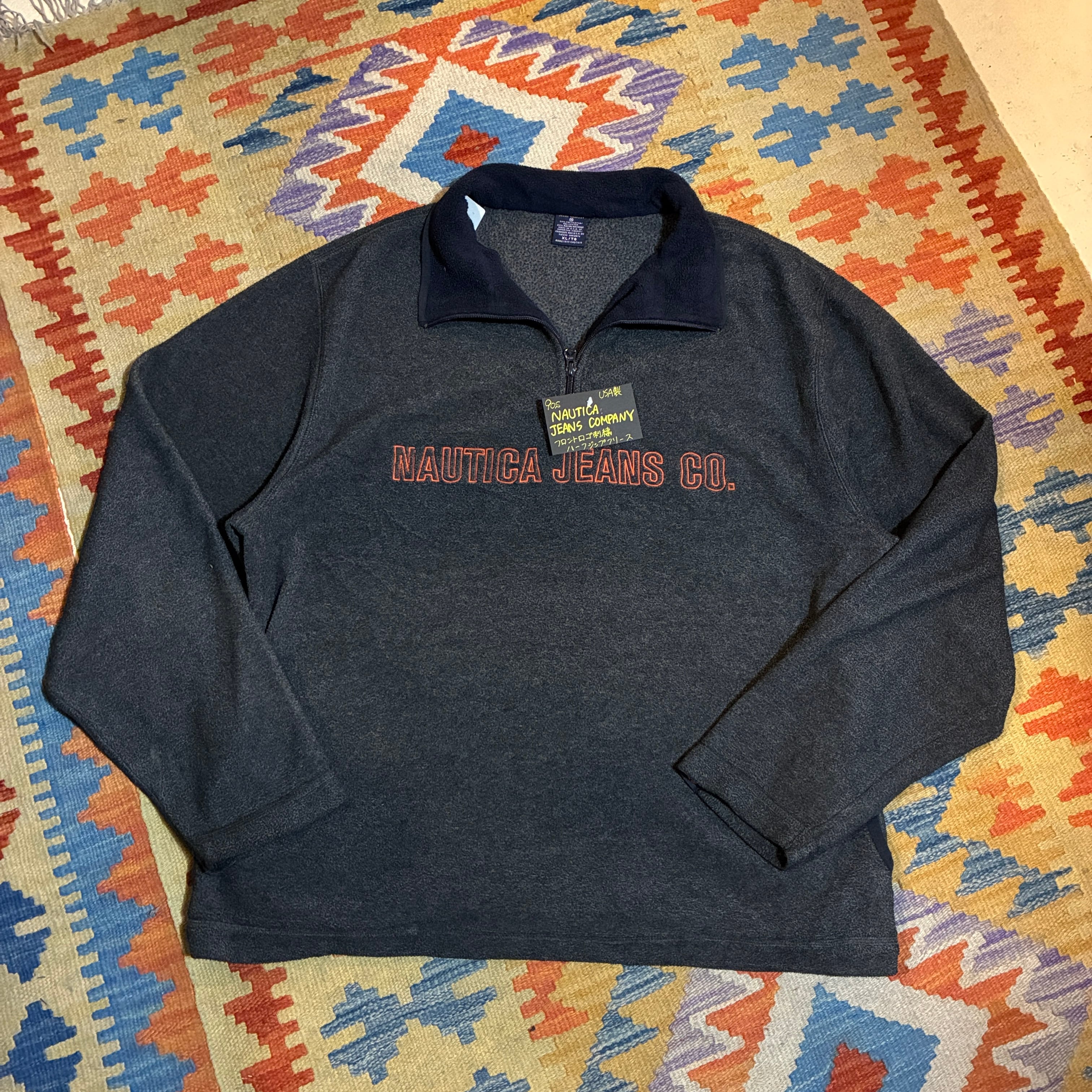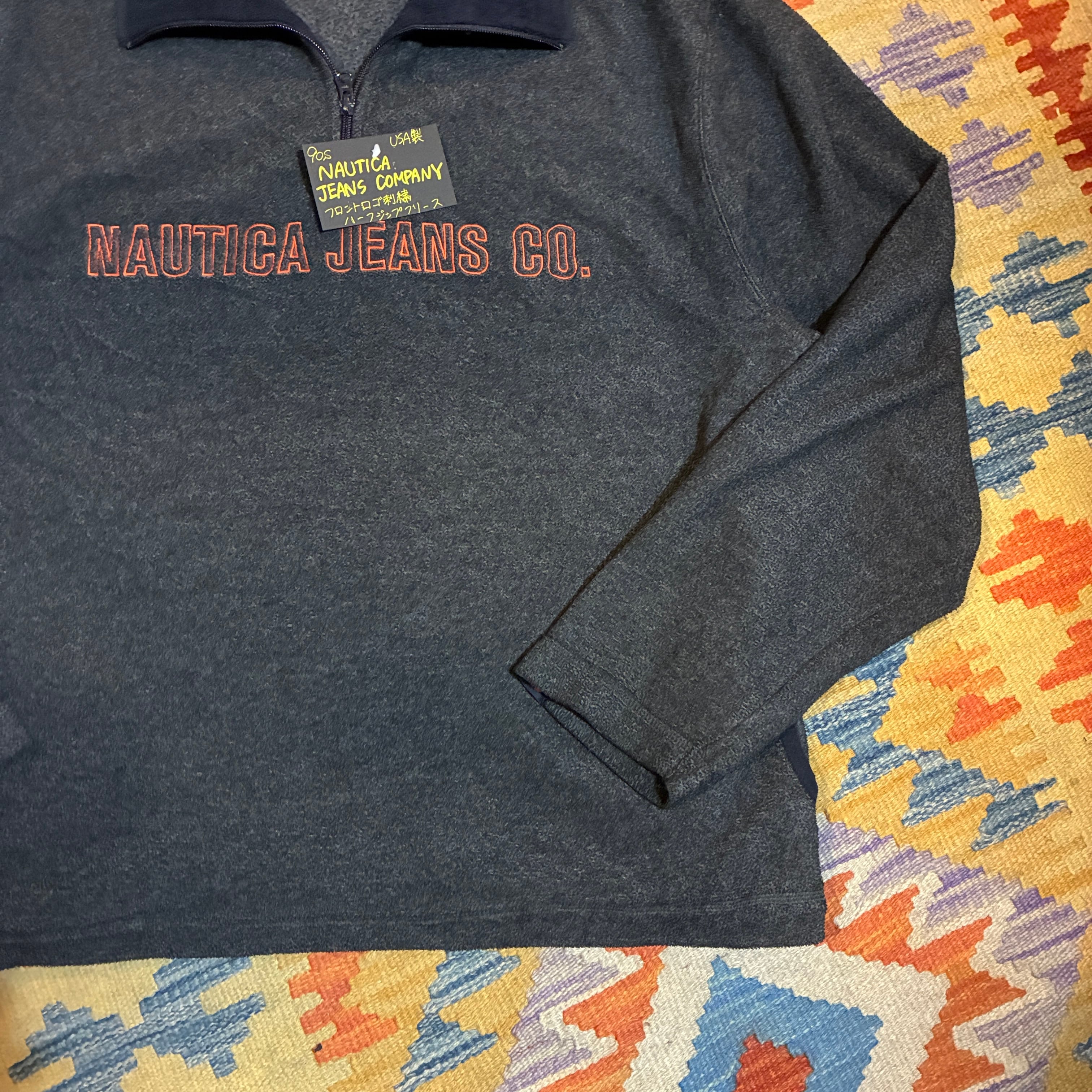 90s USA製 NAUTICA JEANS COMPANY フロントロゴ刺繍 ハーフジップフリース AKB