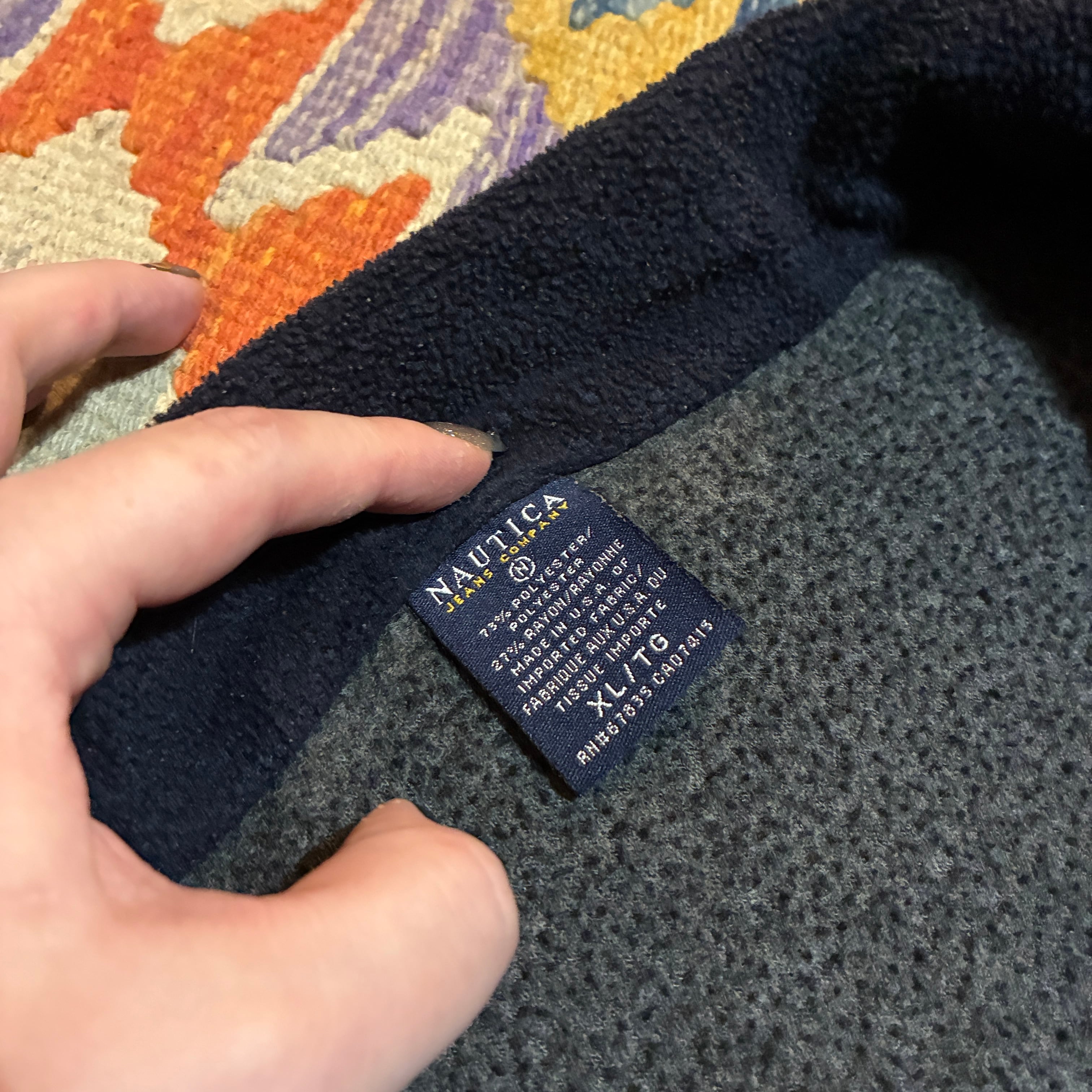 90s USA製 NAUTICA JEANS COMPANY フロントロゴ刺繍 ハーフジップフリース