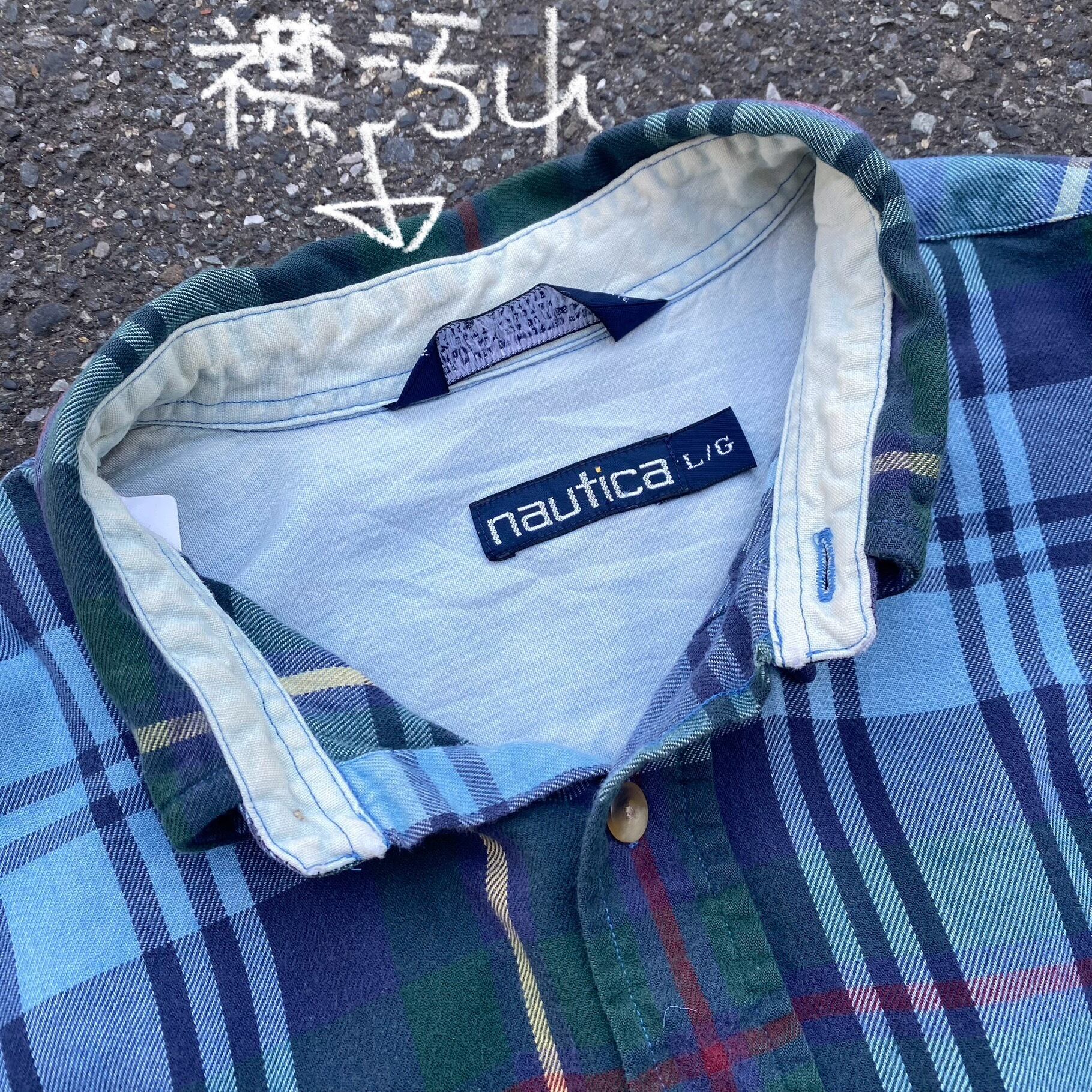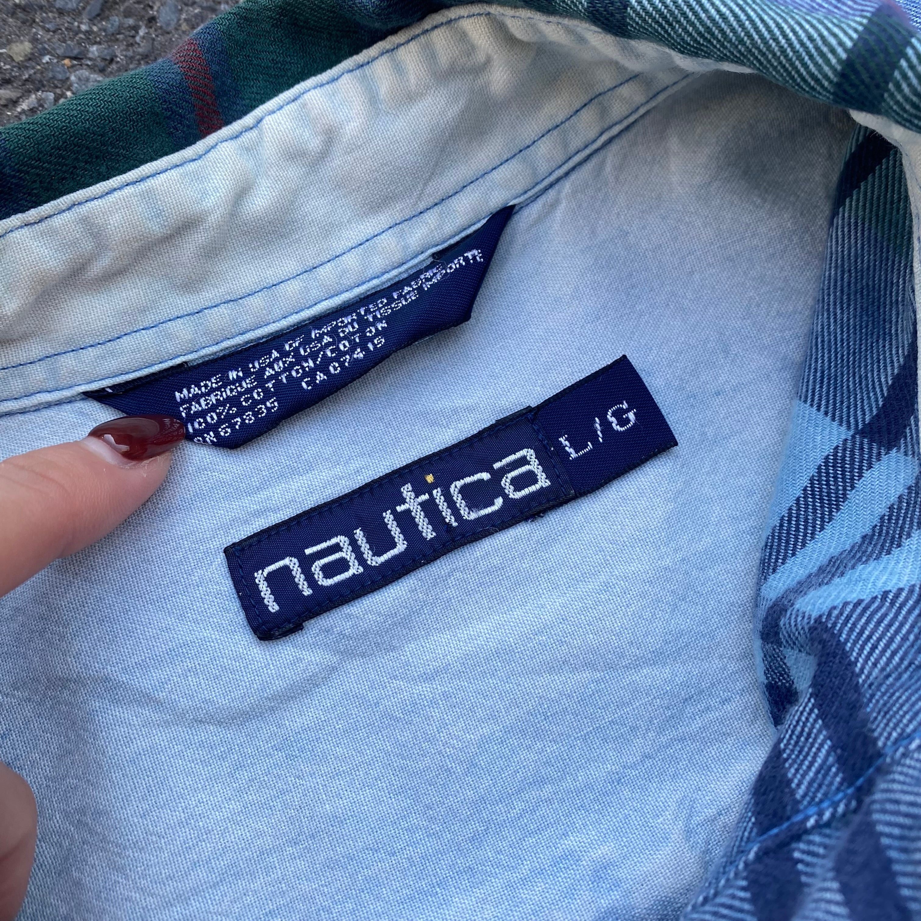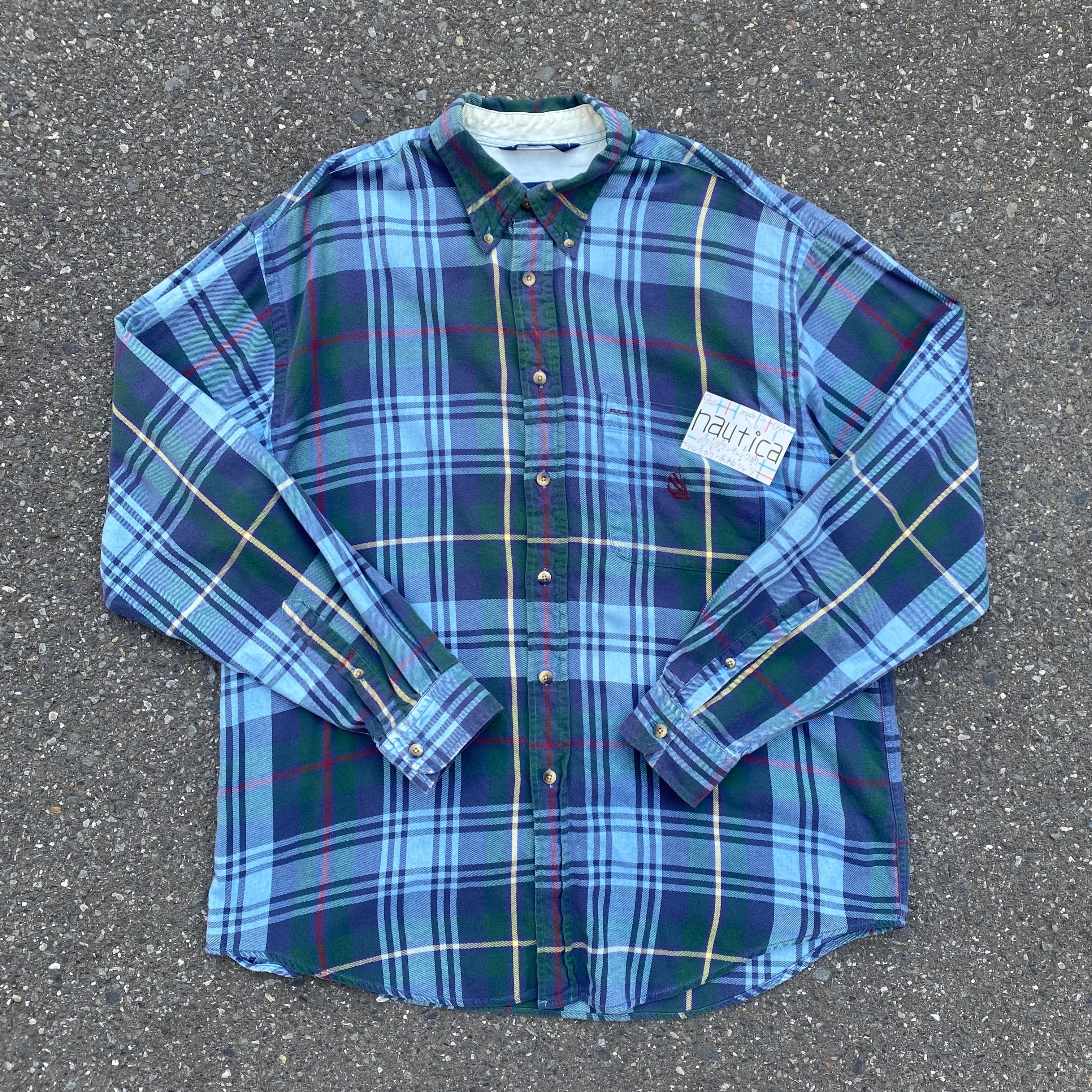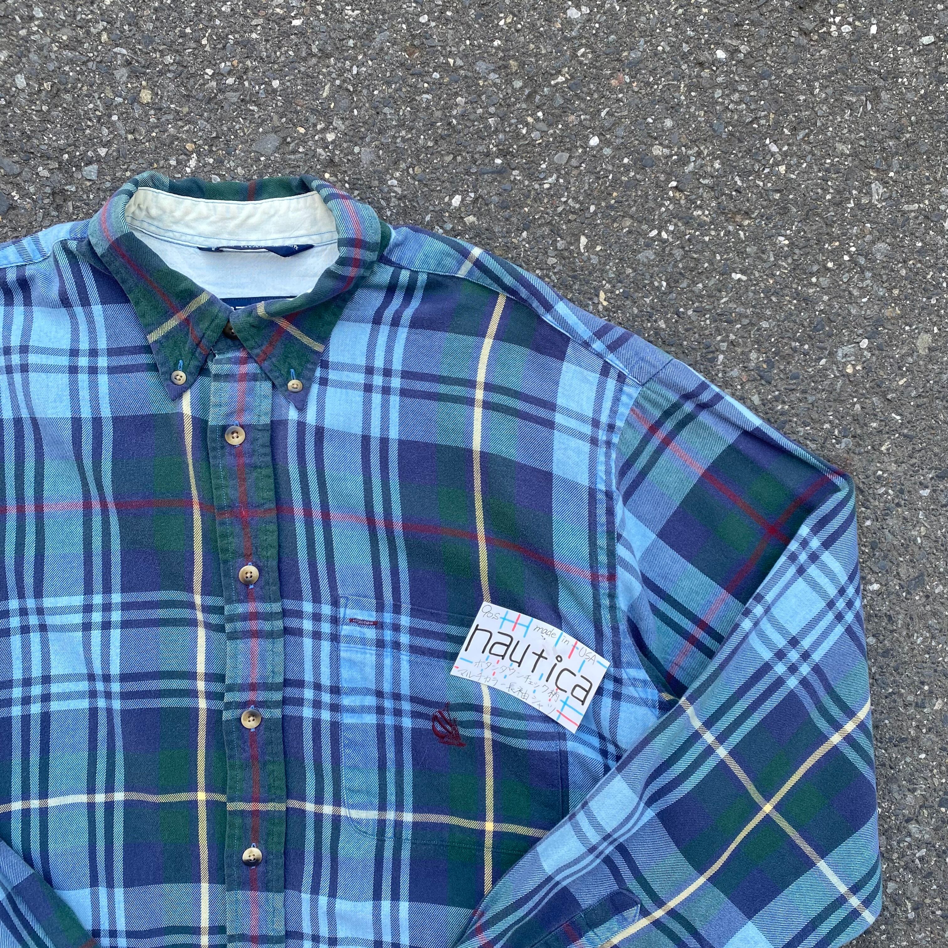 90s made in USA nautica ボタンチェック柄 マルチカラー長袖シャツ AKB