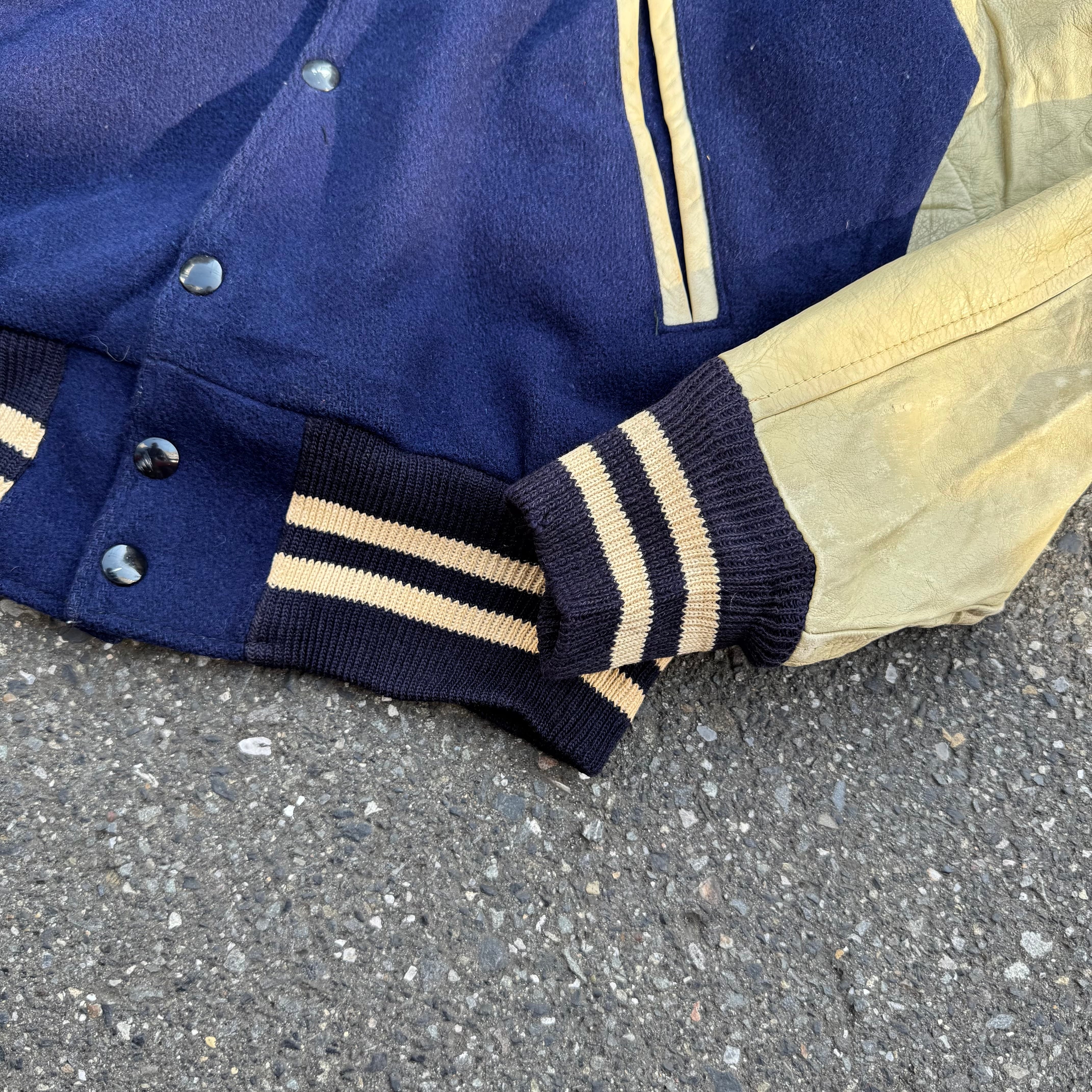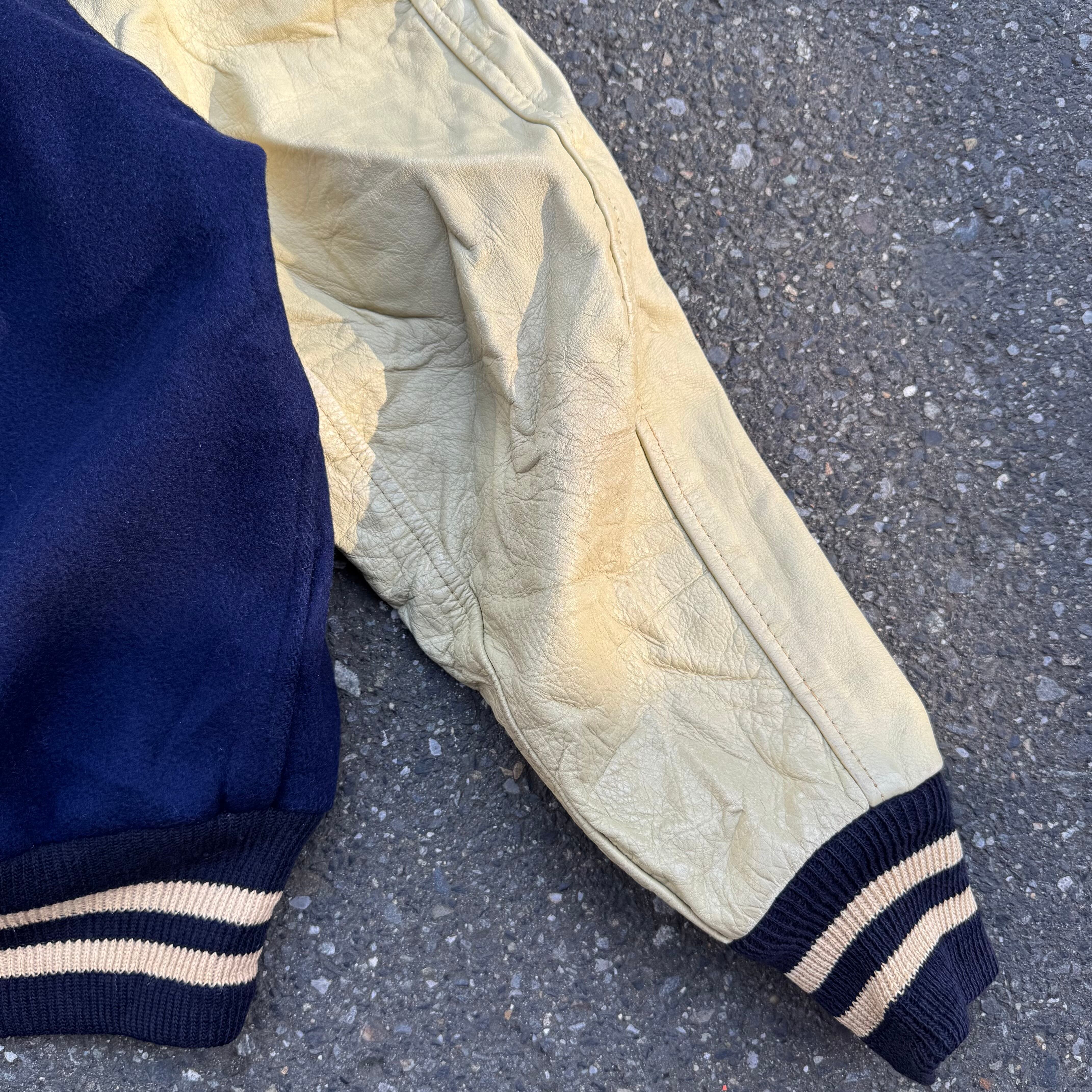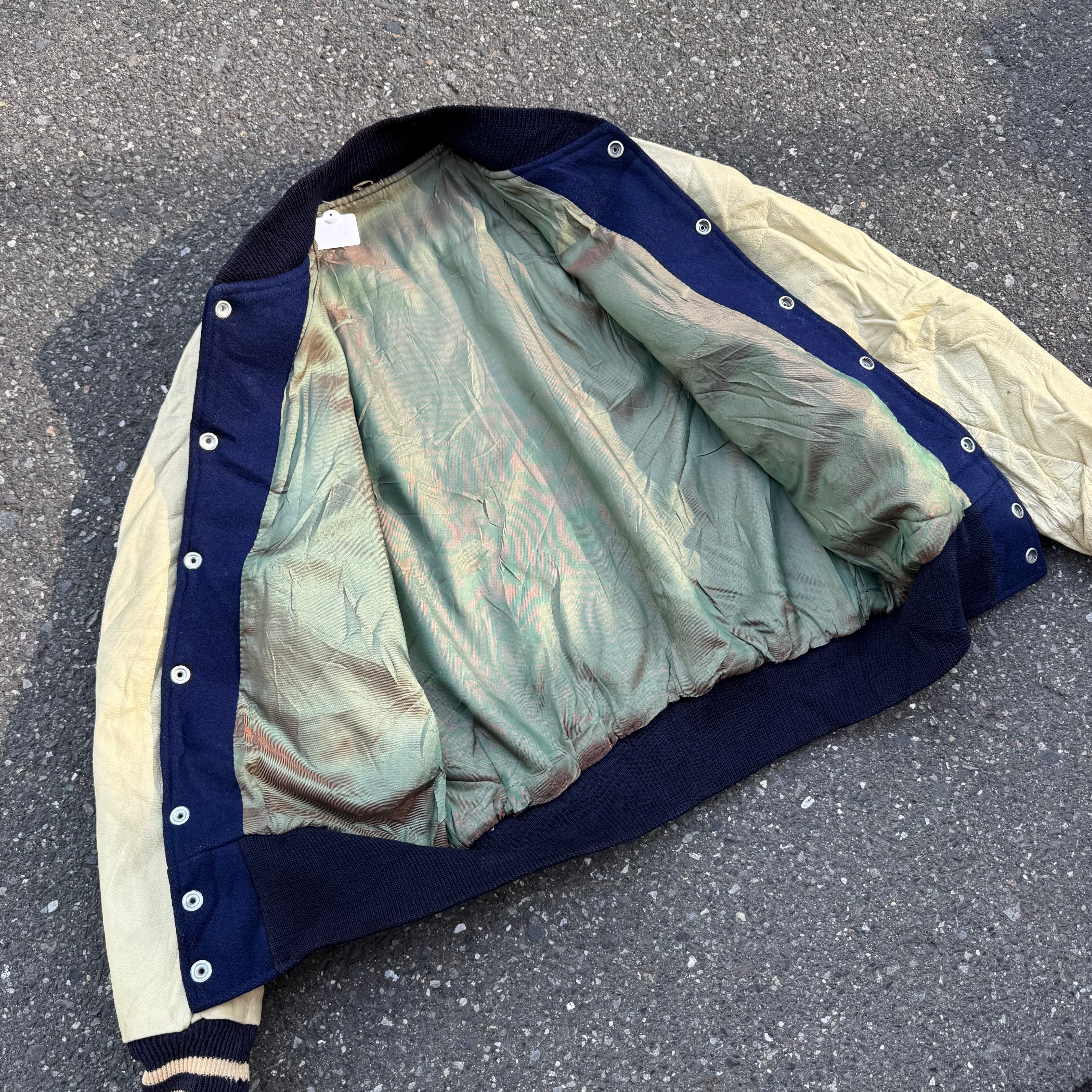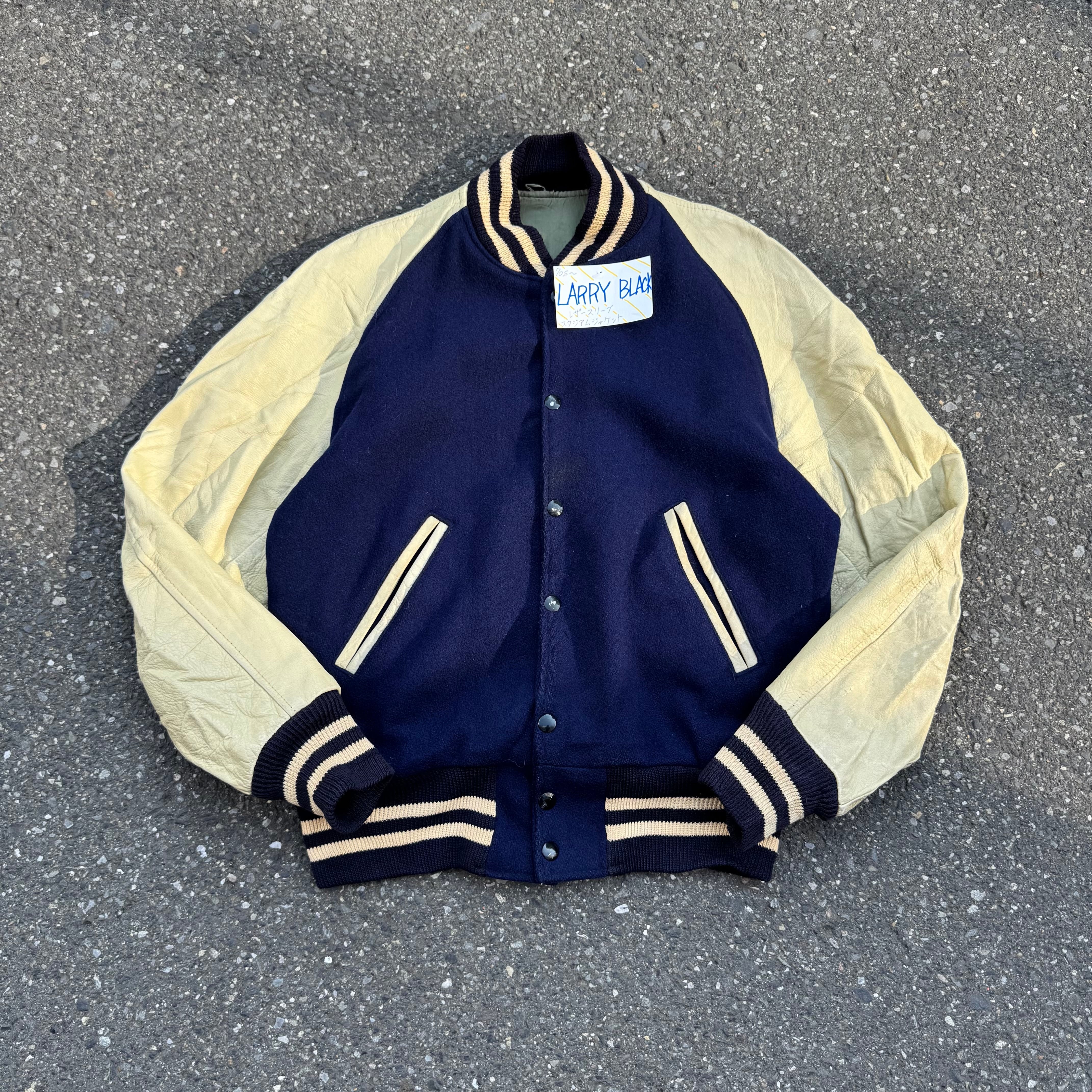 70s LARRY BLACK レザースリーブ スタジアムジャケット AKB