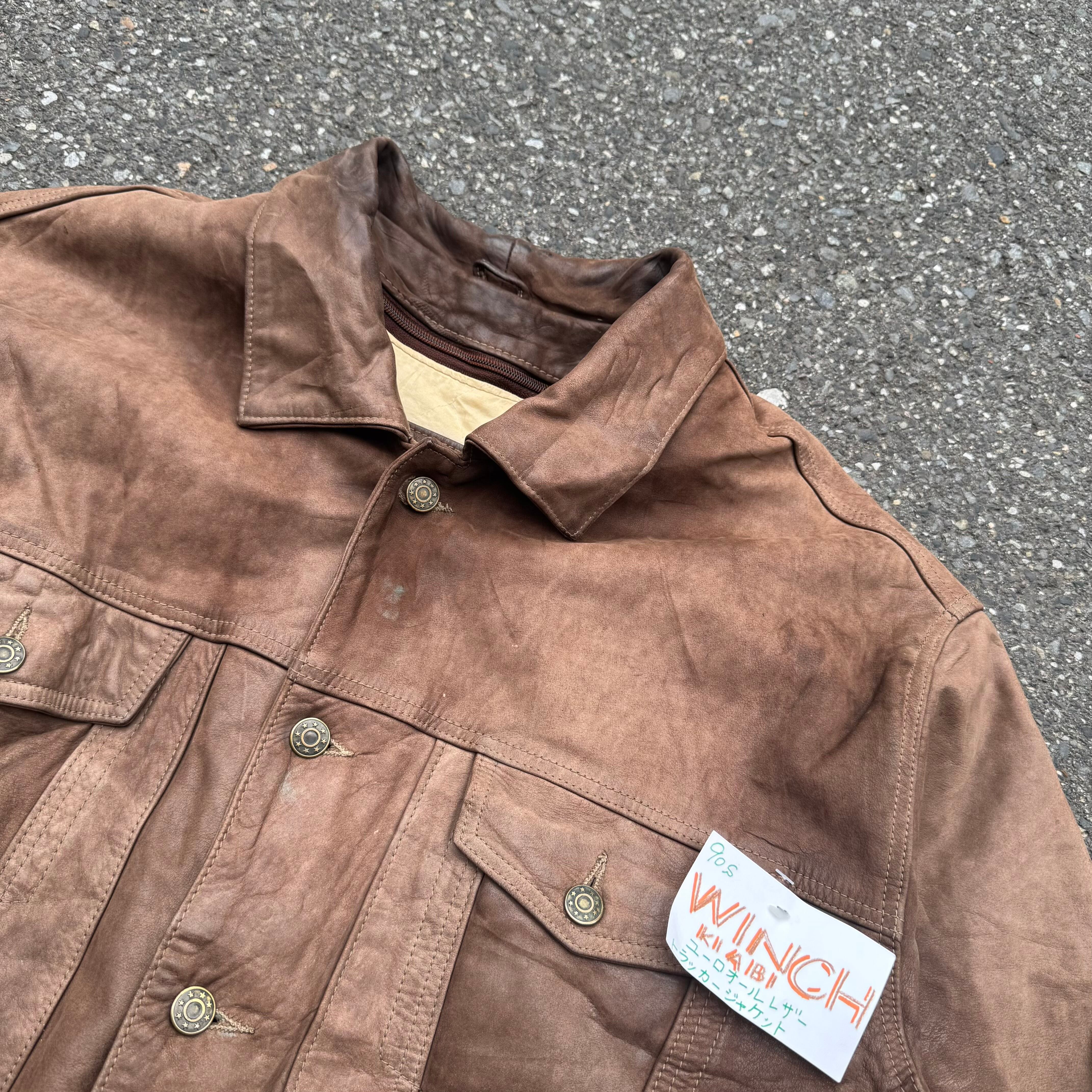 90s WINCH KIABI ユーロオールレザートラッカージャケット AKB