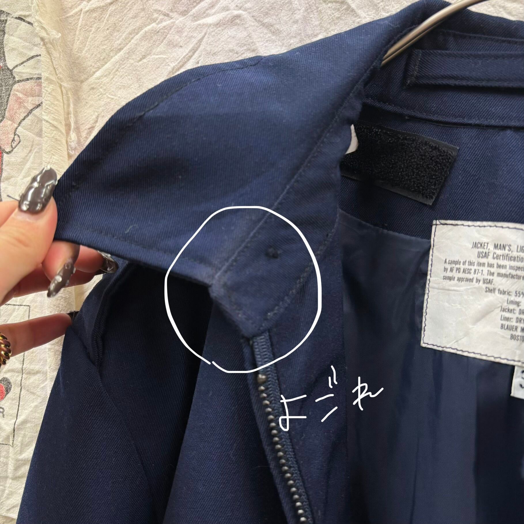 ミリタリーウェアでありながら、無駄を削ぎ落としたミニマルなデザインと、深みのあるエアフォースブルーが特徴。スイングトップやドリズラージャケットのような感覚で、カジュアルから綺麗めなスタイルまで幅広く着回せる万能な一着です。