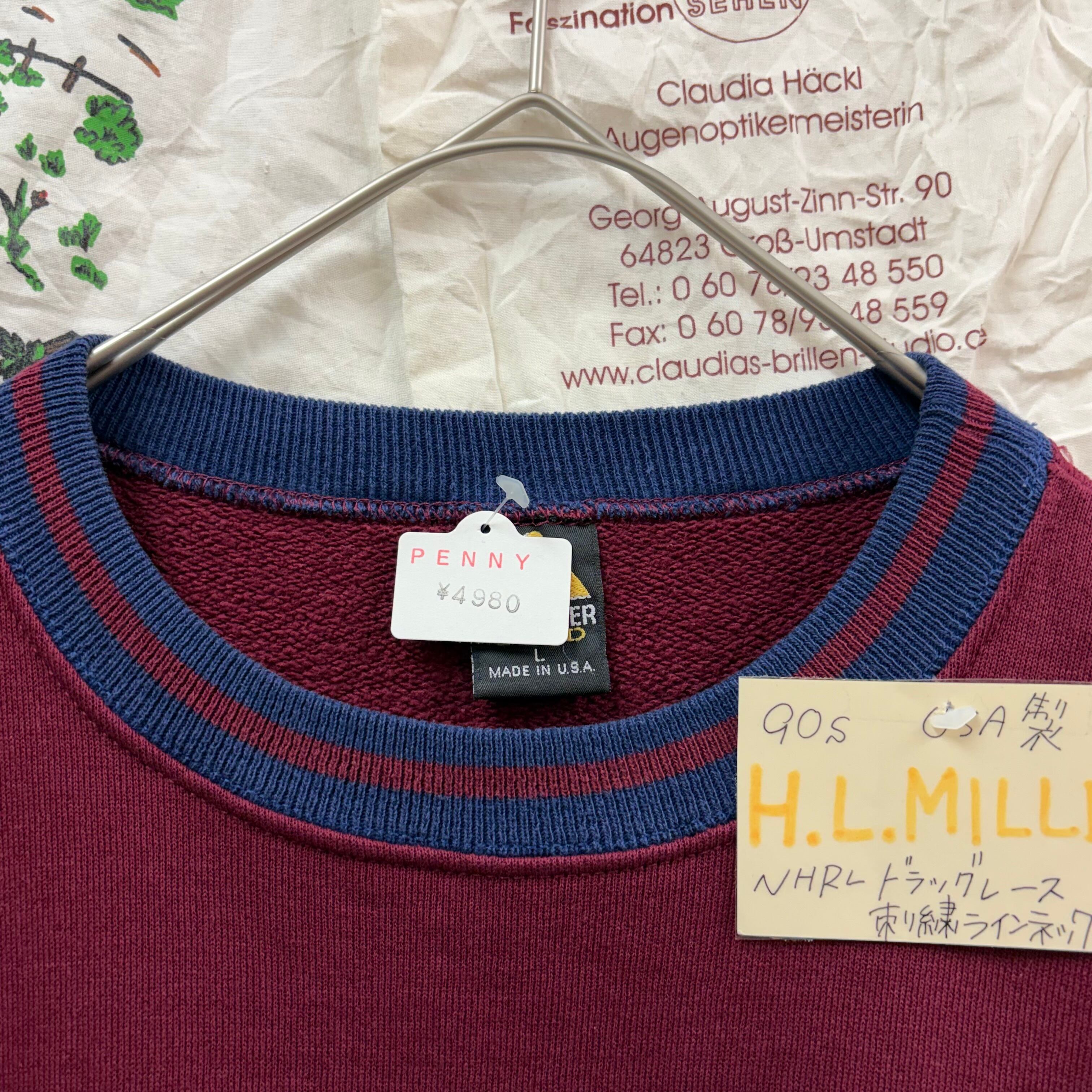90s USA製 H.L.MILLER NHRA ドラッグレース刺繍ラインネックスウェット