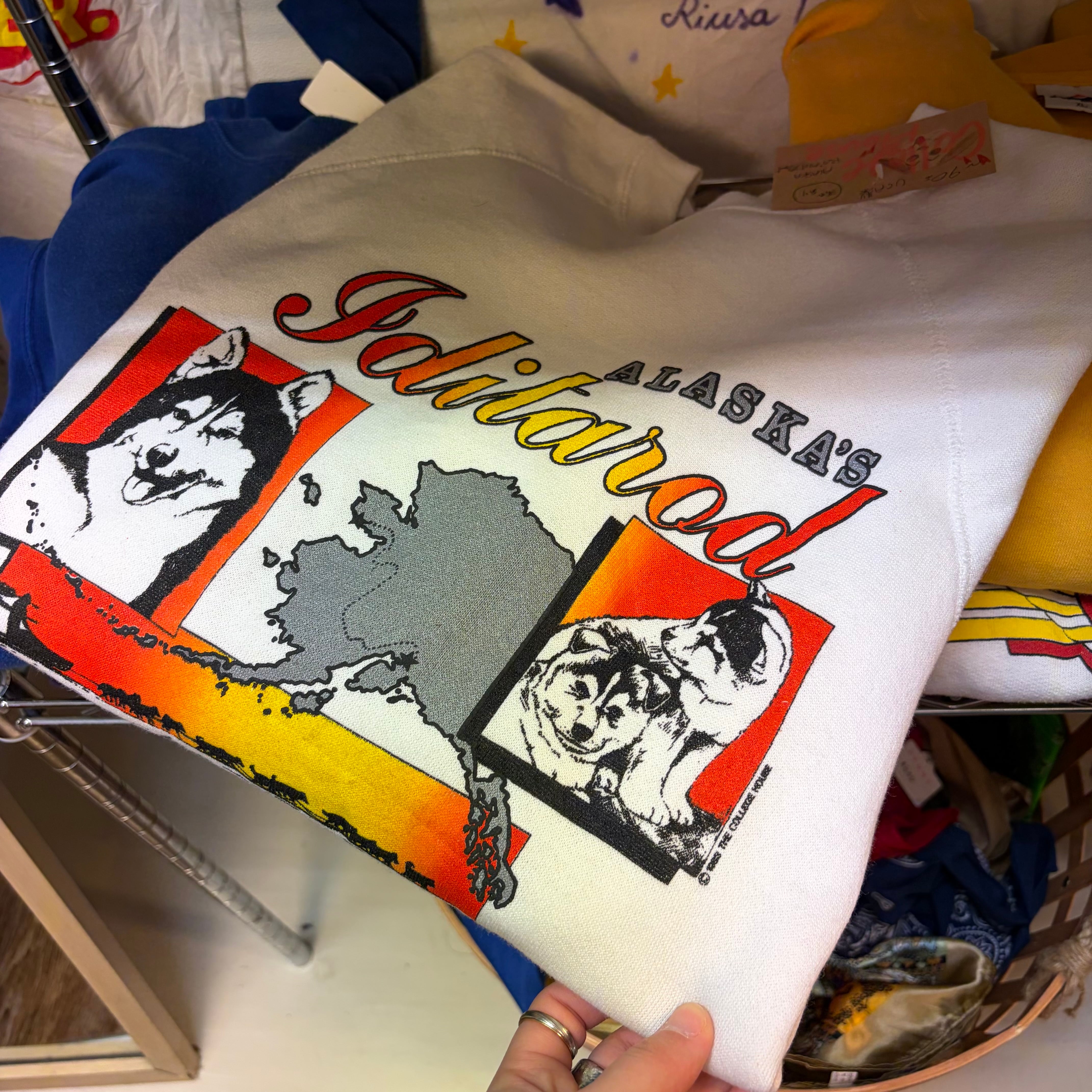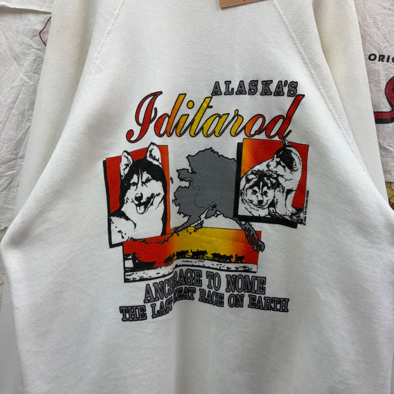 フロントにアラスカらしいドッググラフィックがプリントされたヴィンテージスウェット!