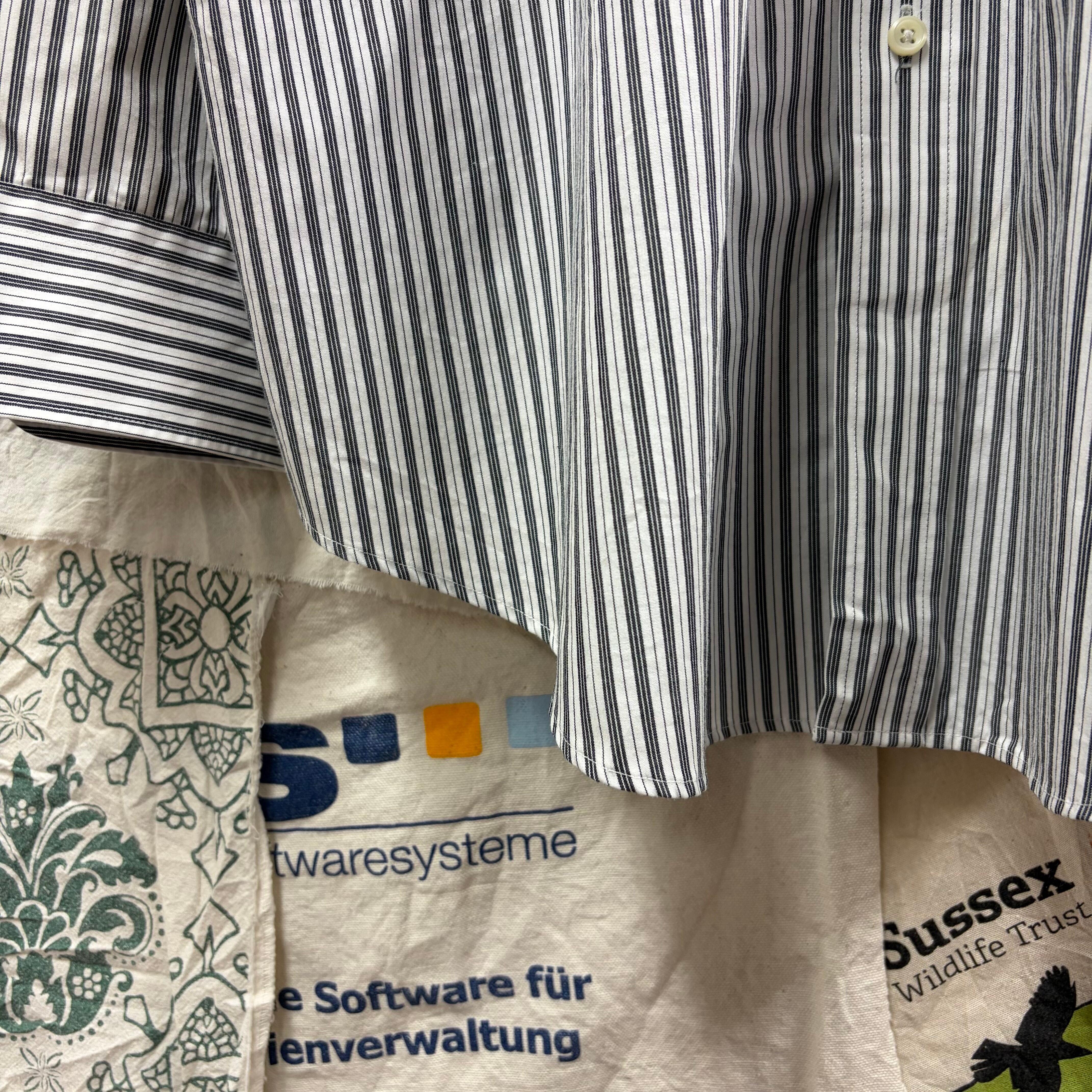 上品なストライプ柄が特徴の、クラシックな長袖シャツ。