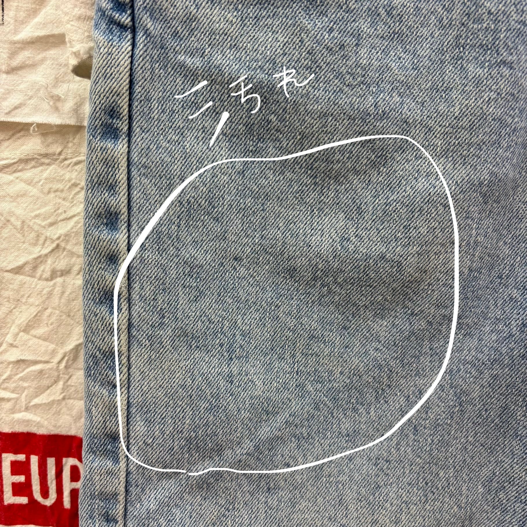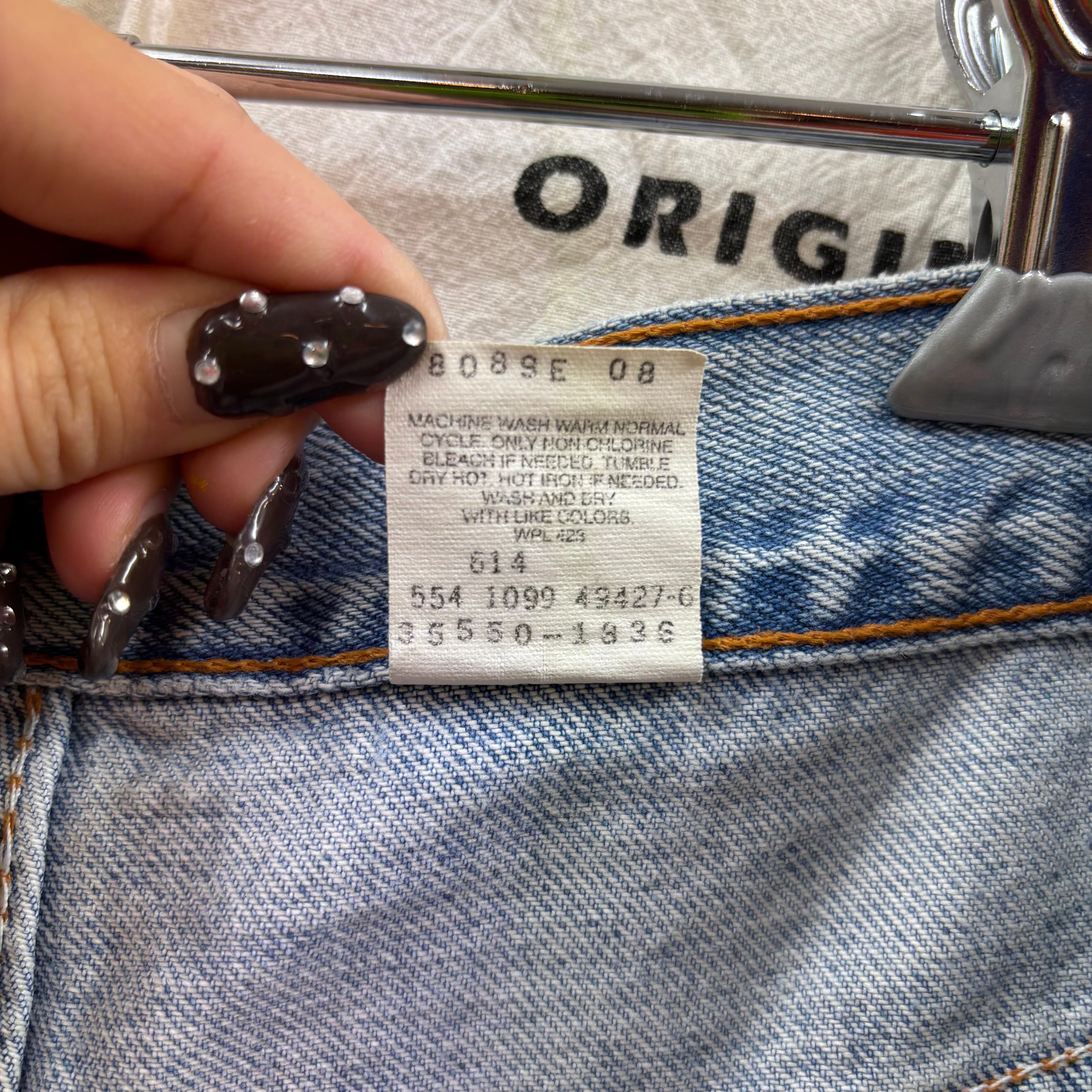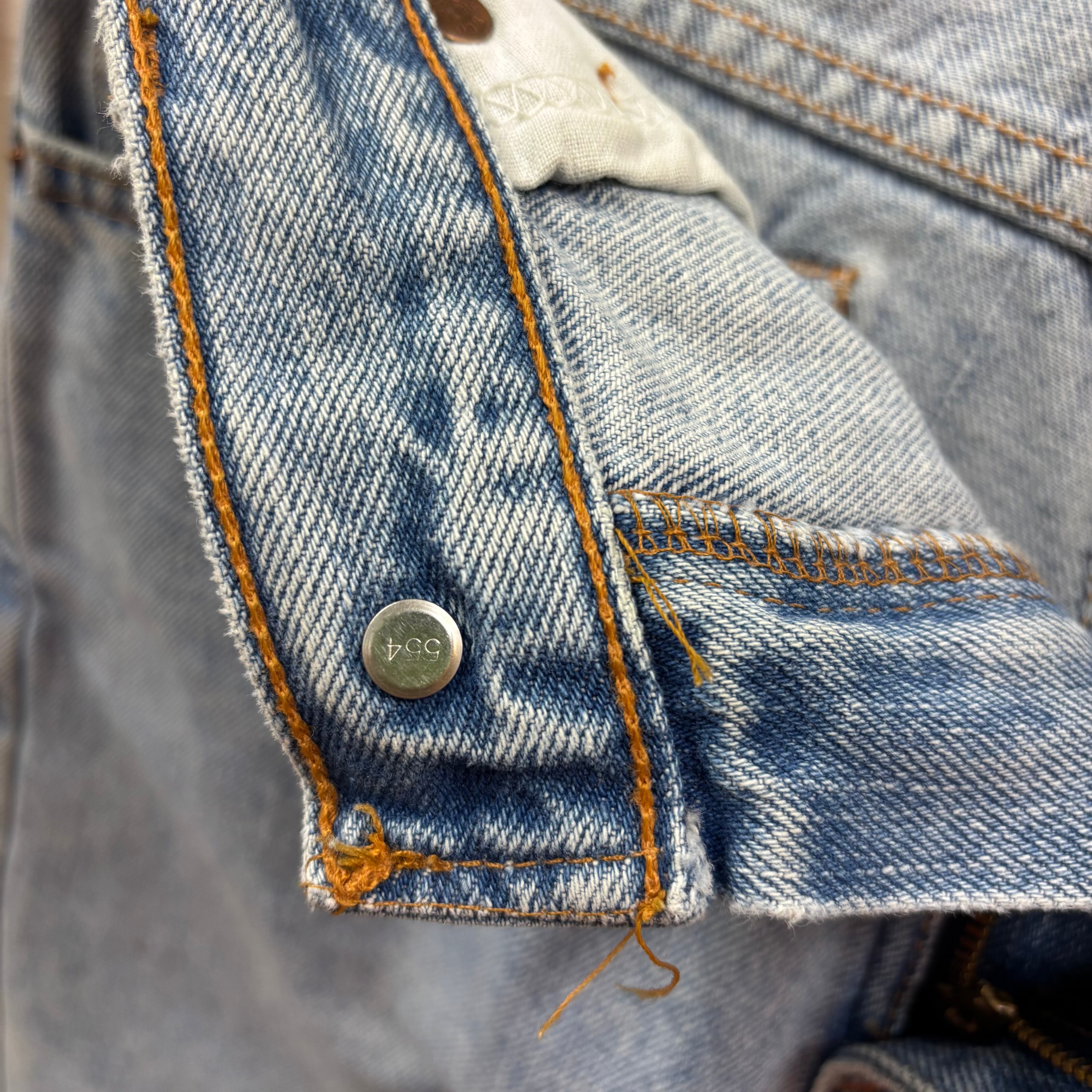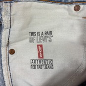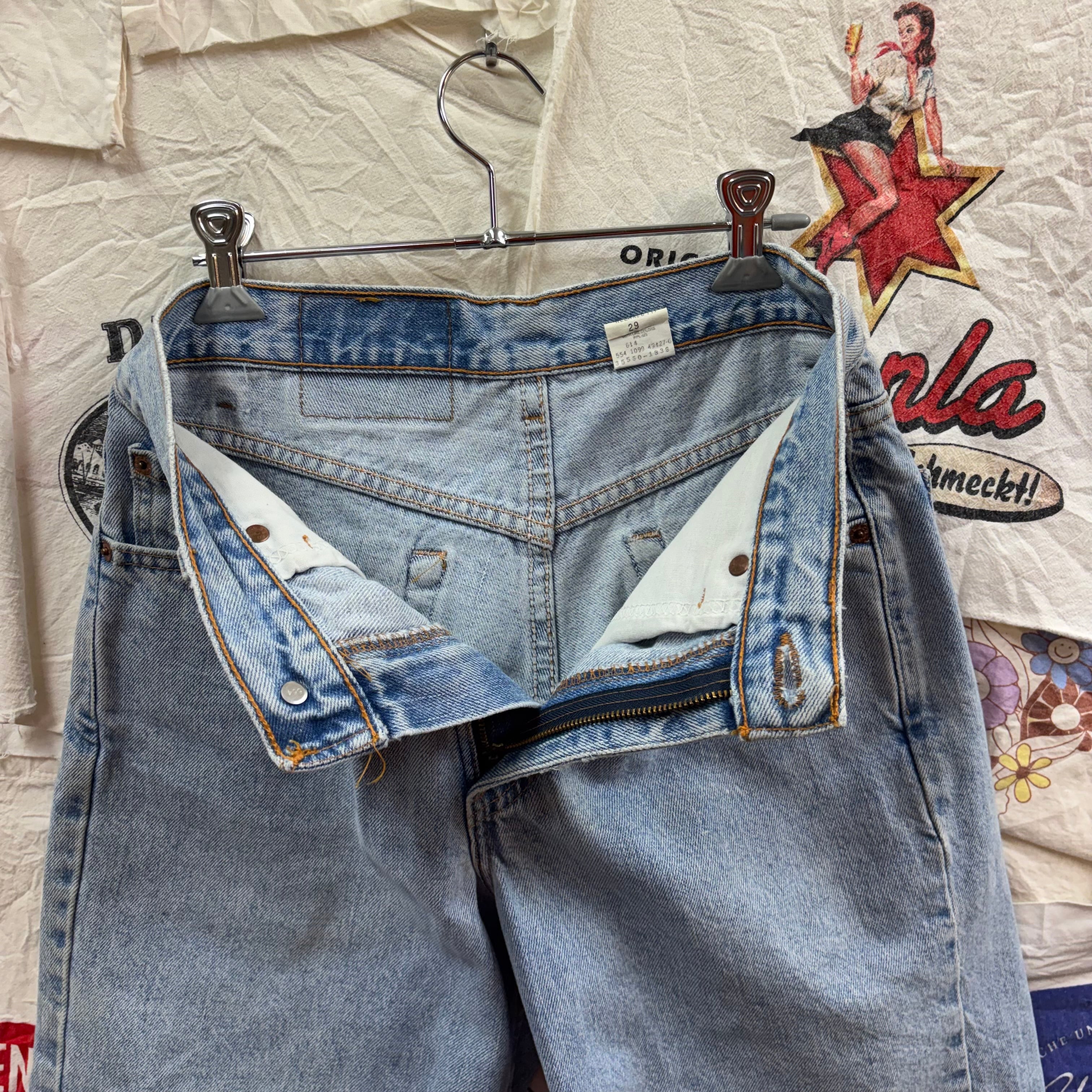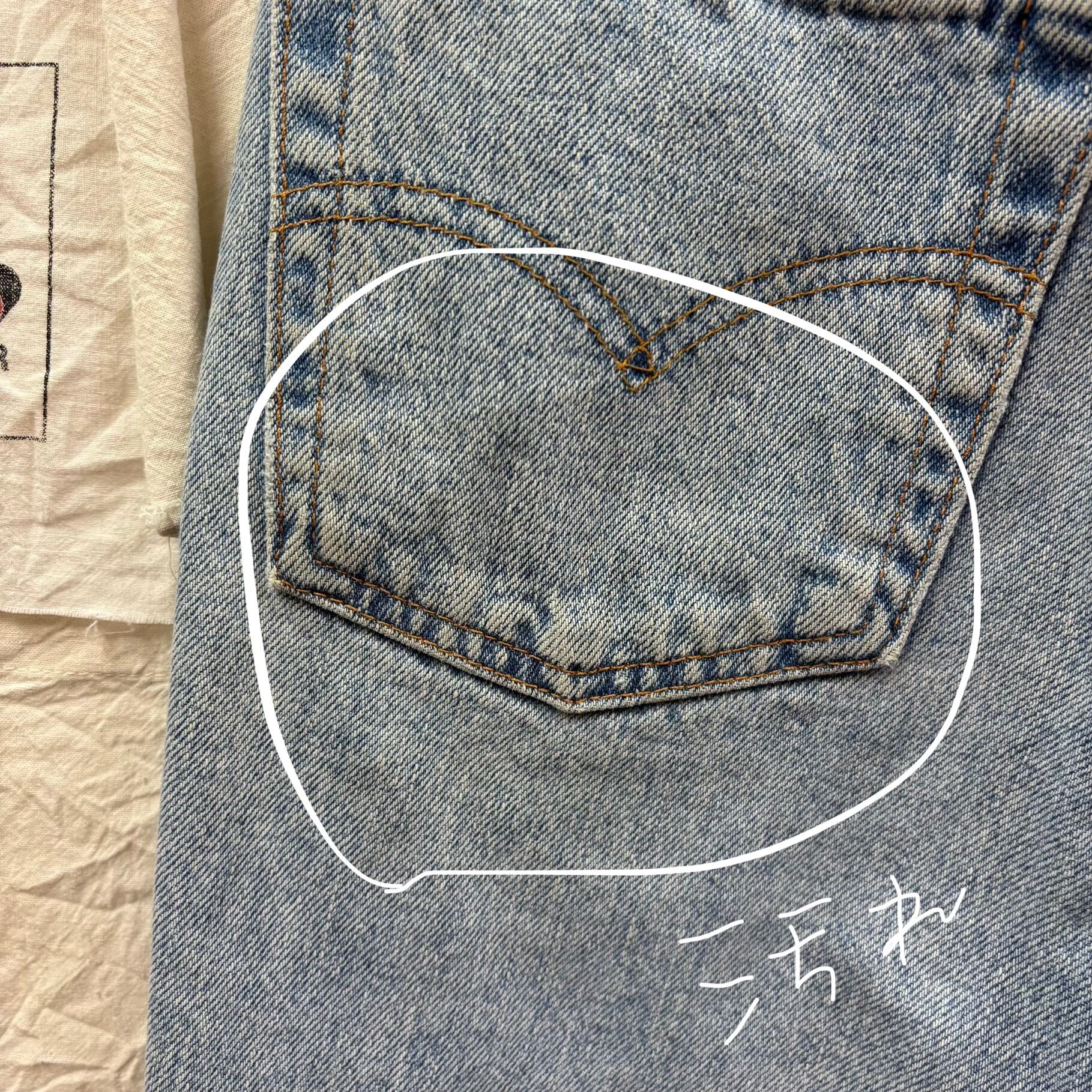 550特有の、腰回りにゆとりがあり裾にかけて緩やかにテーパードするリラックスしたシルエットが特徴。現行品にはない、当時のアメリカ製ならではのしっかりとしたデニムの質感と、絶妙なライトブルーの色落ちが魅力の一着です。