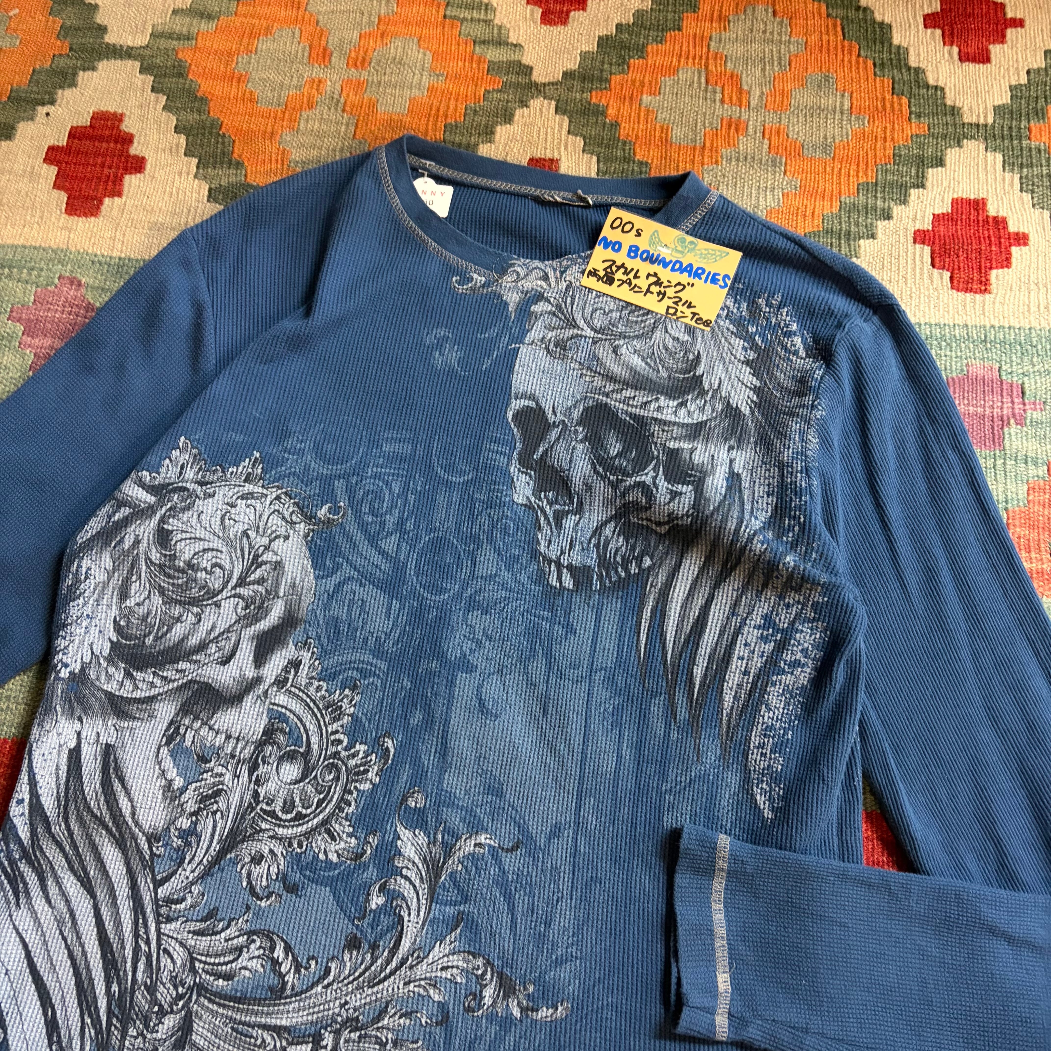 00s NO BOUNDARIES スカルウィング両面プリントサーマルロンTee