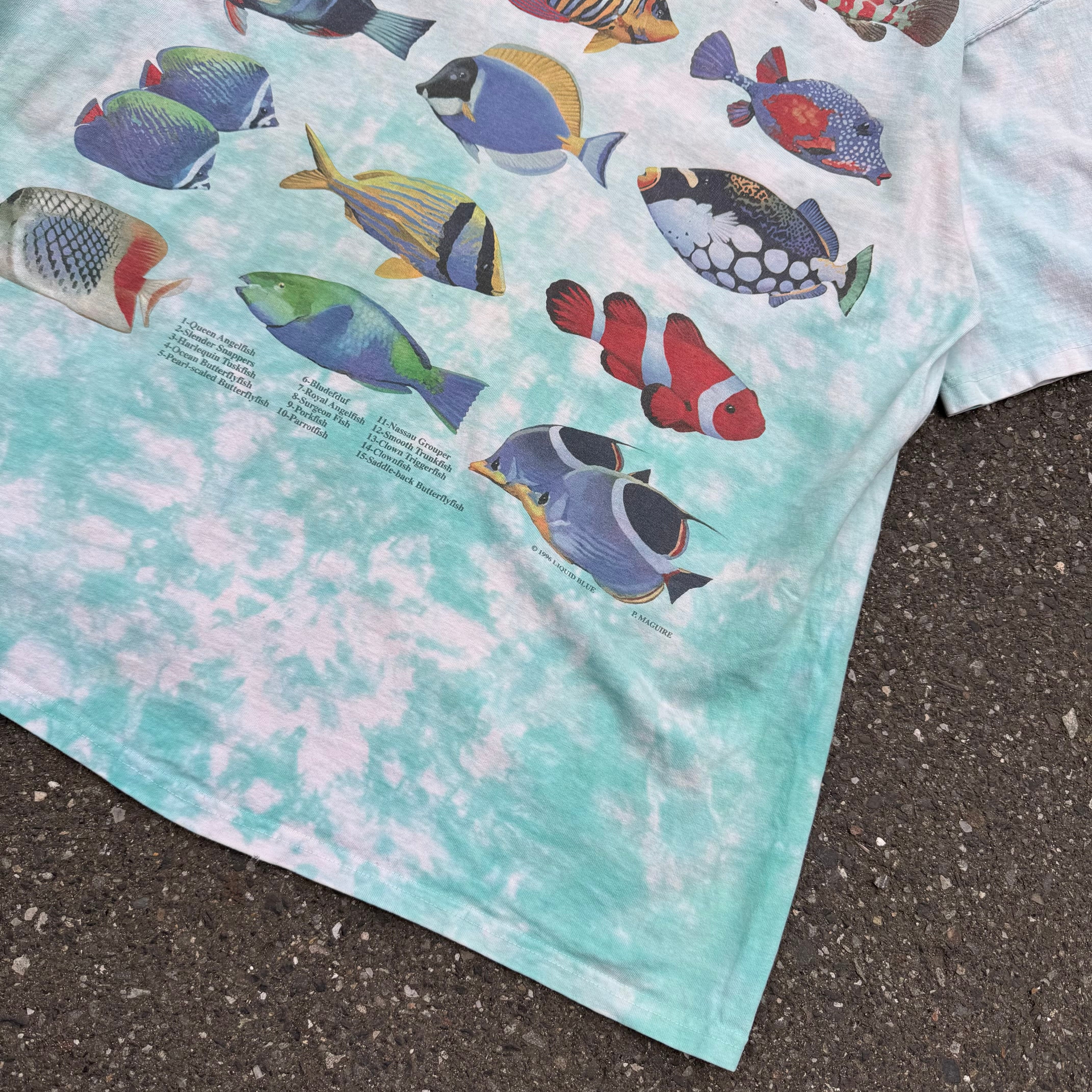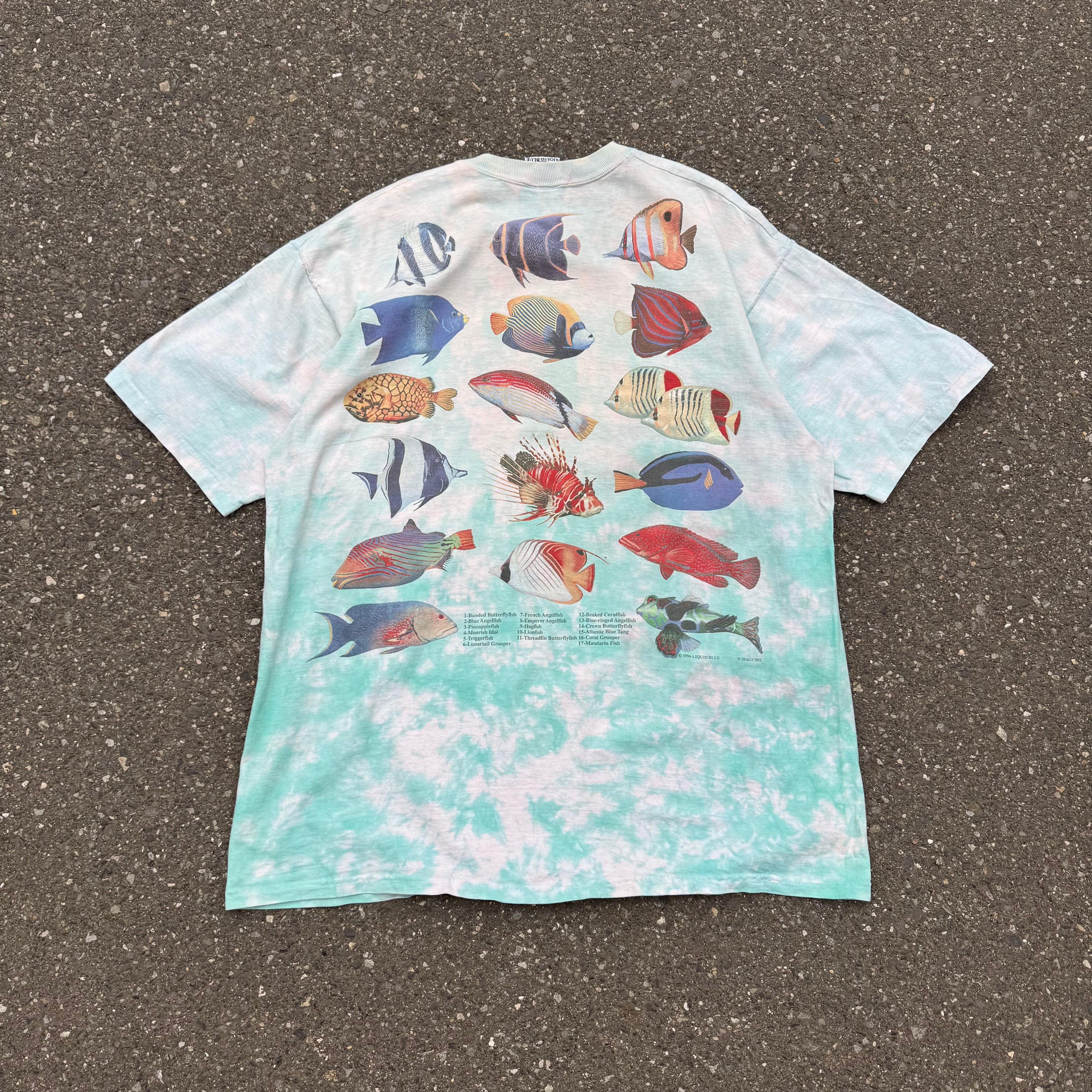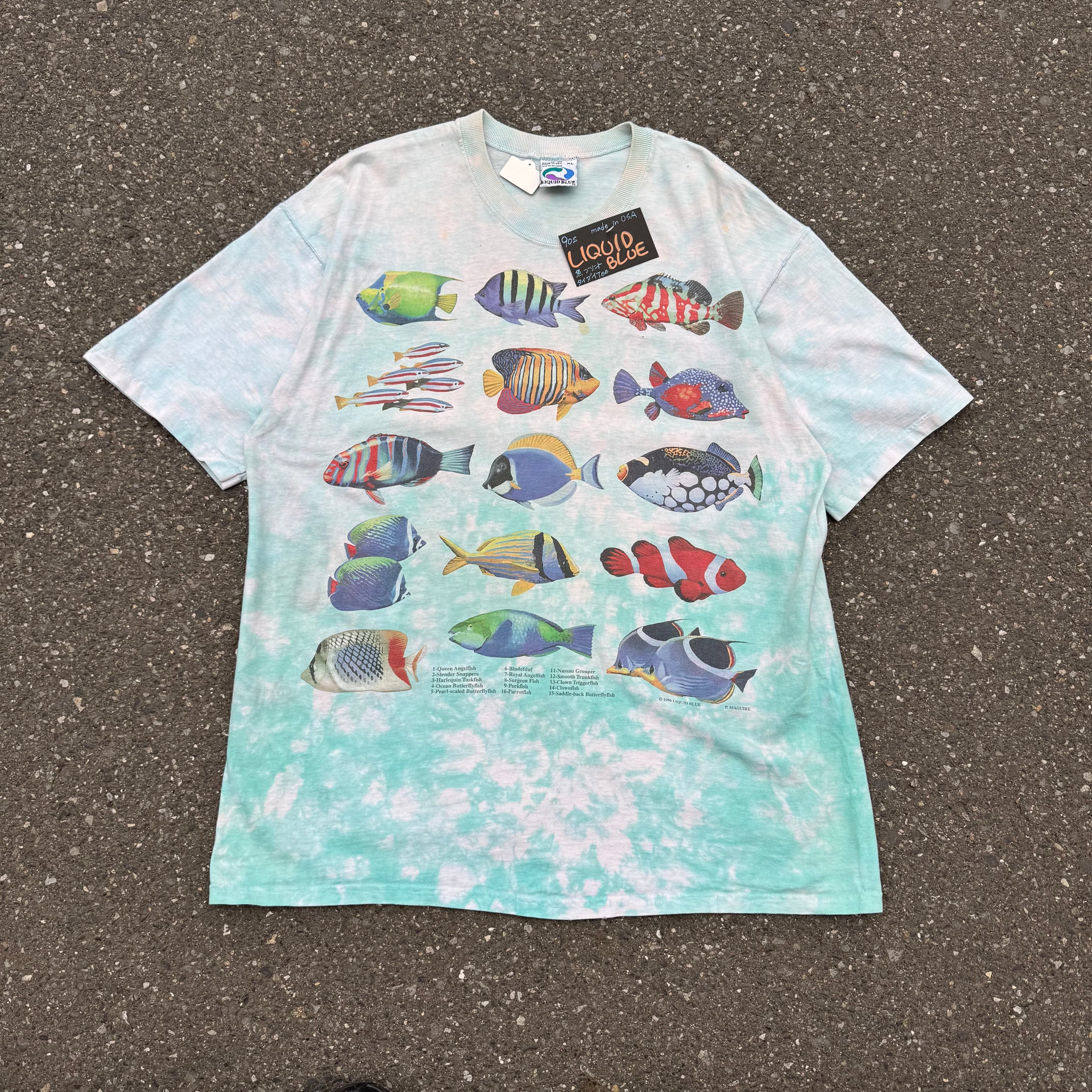 90s made in usa LIQUID BLUE 魚プリントタイダイTee AKB
