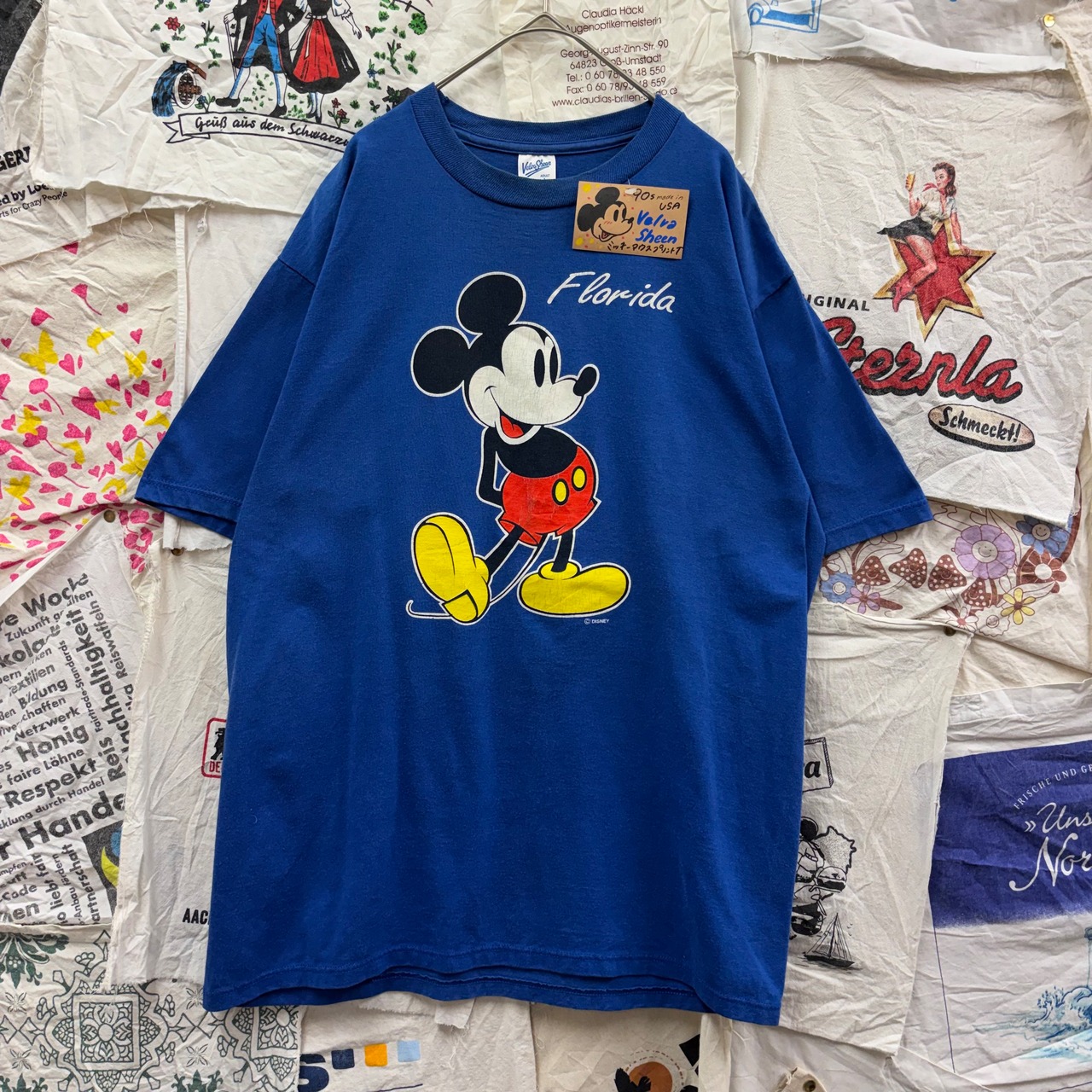 当時らしい絶妙なブルーのボディカラーと、フロリダの文字が入ったクラシックなミッキーのグラフィックが抜群の雰囲気です。タグからも分かる通り、今の古着市場で最も価値が高騰している年代・ブランドの一着です。