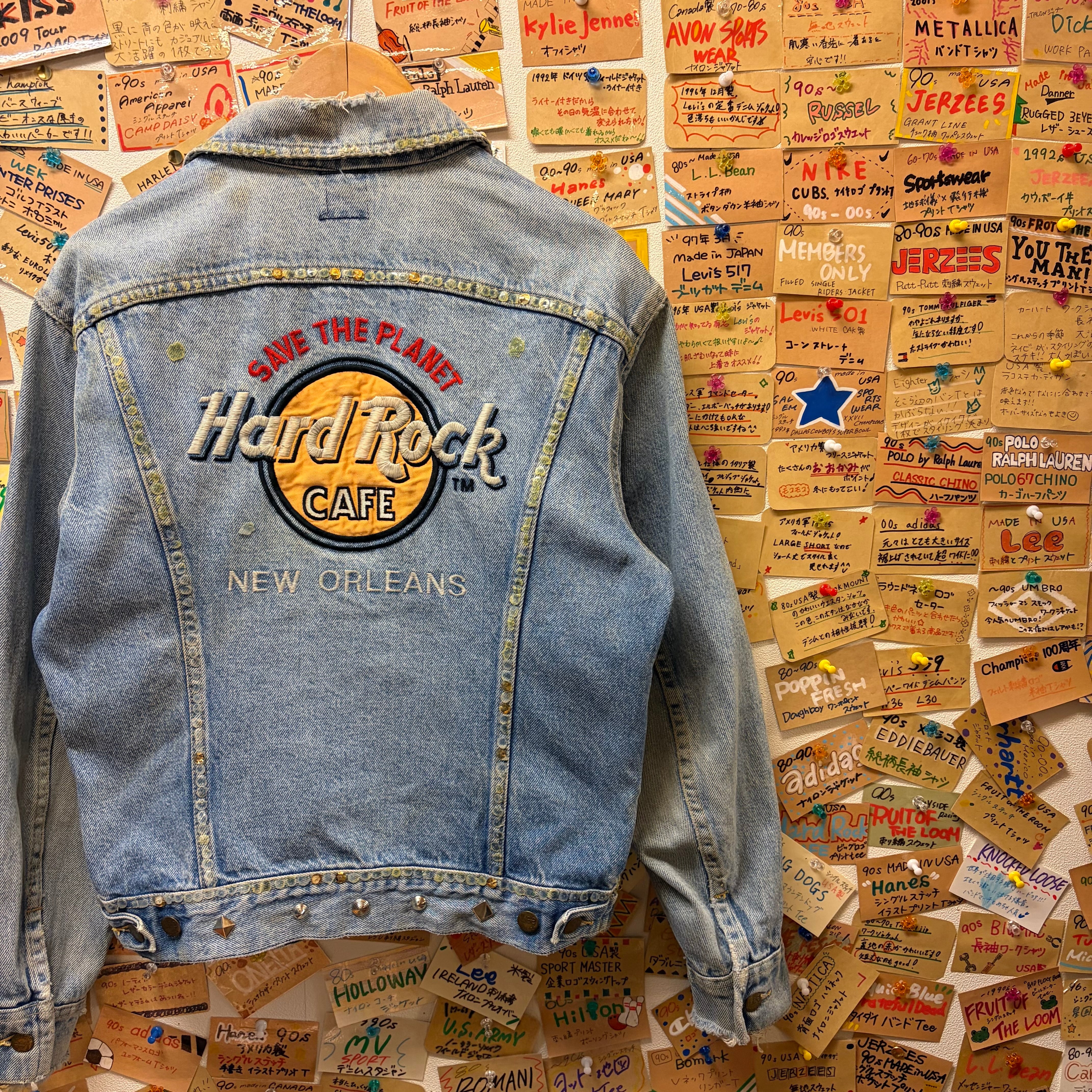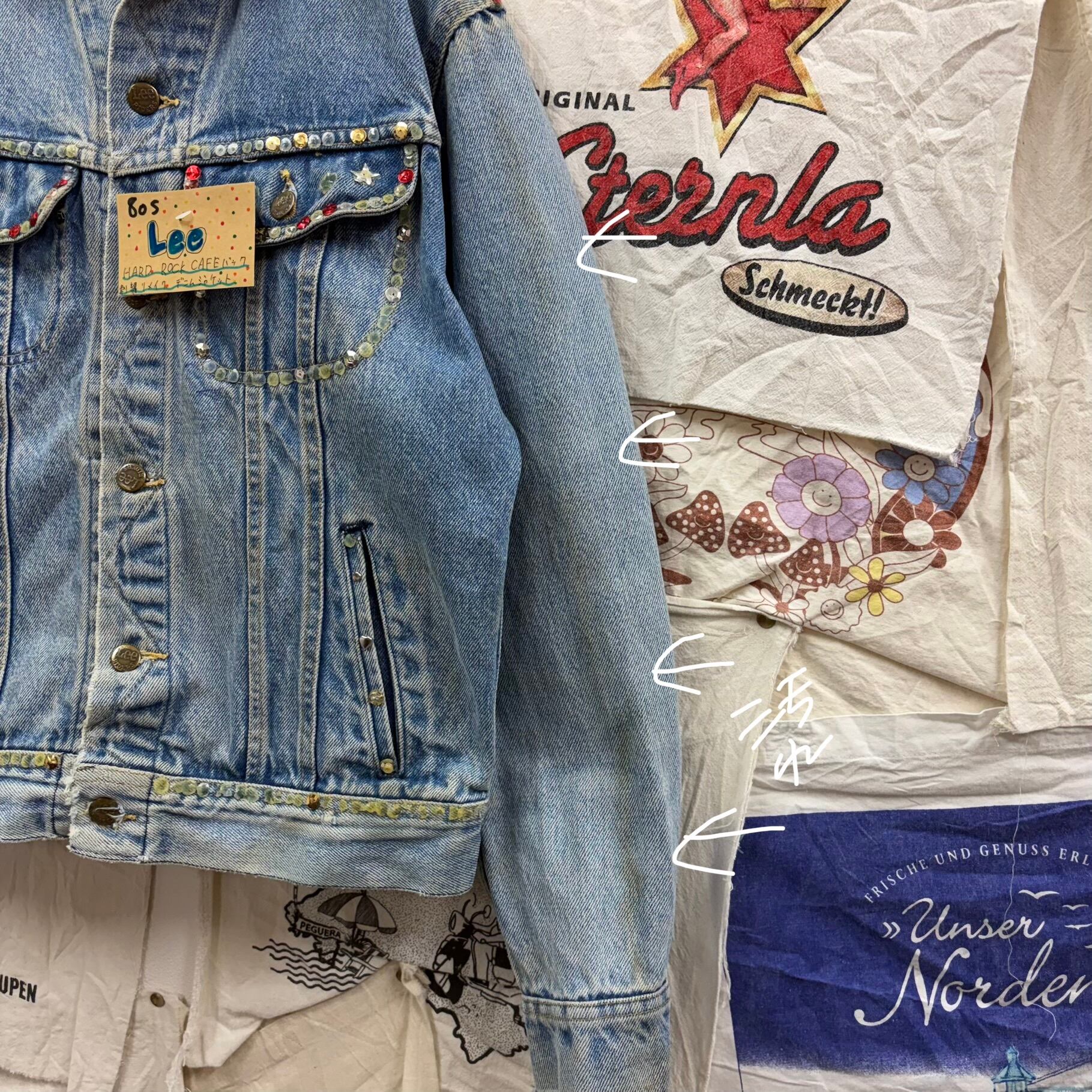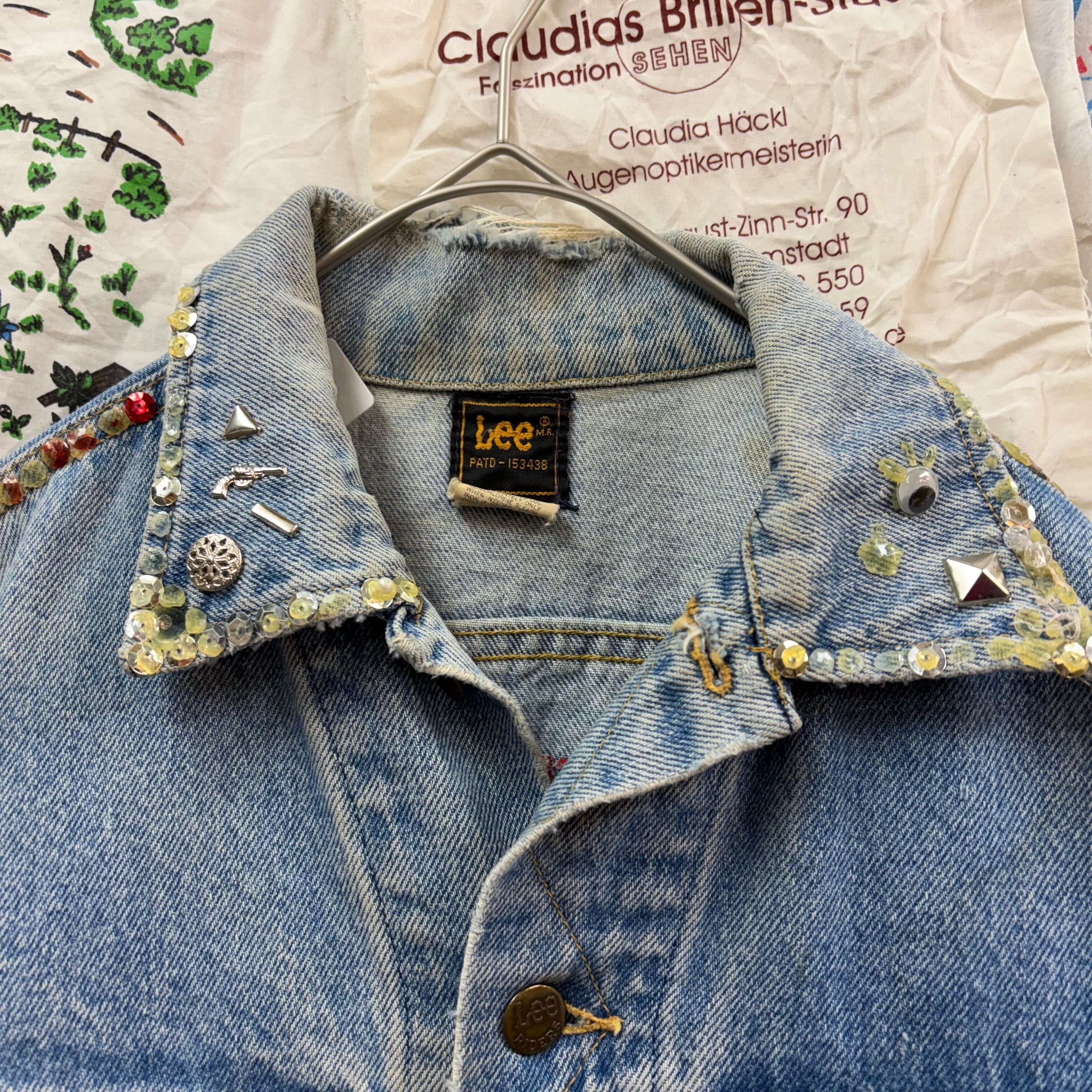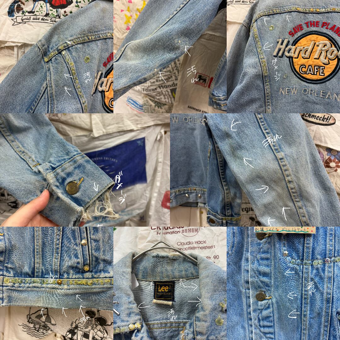 80s Lee HARD ROCK CAFE バッグ刺繍リメイクデニムジャケット