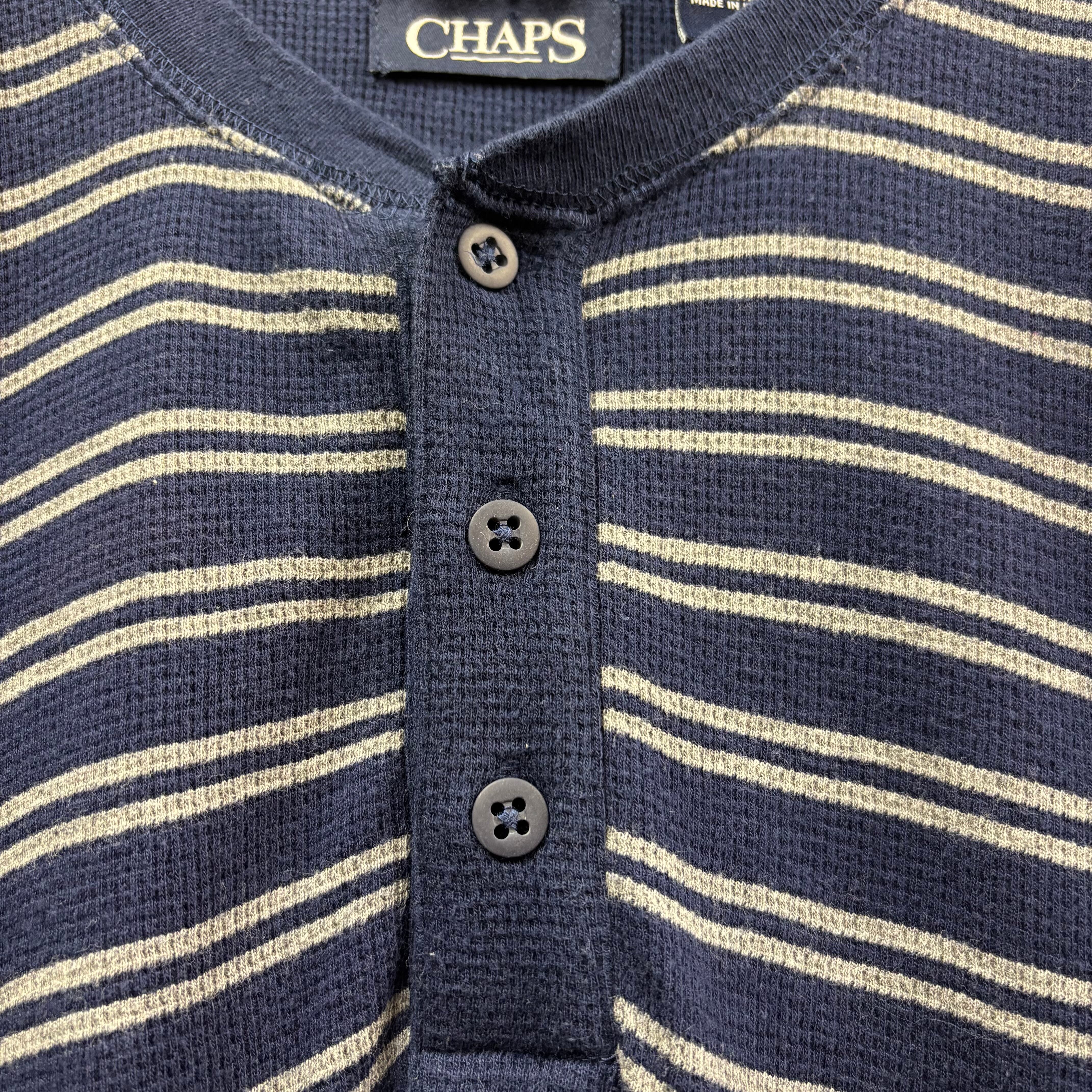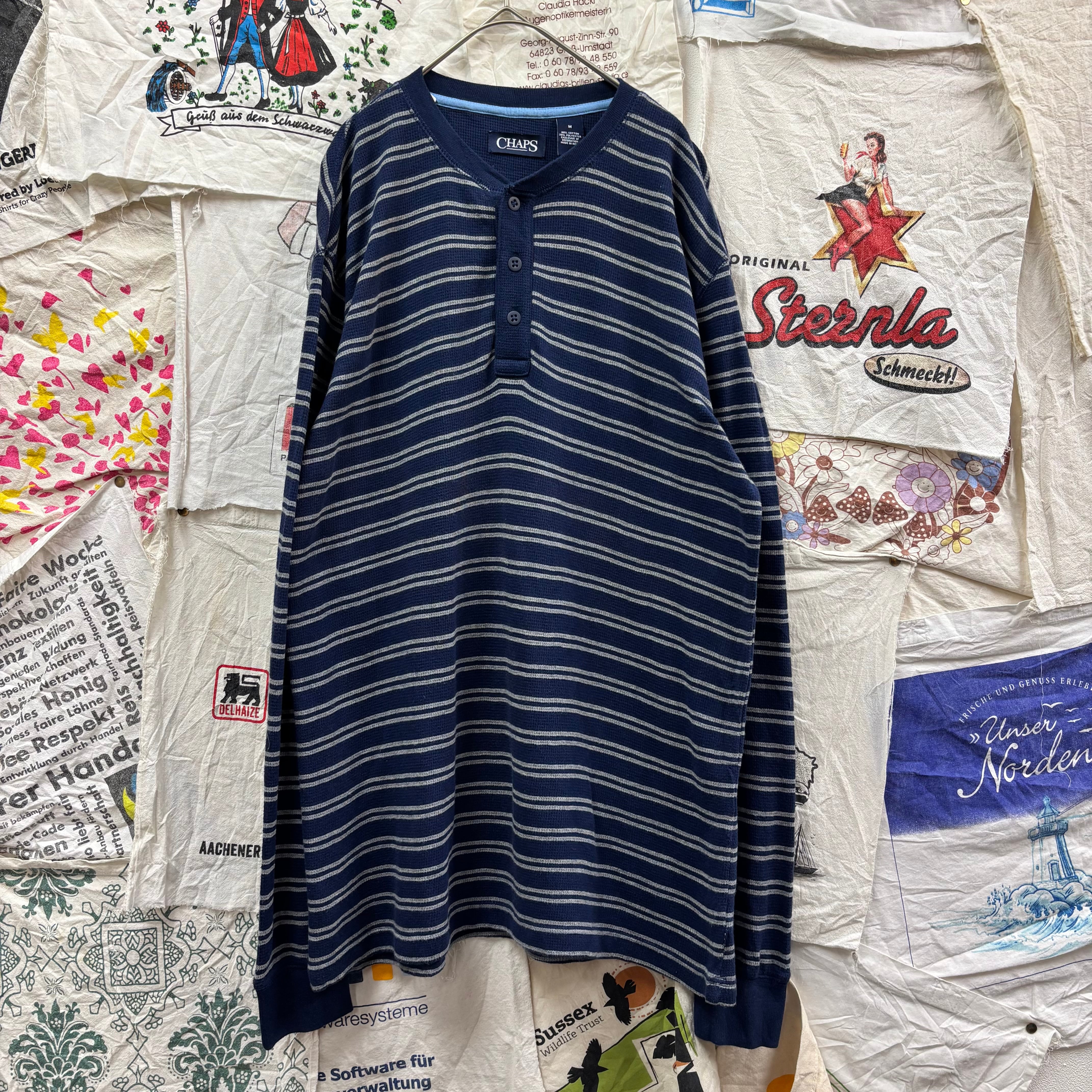 CHAPS ボーダー柄ヘンリーネックサーマルロンTEE