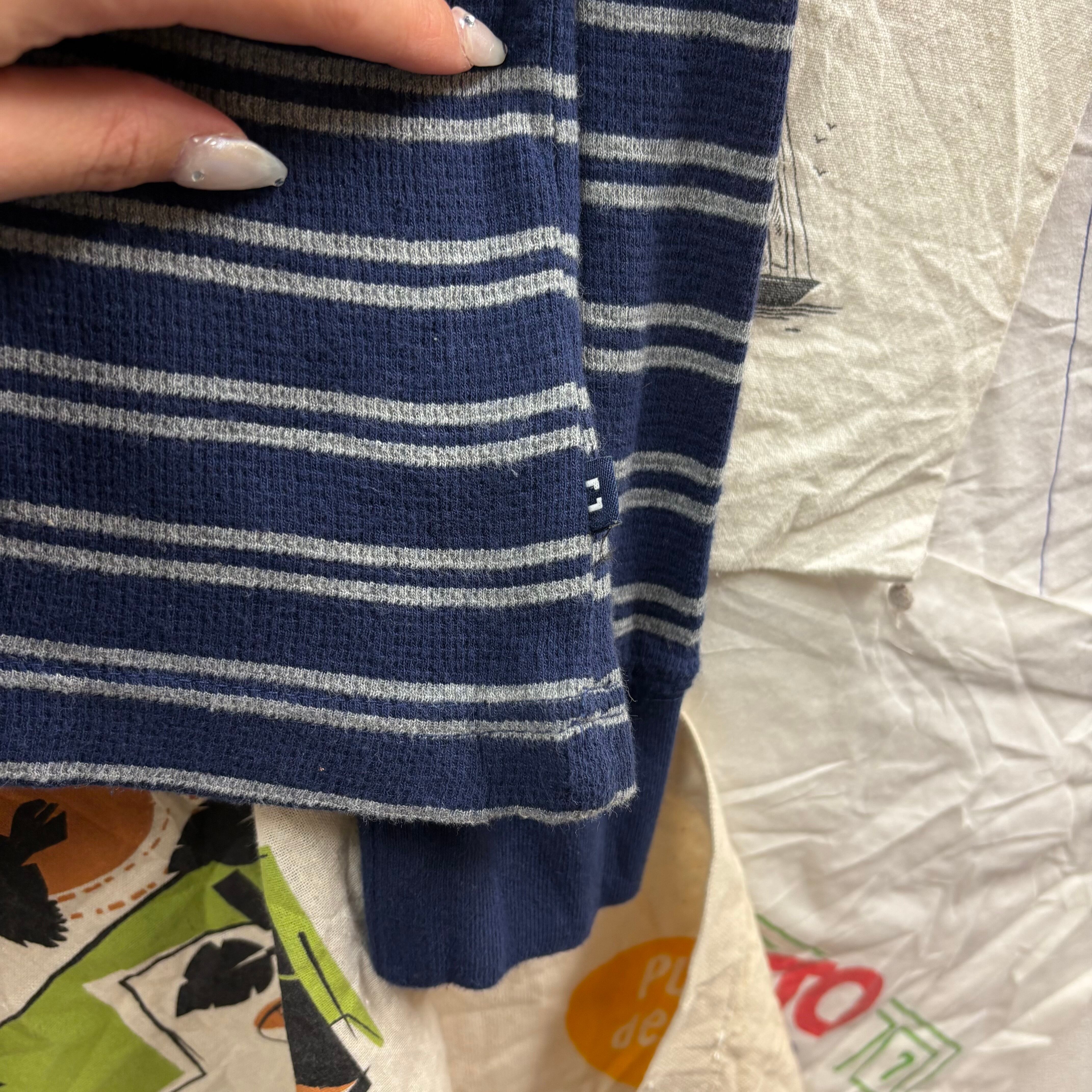 表情豊かなワッフル生地を採用しており、肌離れが良く着心地も抜群。ネイビー×グレーの落ち着いたボーダー柄なので、幅広いコーディネートに馴染みます。