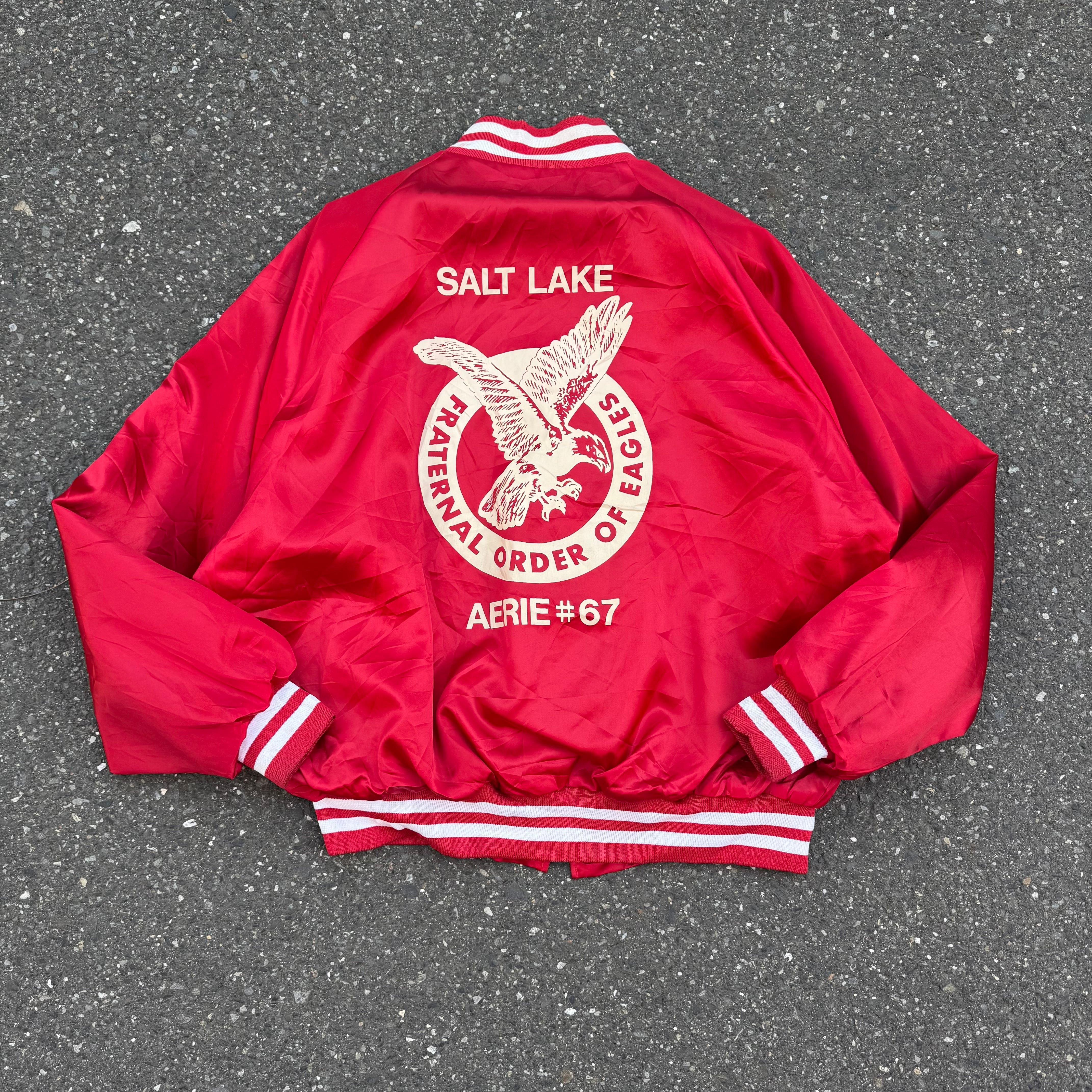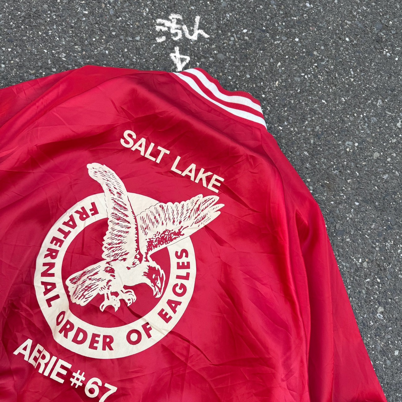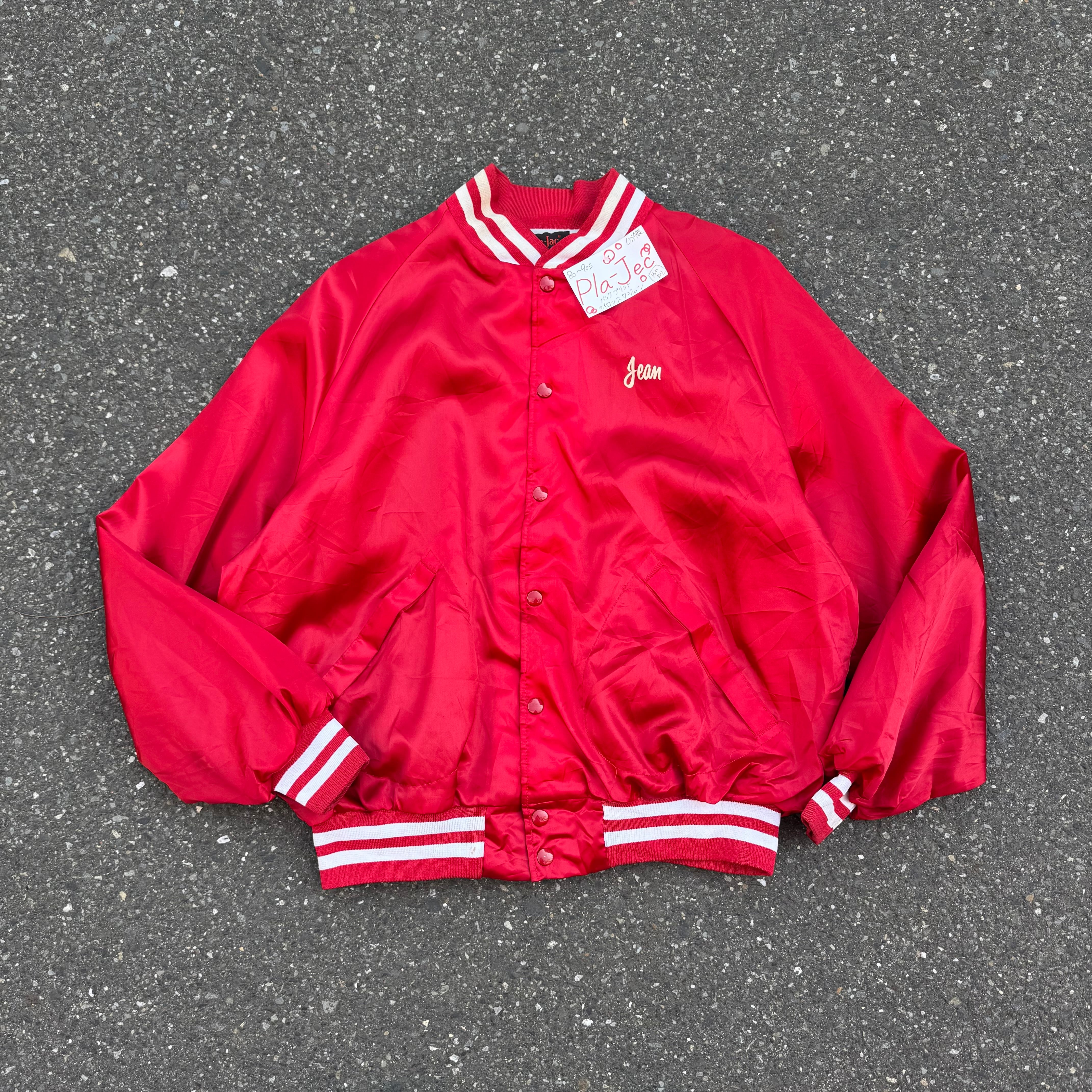 80~90s USA製 Pla-Jec バックプリント ナイロンスタジャン AKB