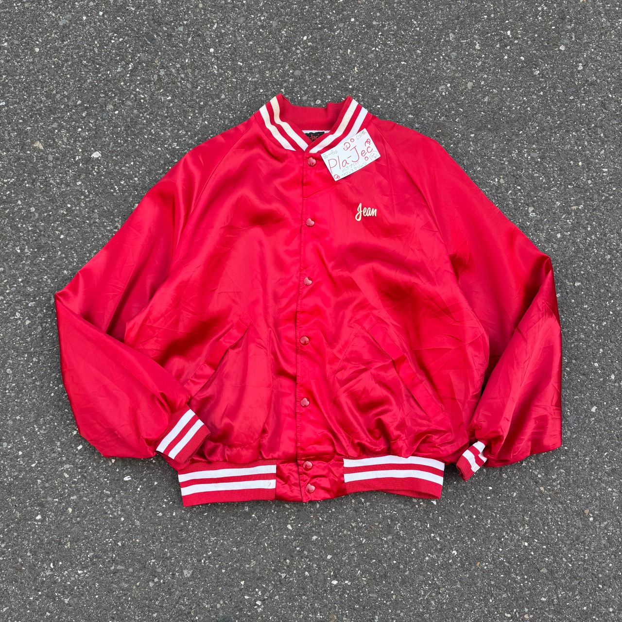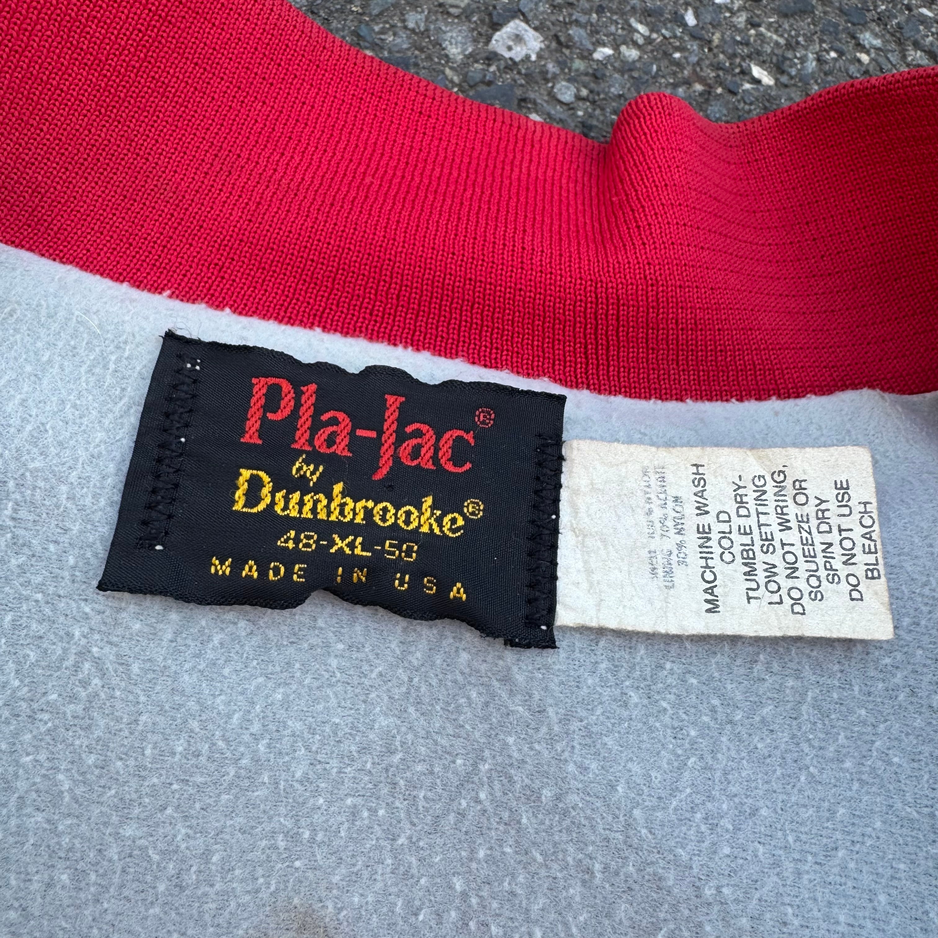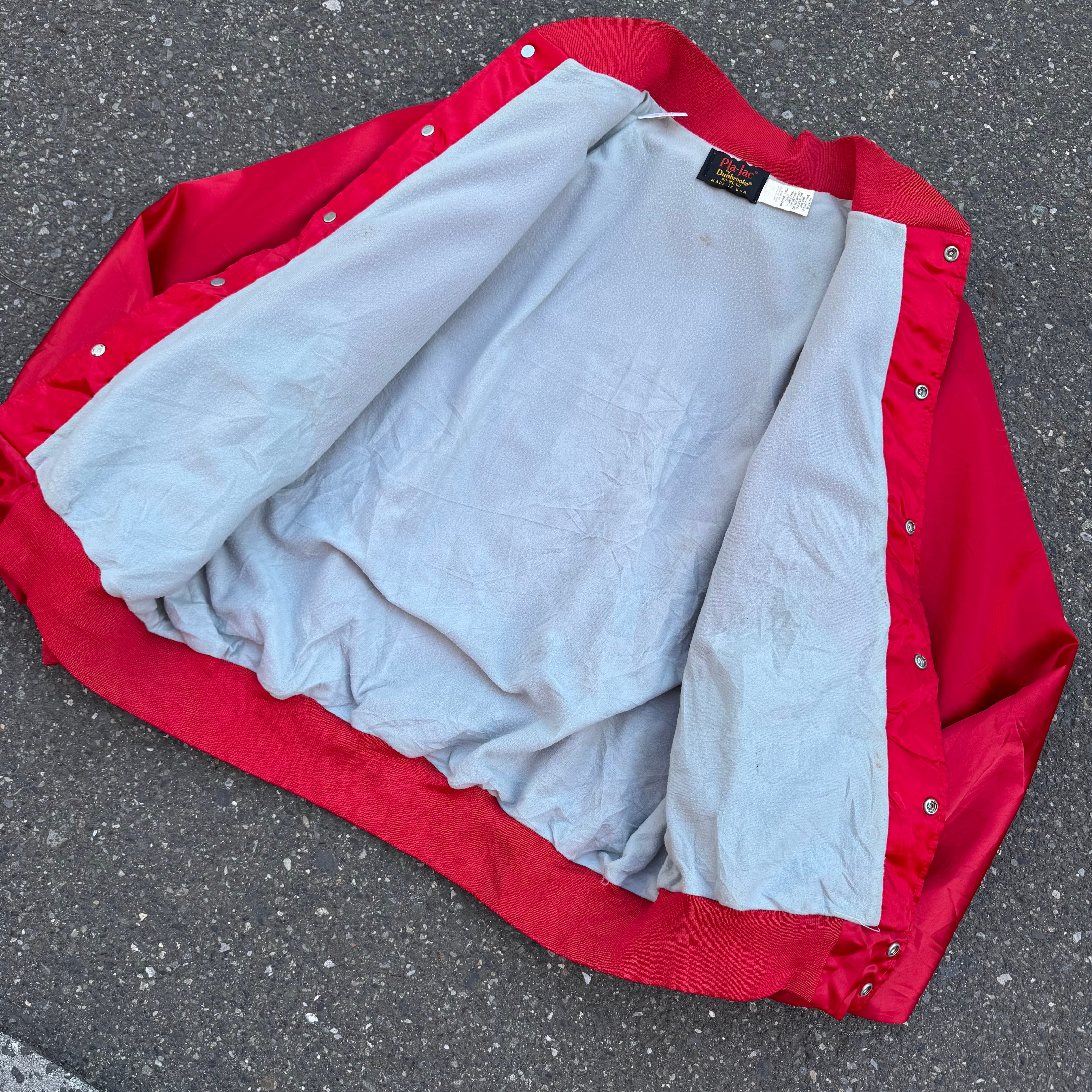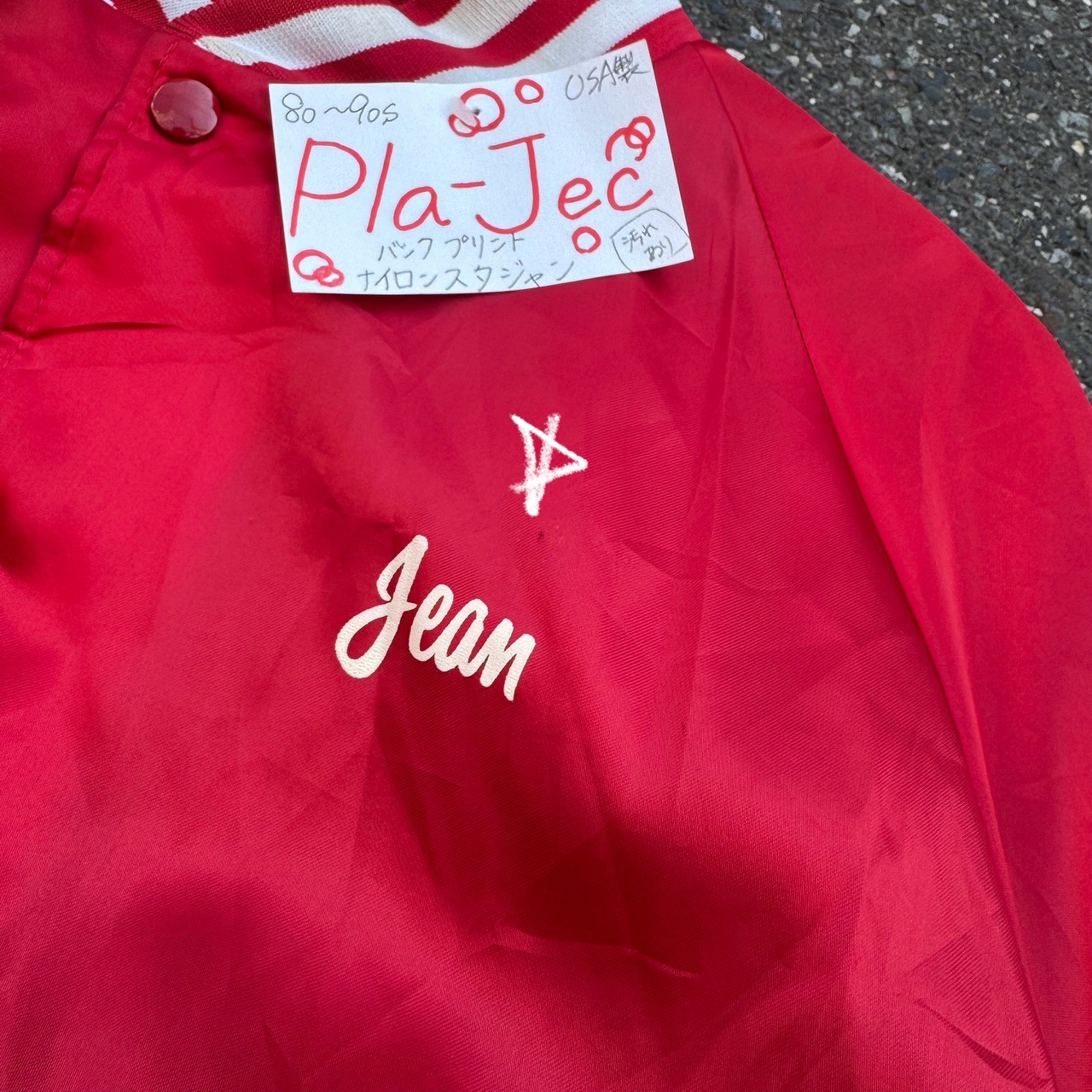 80~90s USA製 Pla-Jec バックプリント ナイロンスタジャン (汚れあり)となっております。