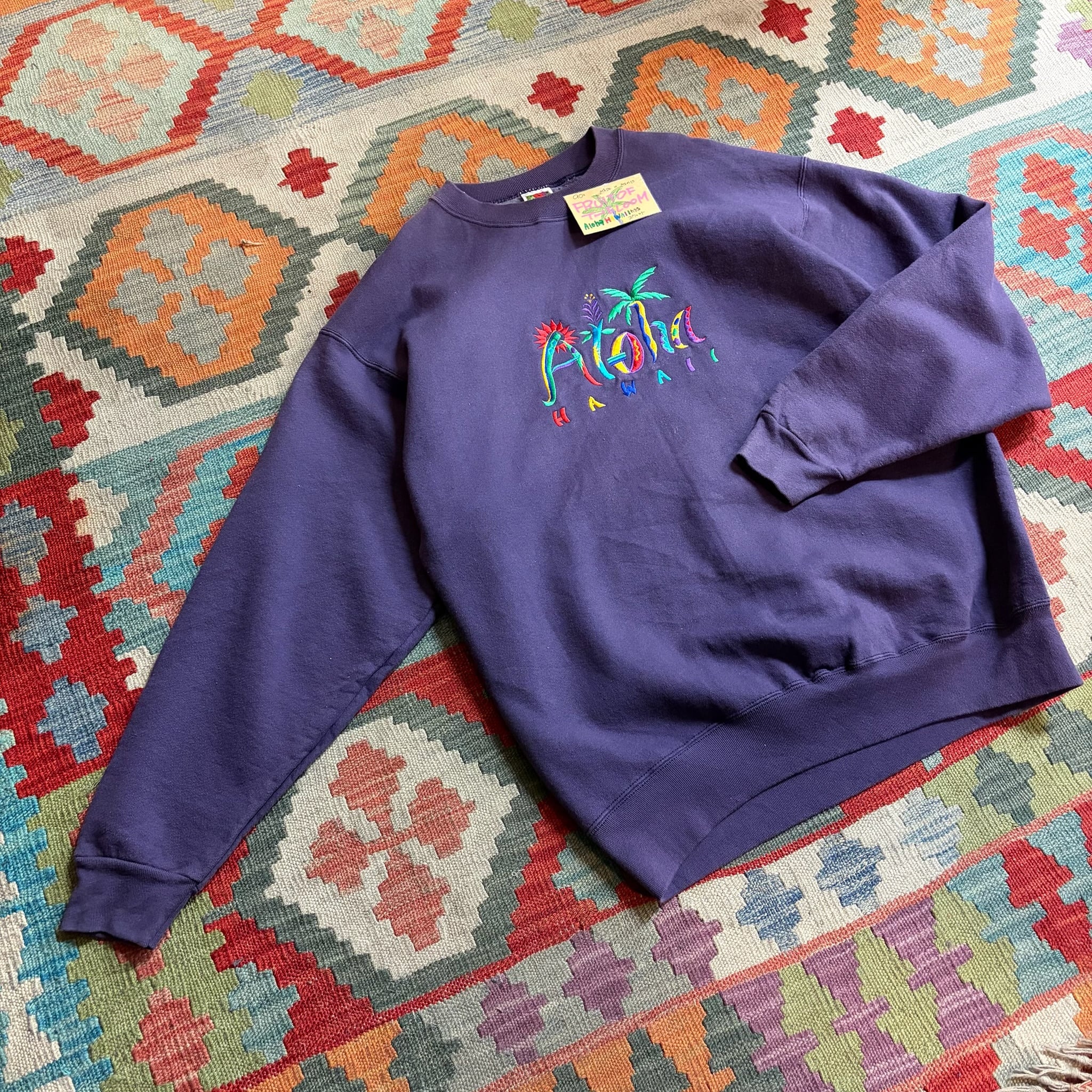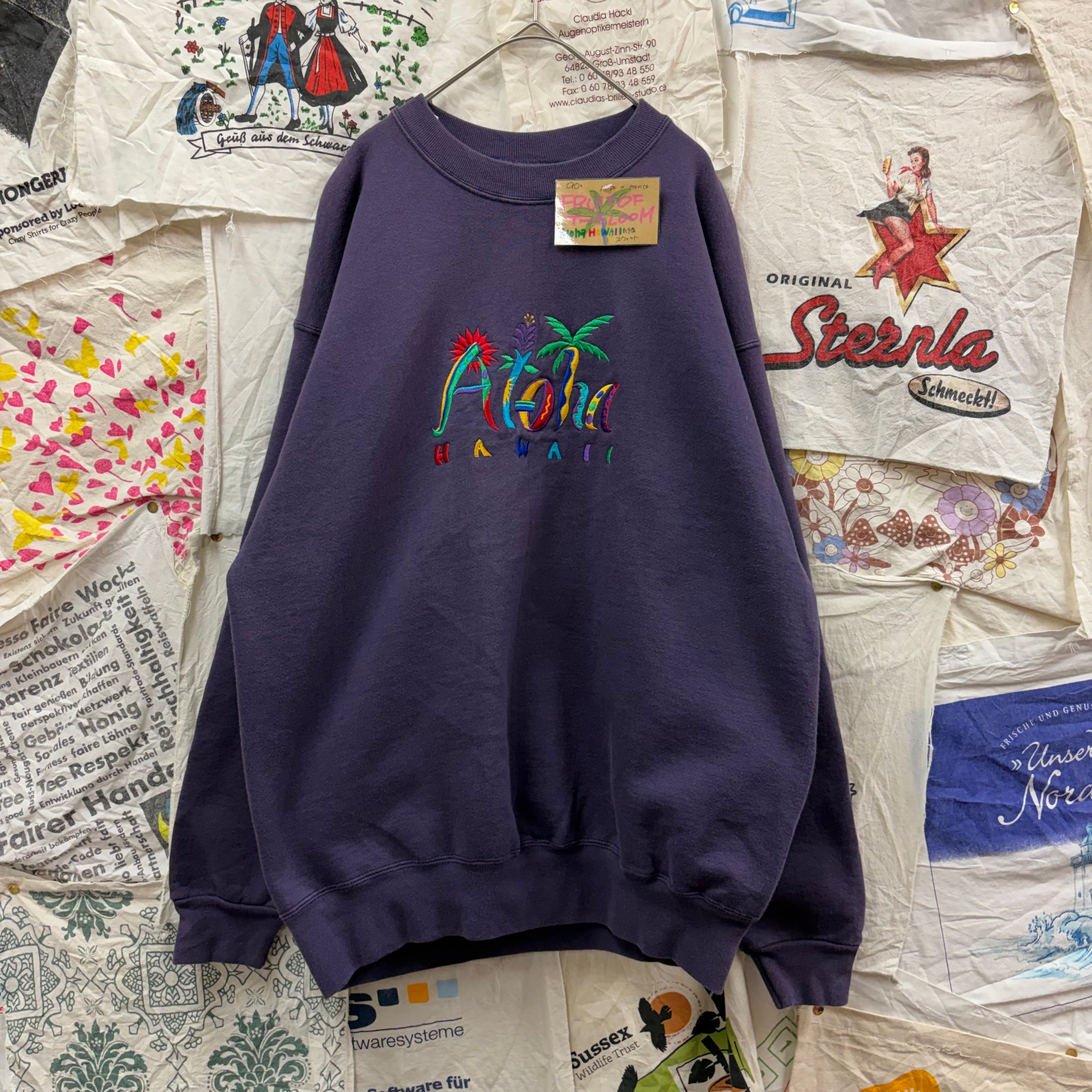 90s made in Mexico FRUIT OF THE LOOM Aloha HAWAII 刺繍スウェット