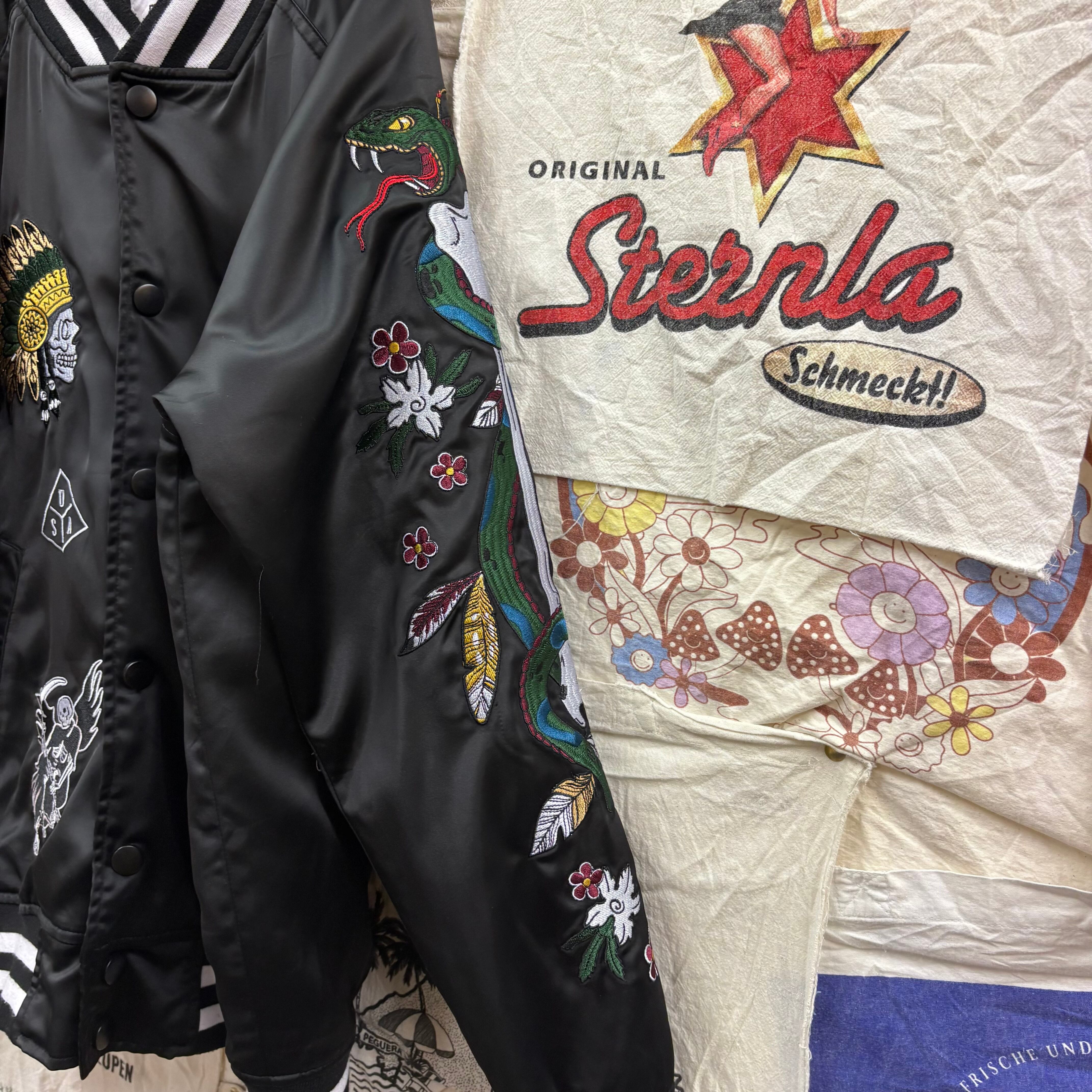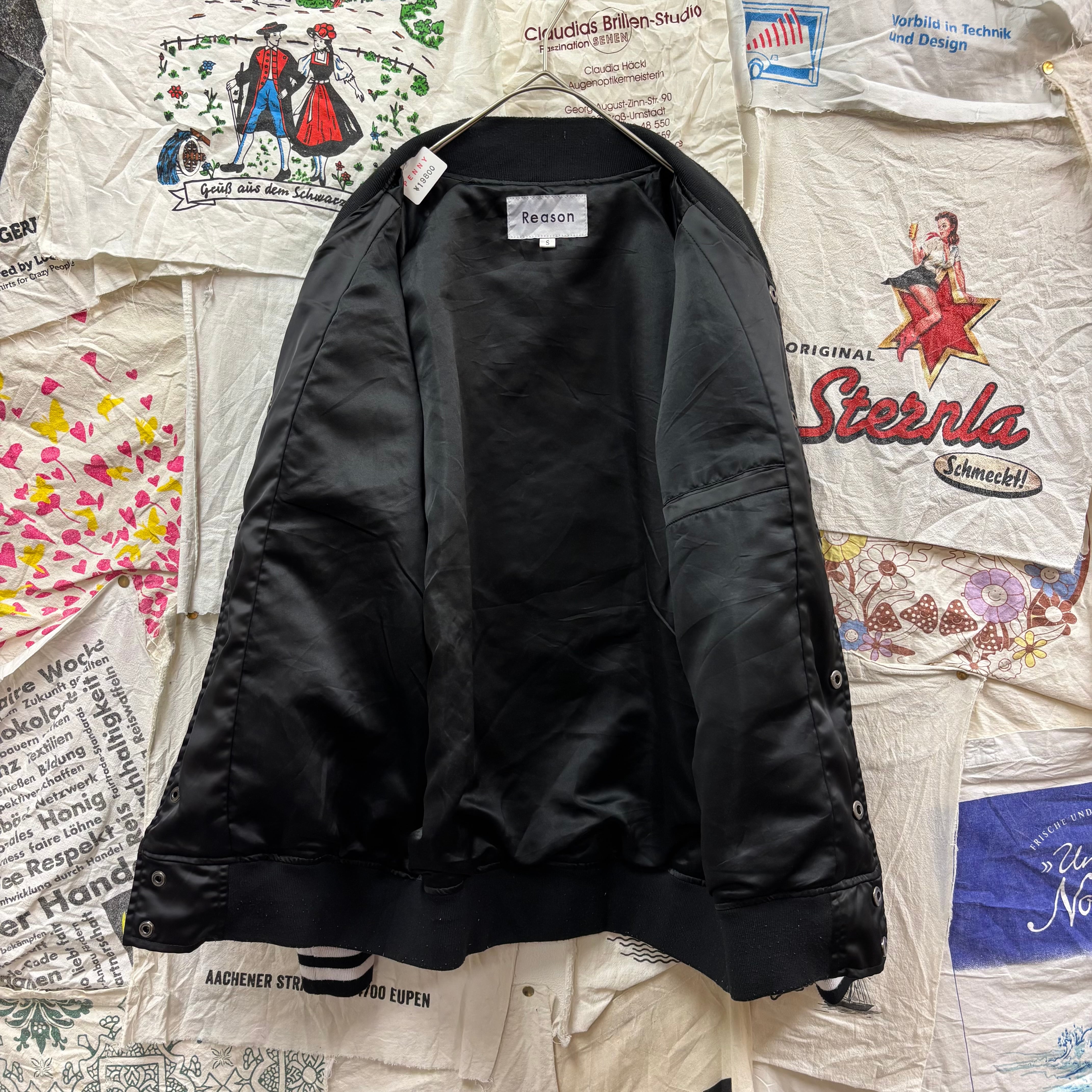 ハイエンドなストリートスタイルを提案する「REASON CLOTHING」より、全面に緻密な刺繍が施されたサテンスタジャンです。スカジャンのような光沢感と、ブランドらしいダークでグラフィカルなデザインが融合した至極の一着。