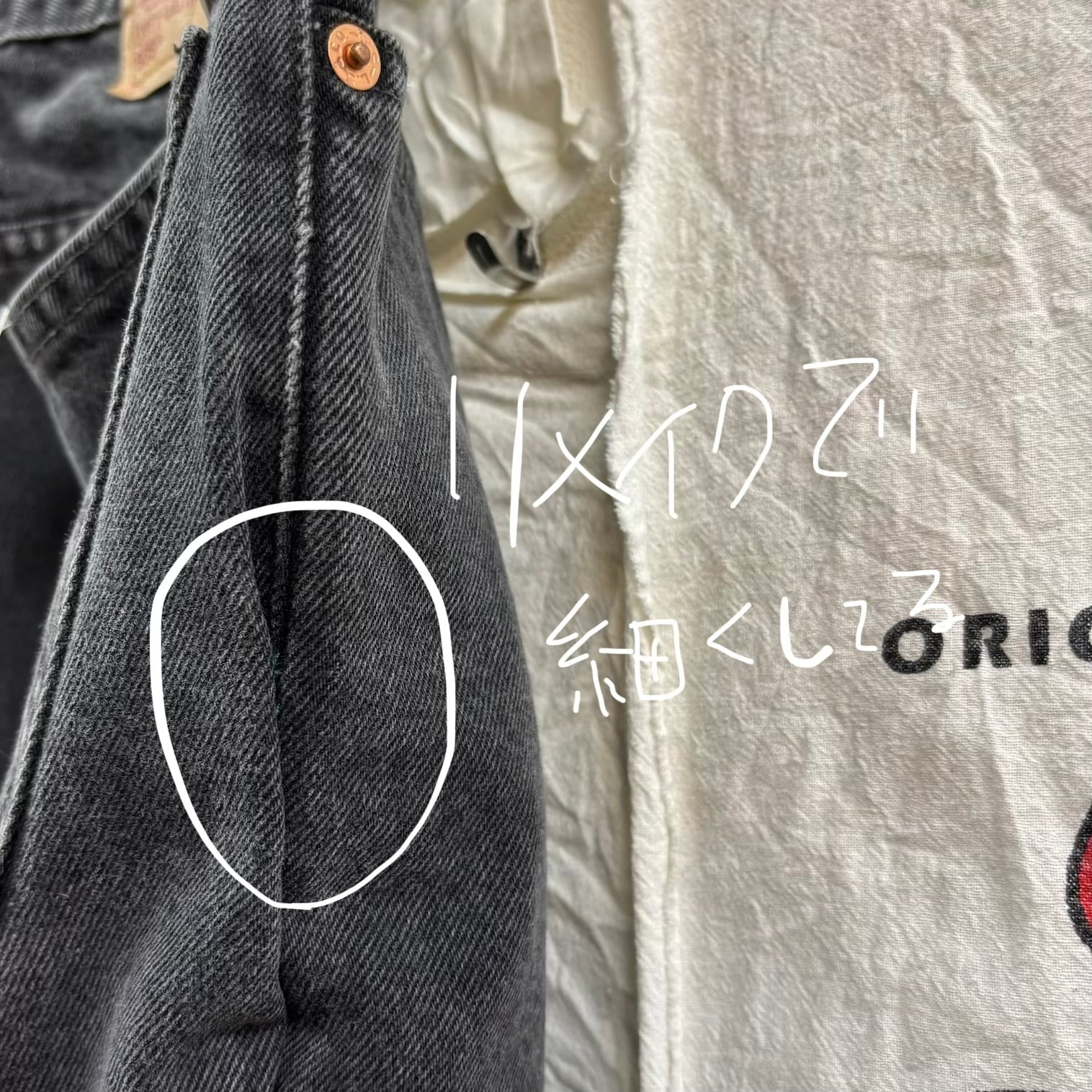 1999年3月製造のリーバイス505ブラックデニムをベースに、スリムシルエットへリメイクされた特別な一本です。