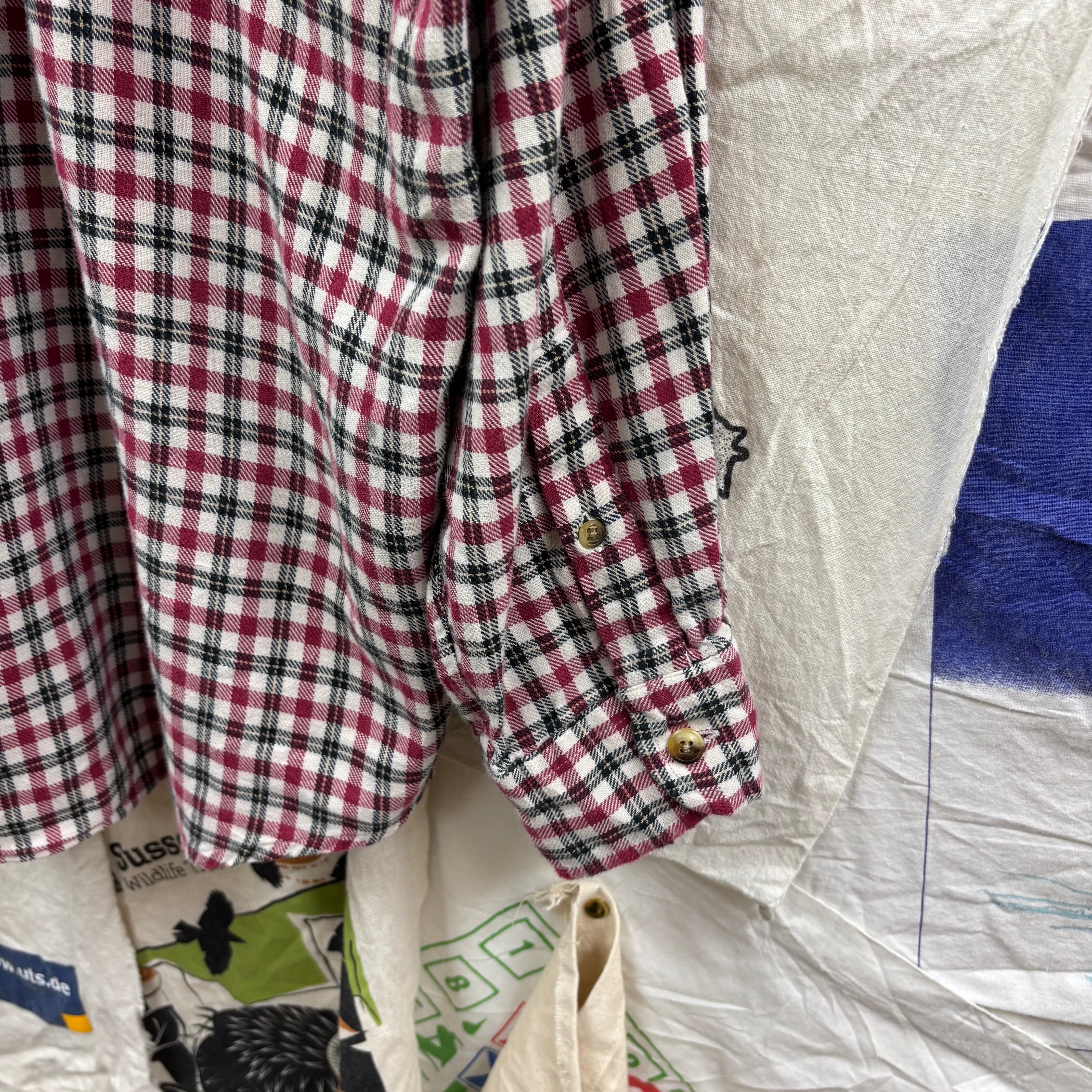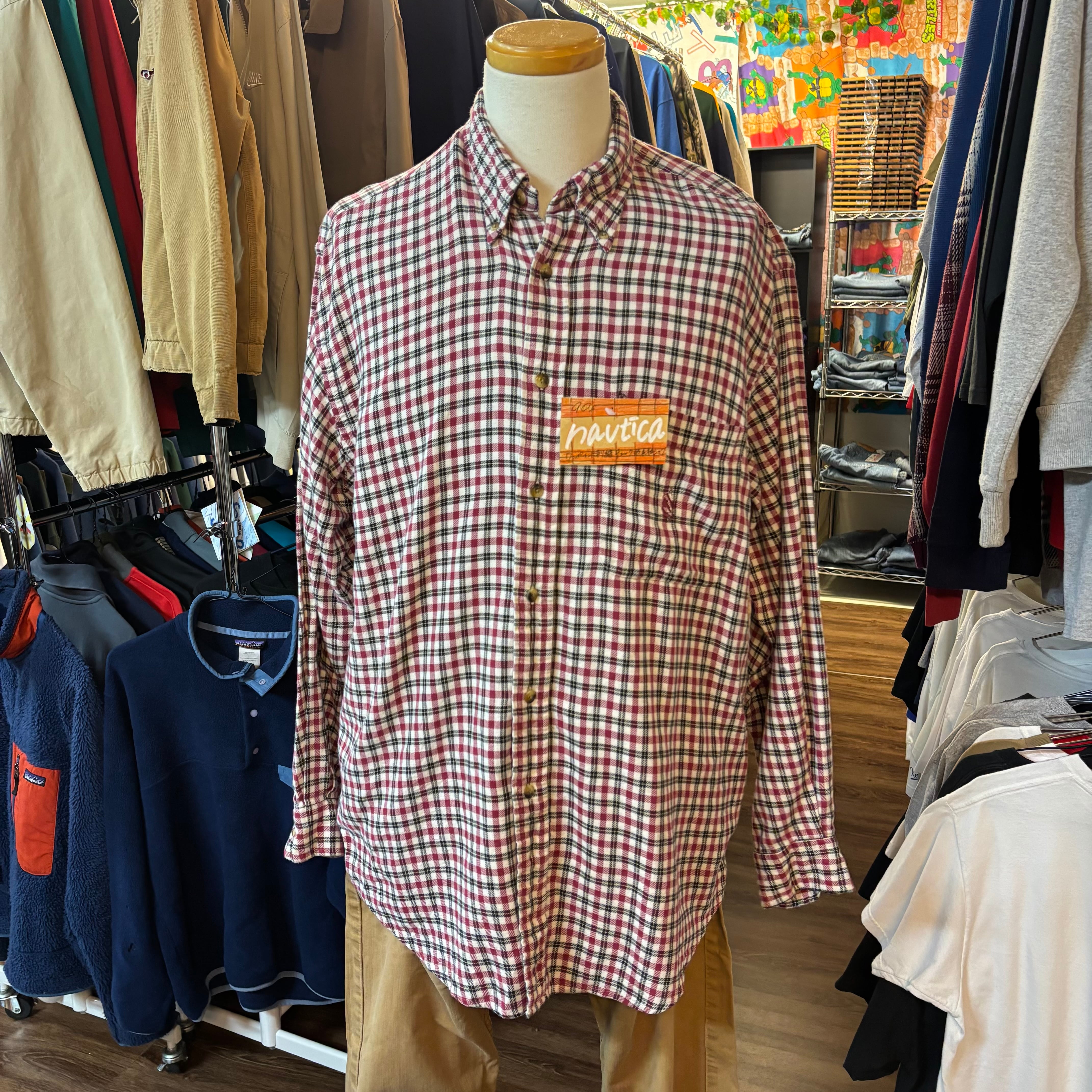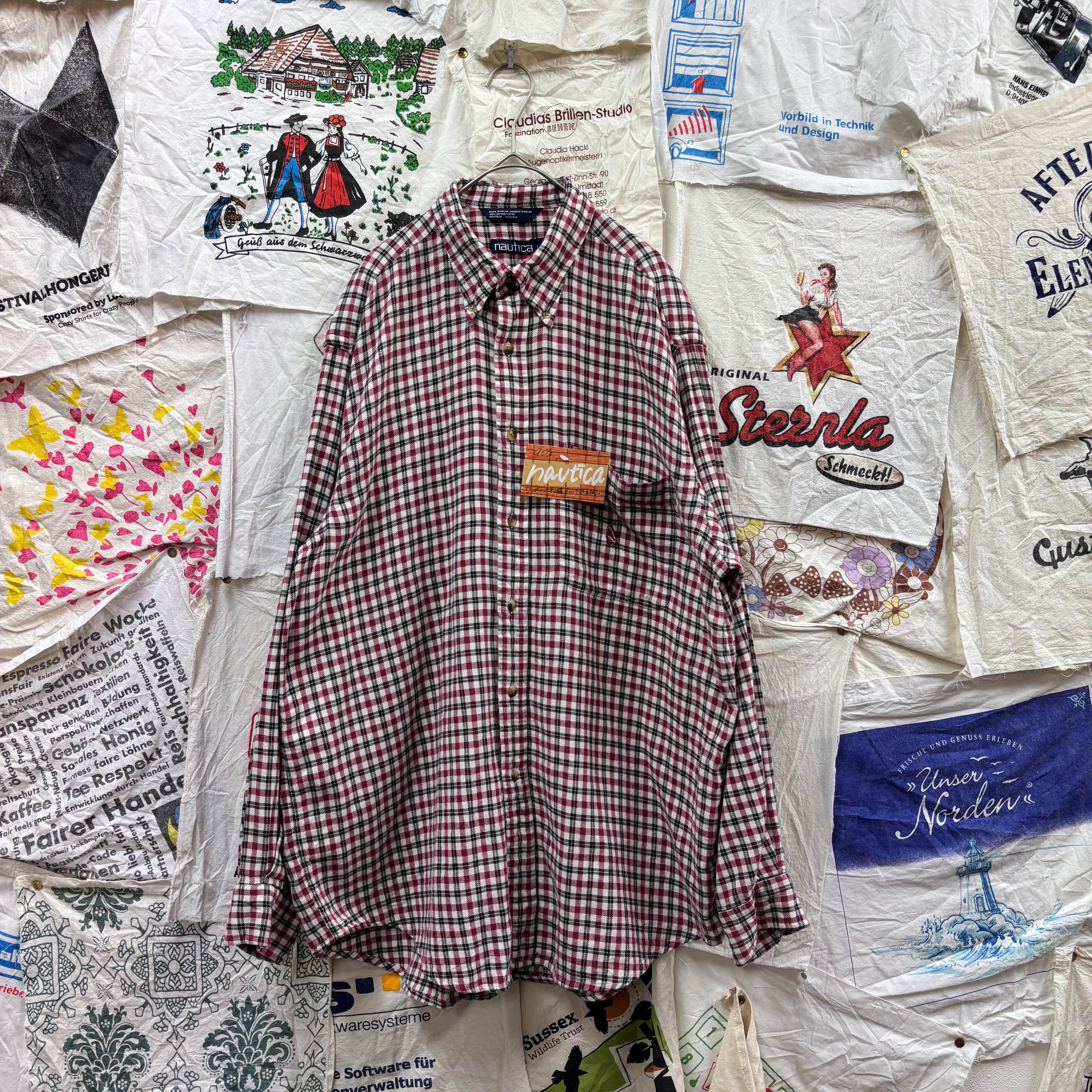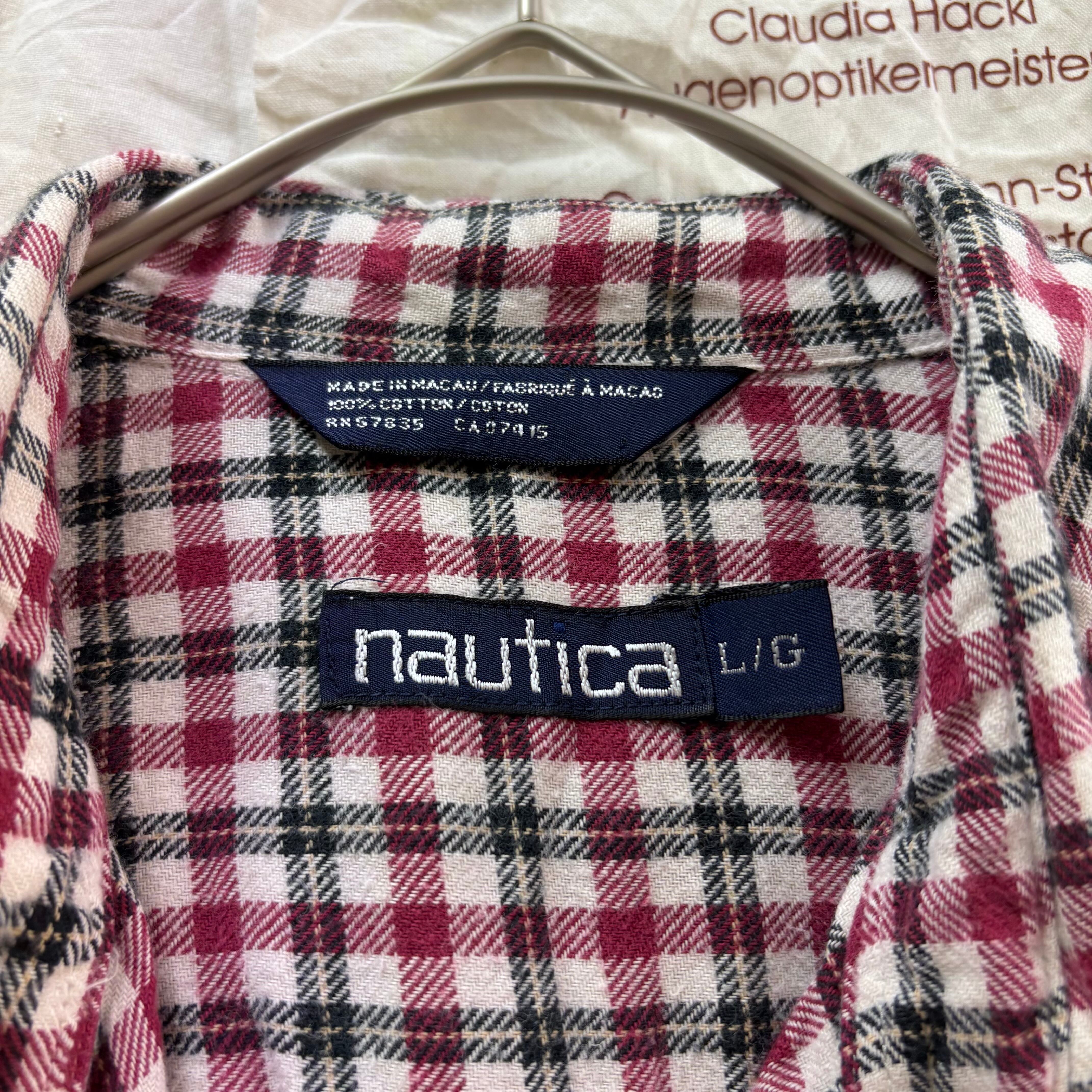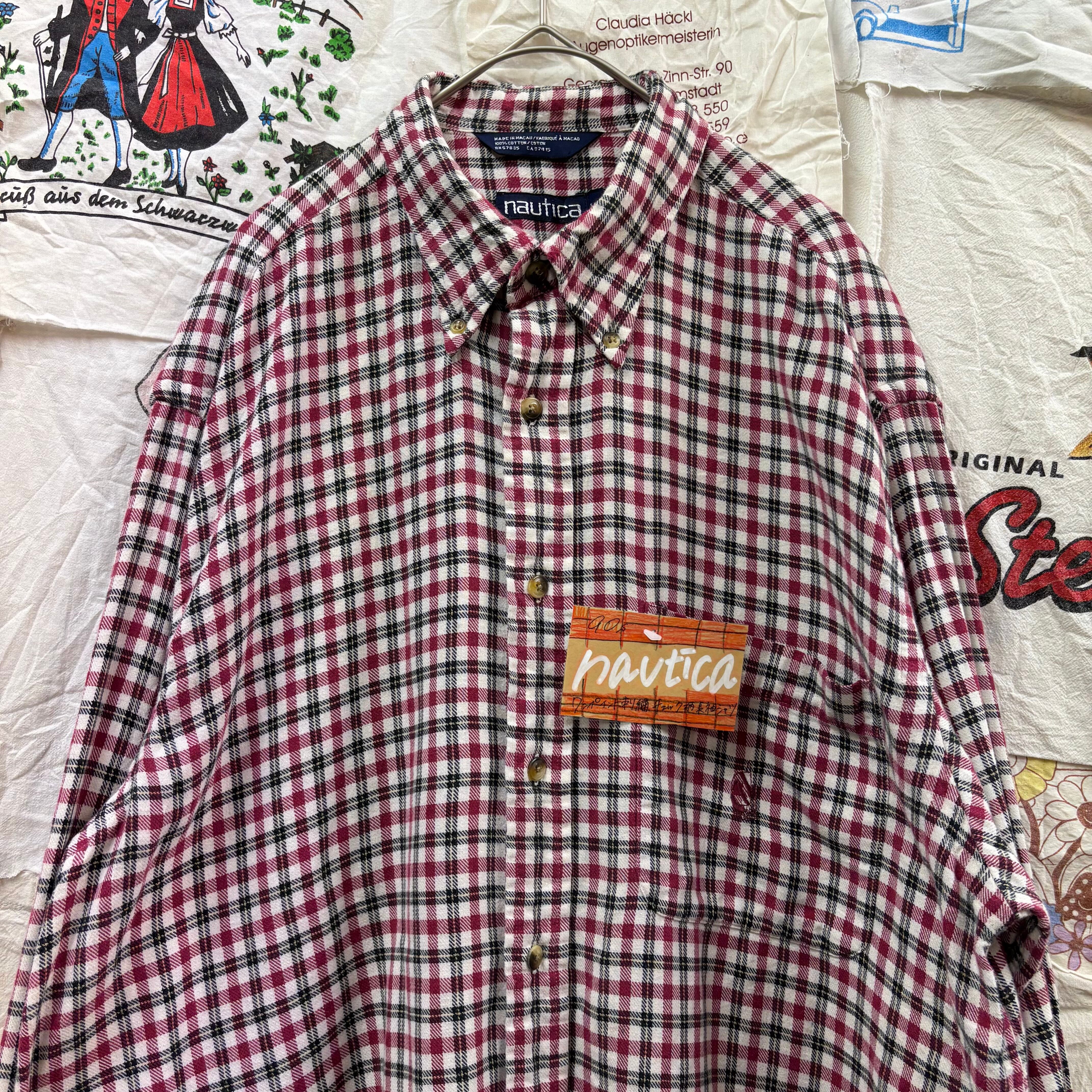 90年代頃のノーティカ、オールドアイテムです。ワインレッド×ブラック×ホワイトの落ち着いたチェック柄が、カジュアルながらも上品な印象を与えてくれます。