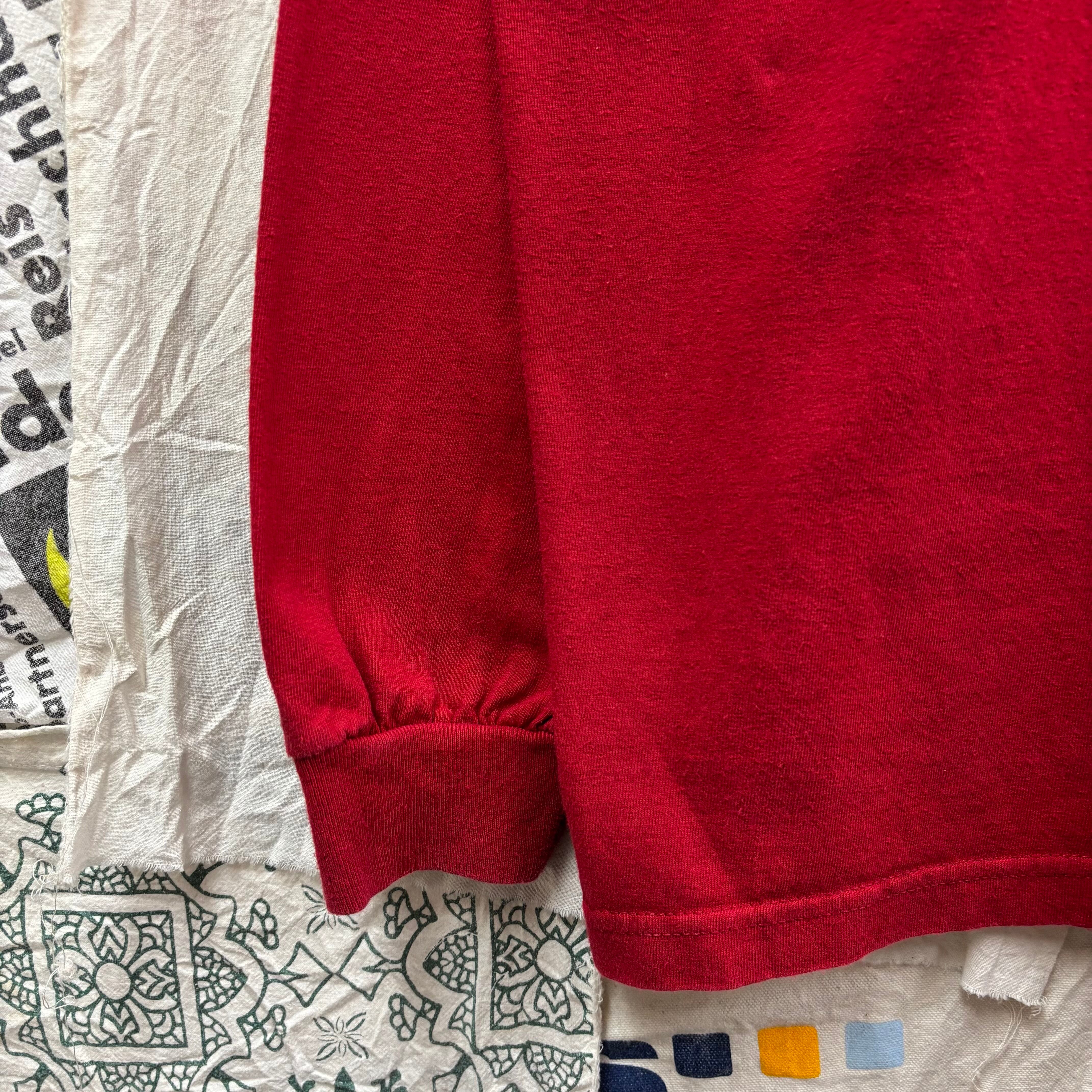 鮮やかなレッドボディに、ホワイトとシルバーのロゴプリントがアクセント。バックプリントのないシンプルなデザインなので、どんなスタイルにも合わせやすく、デイリーユースに最適です。