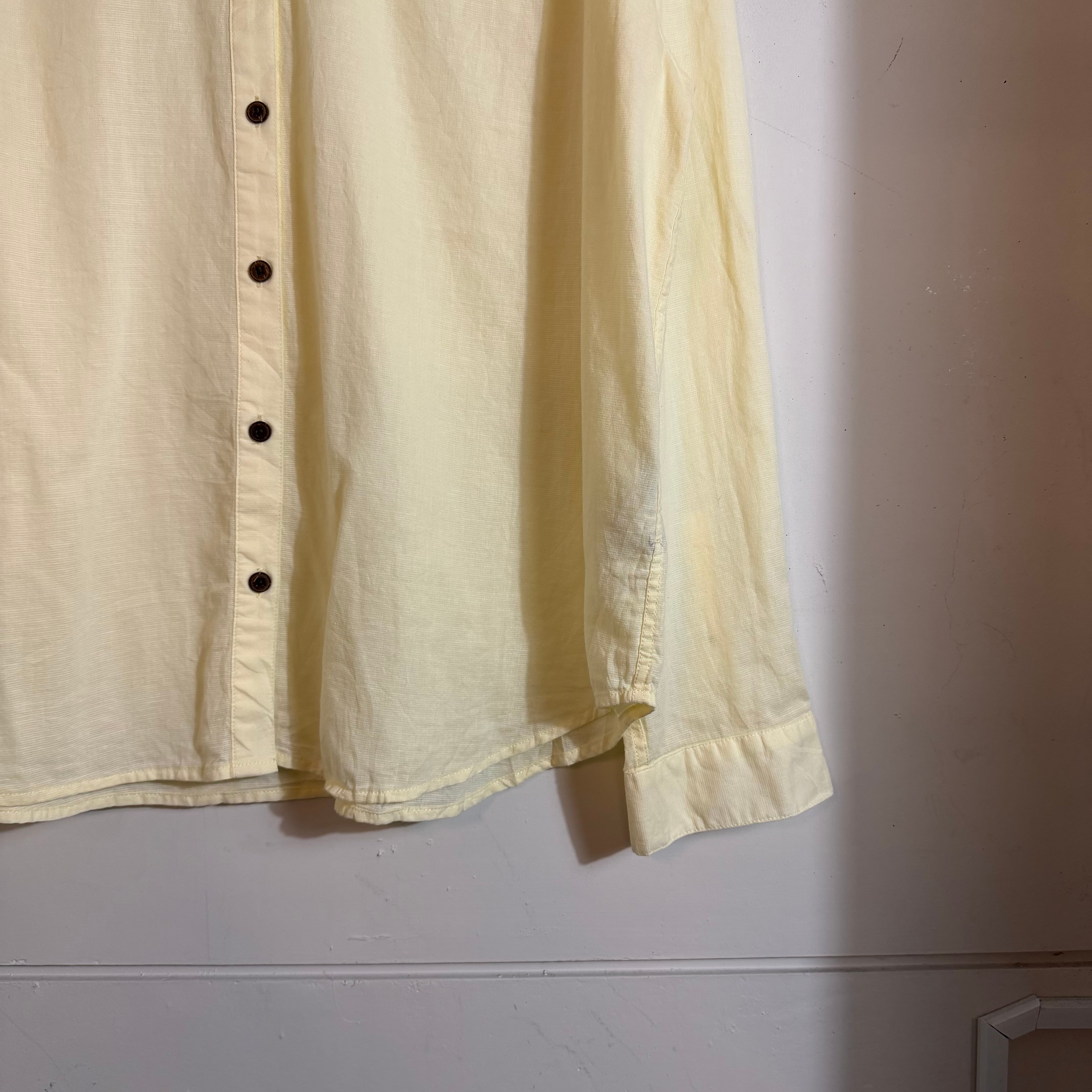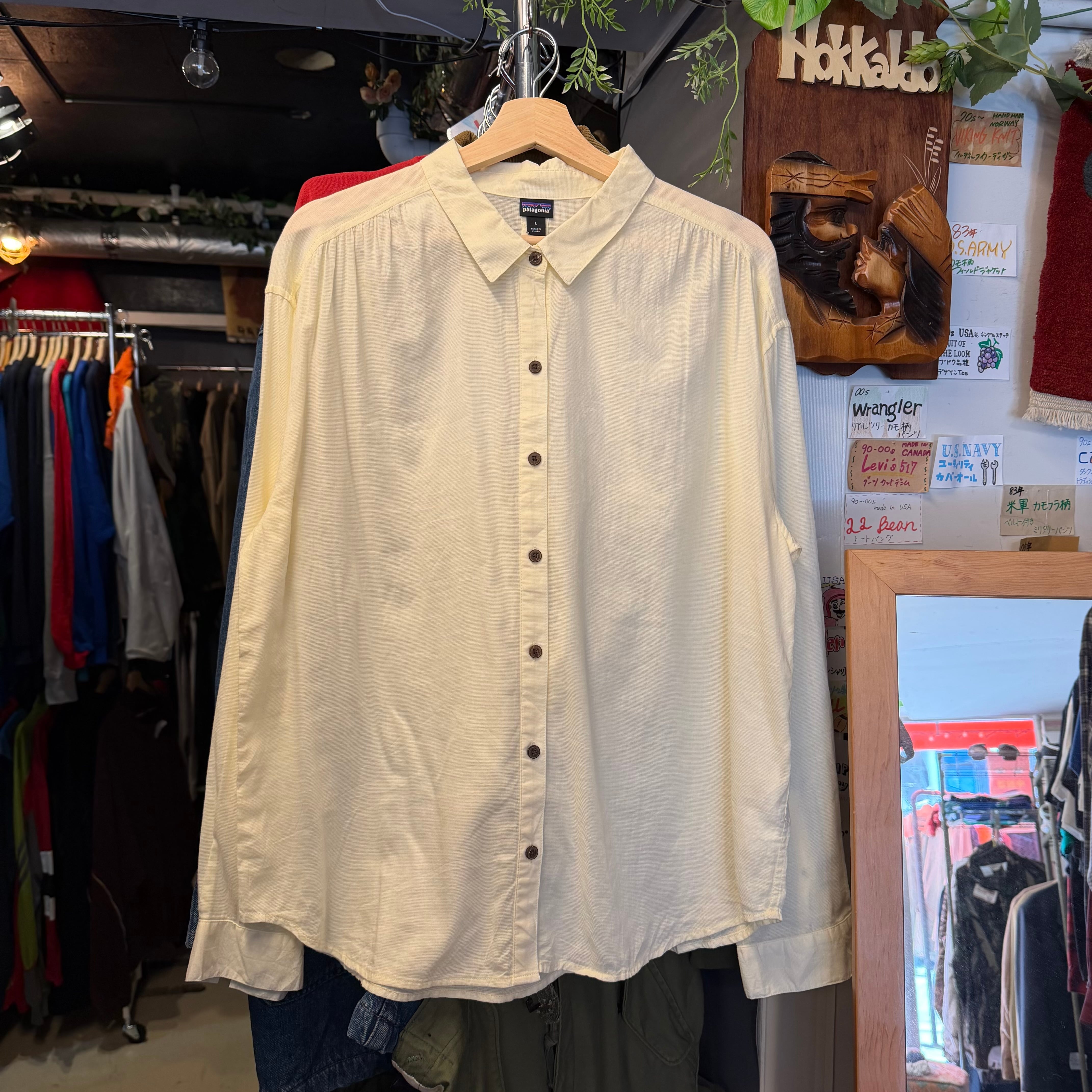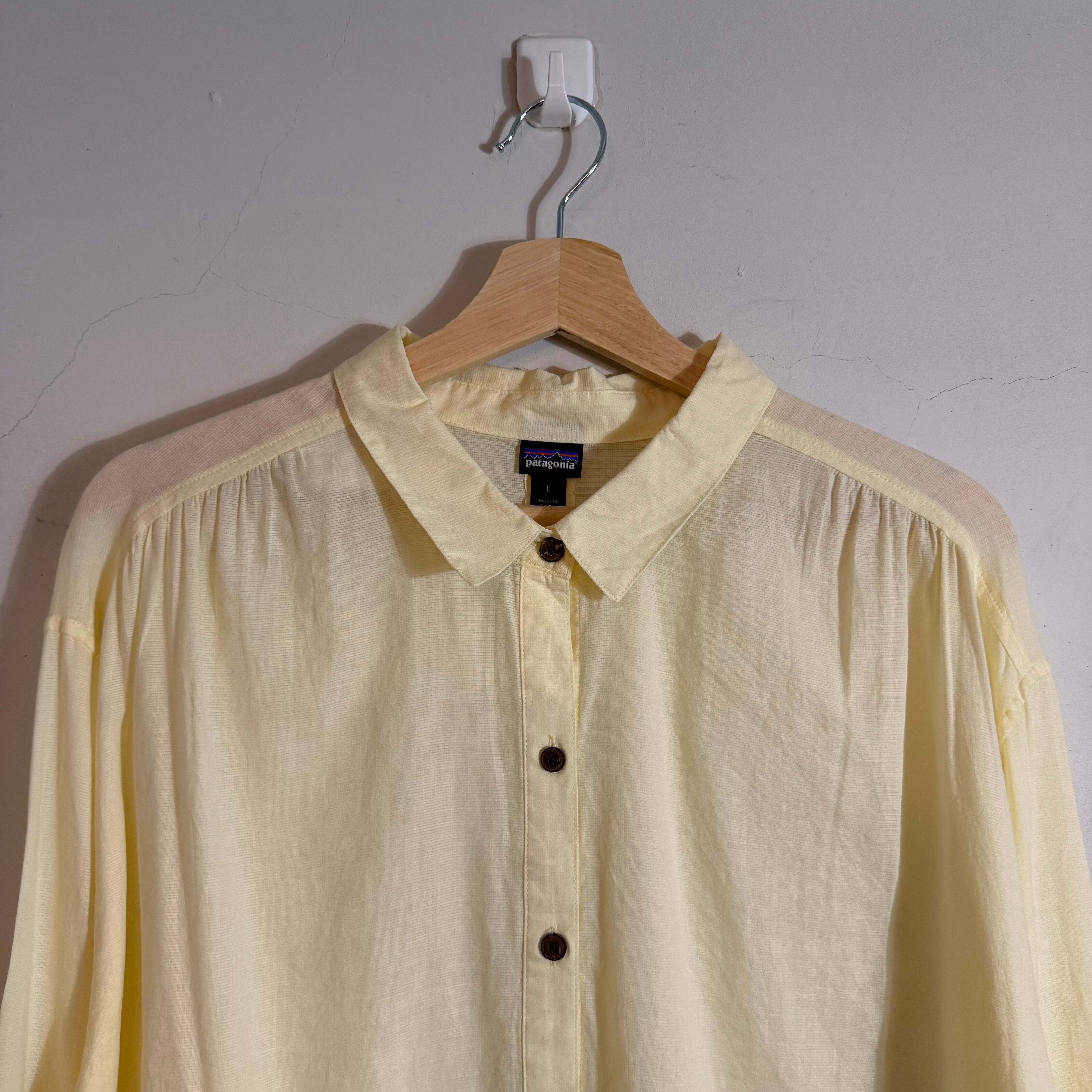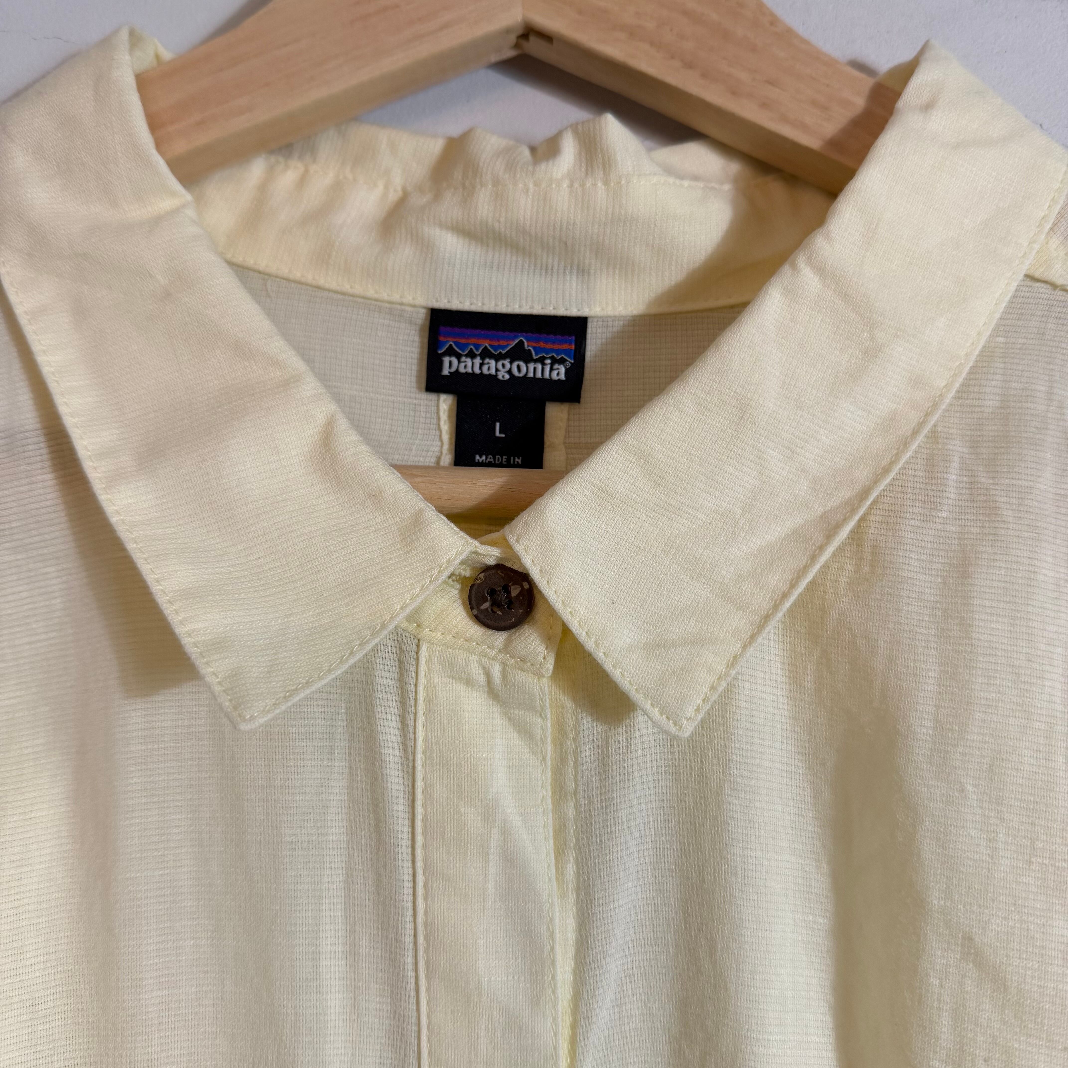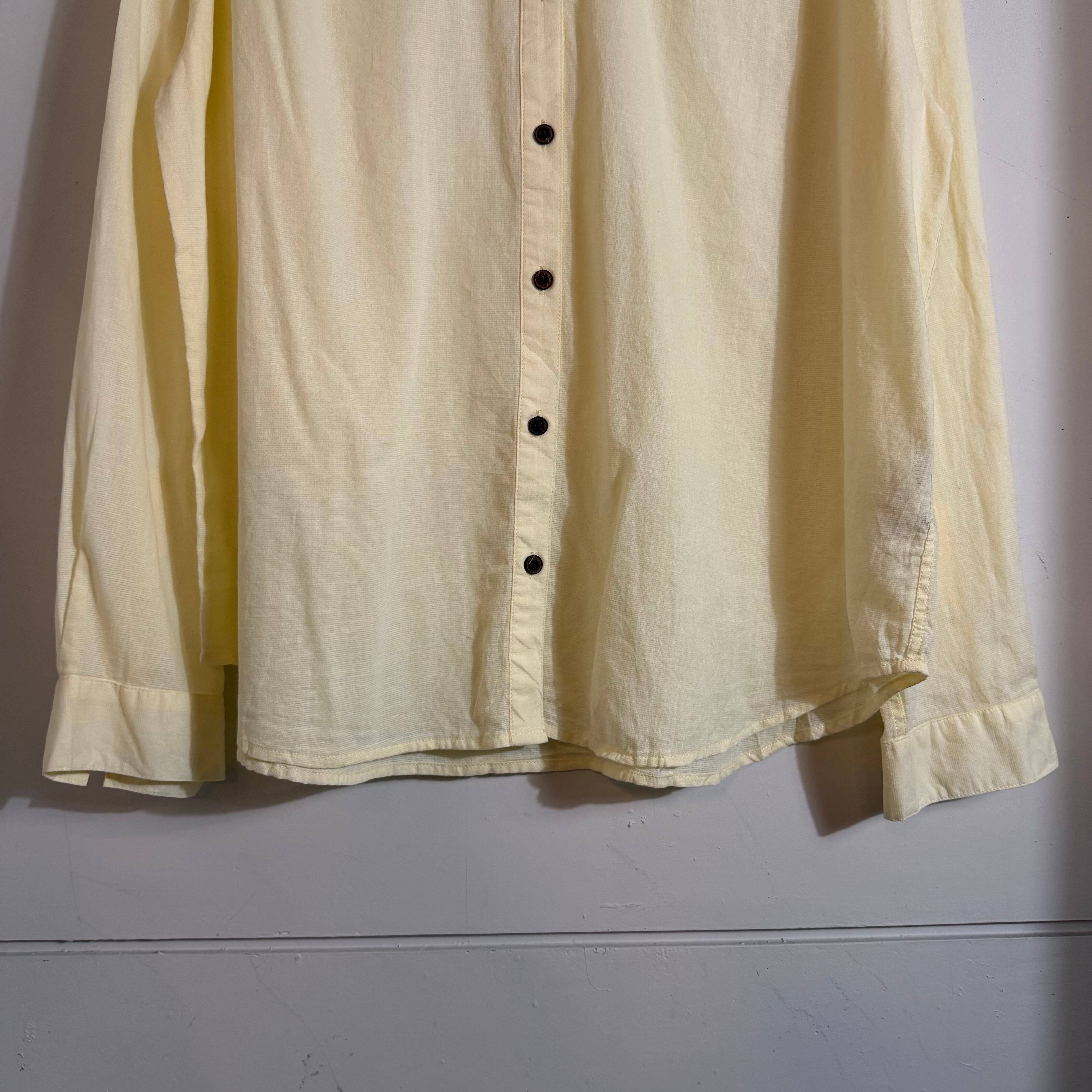 00s Patagoniaのイエローカラー無地長袖シャツ。MADE in China表記のこの年代らしい一枚で、シンプルながら発色の良いカラーがコーデのアクセントに。1枚でも羽織りでも映える万能アイテム。