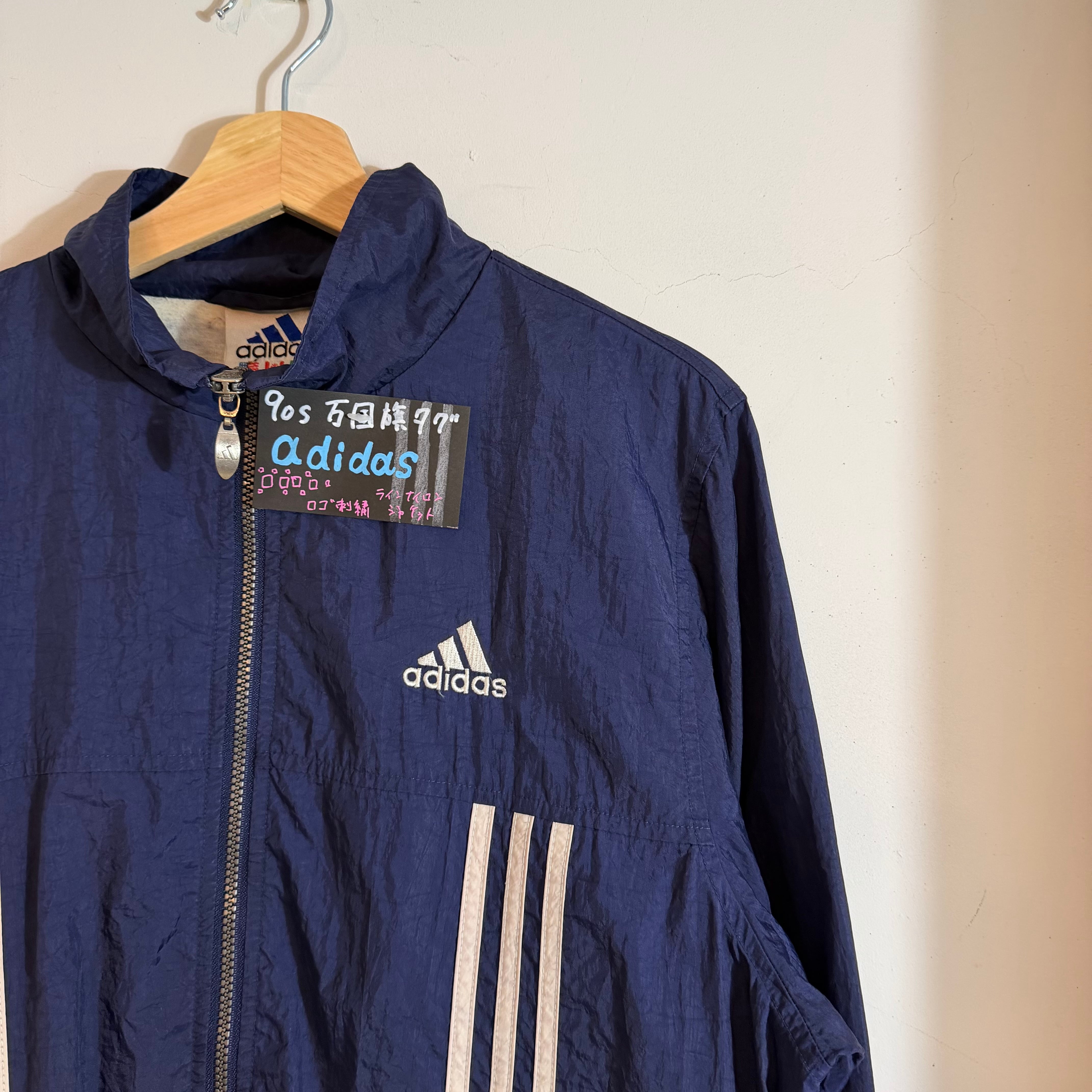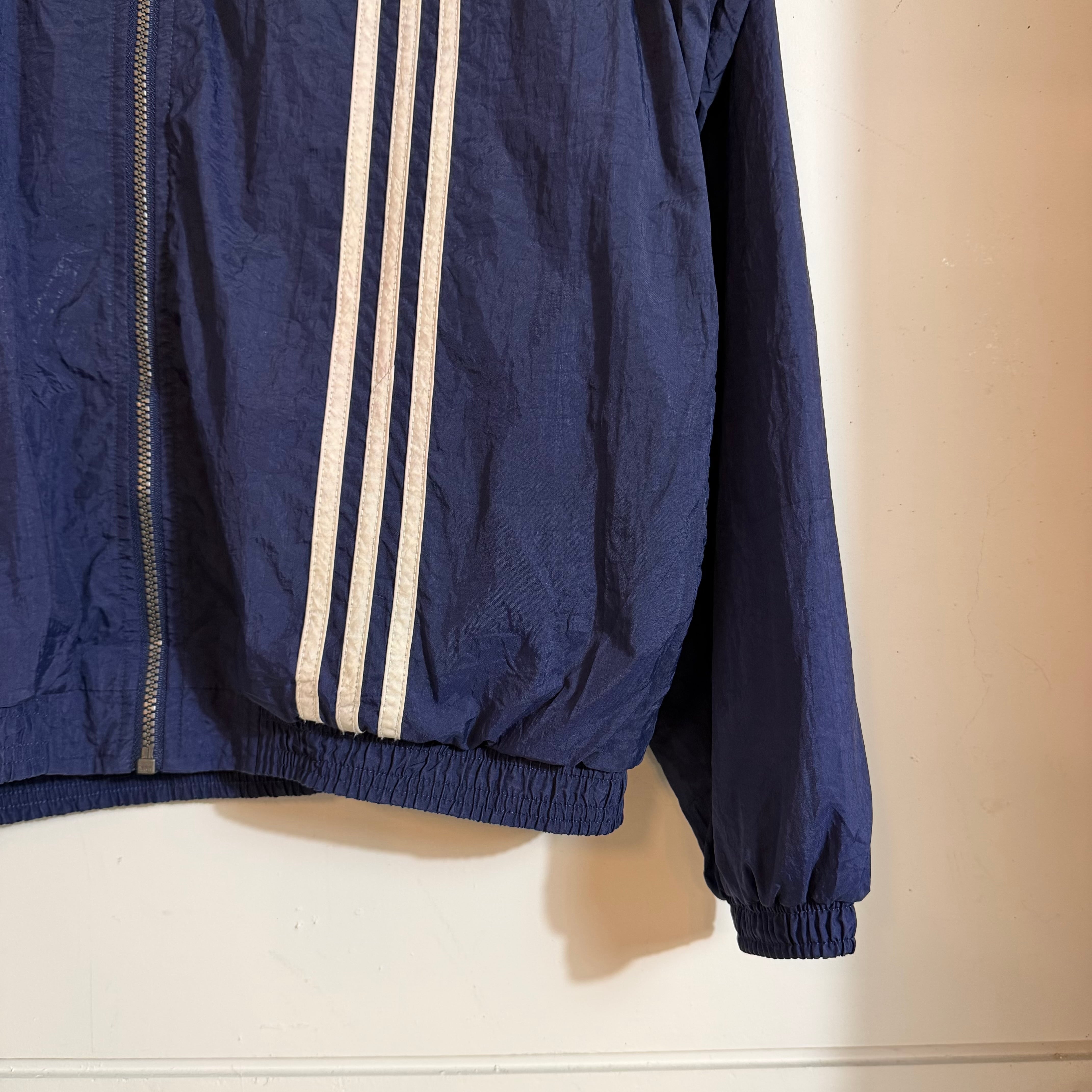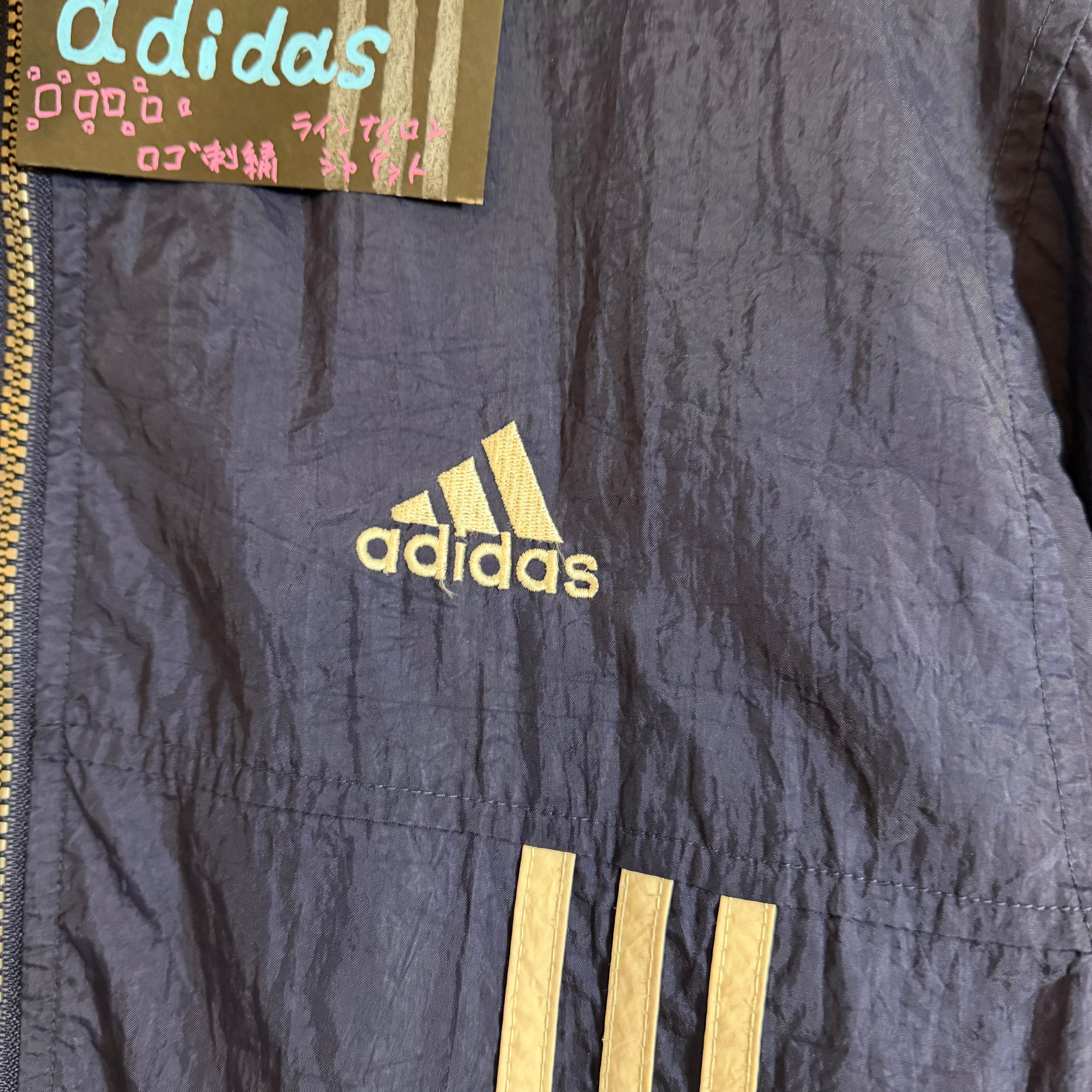 90s 万国旗タグ adidas ロゴ刺繍 ラインナイロンジャケット AKB