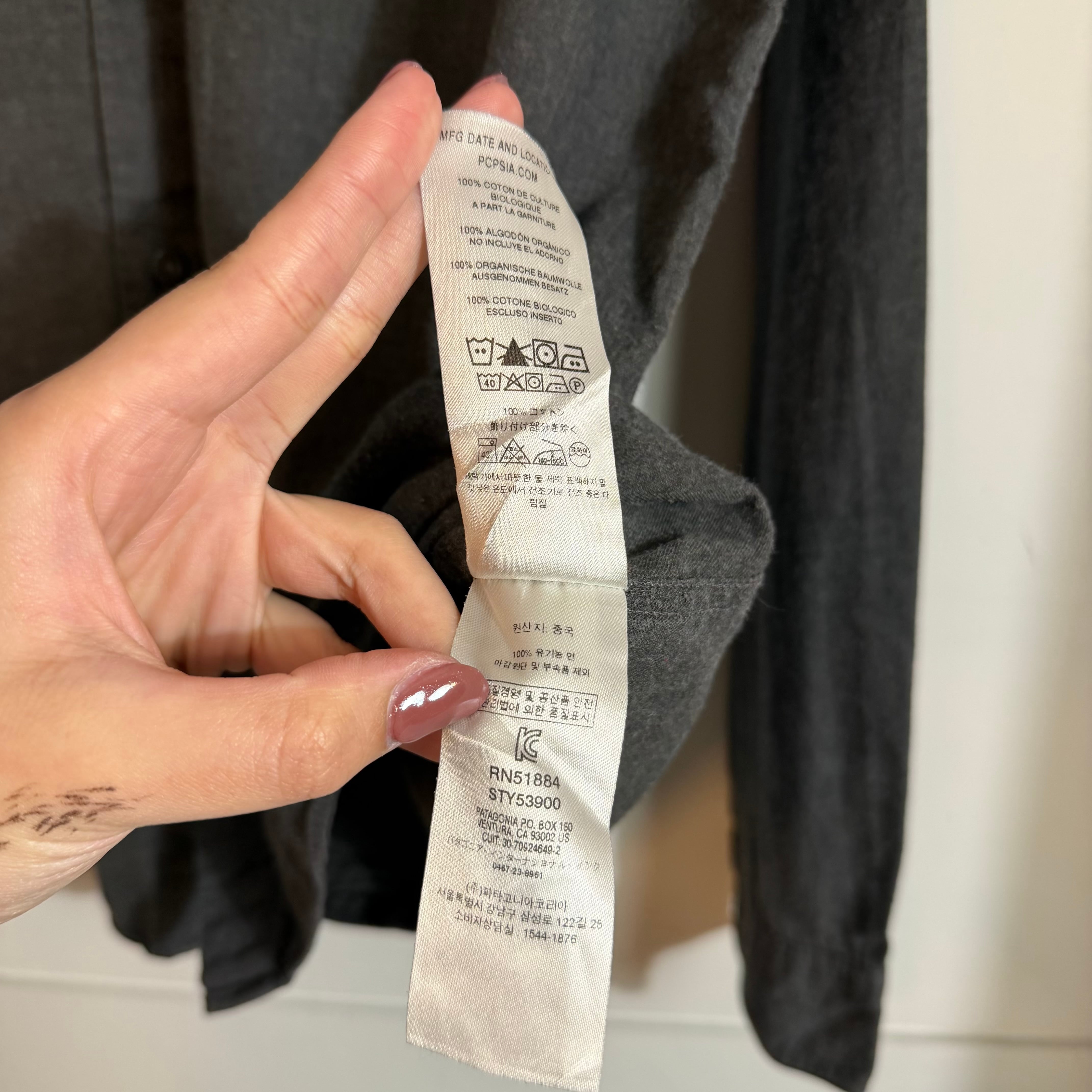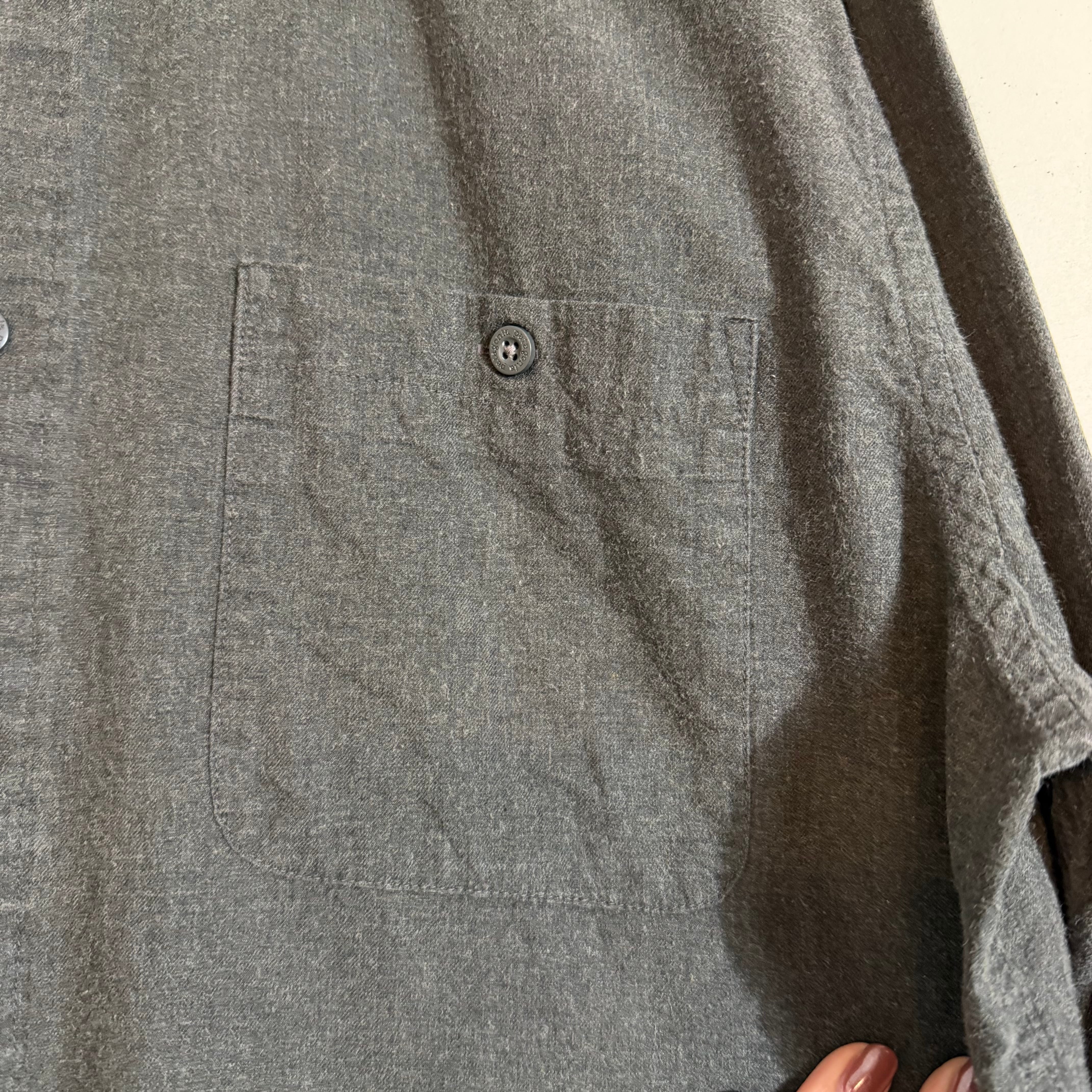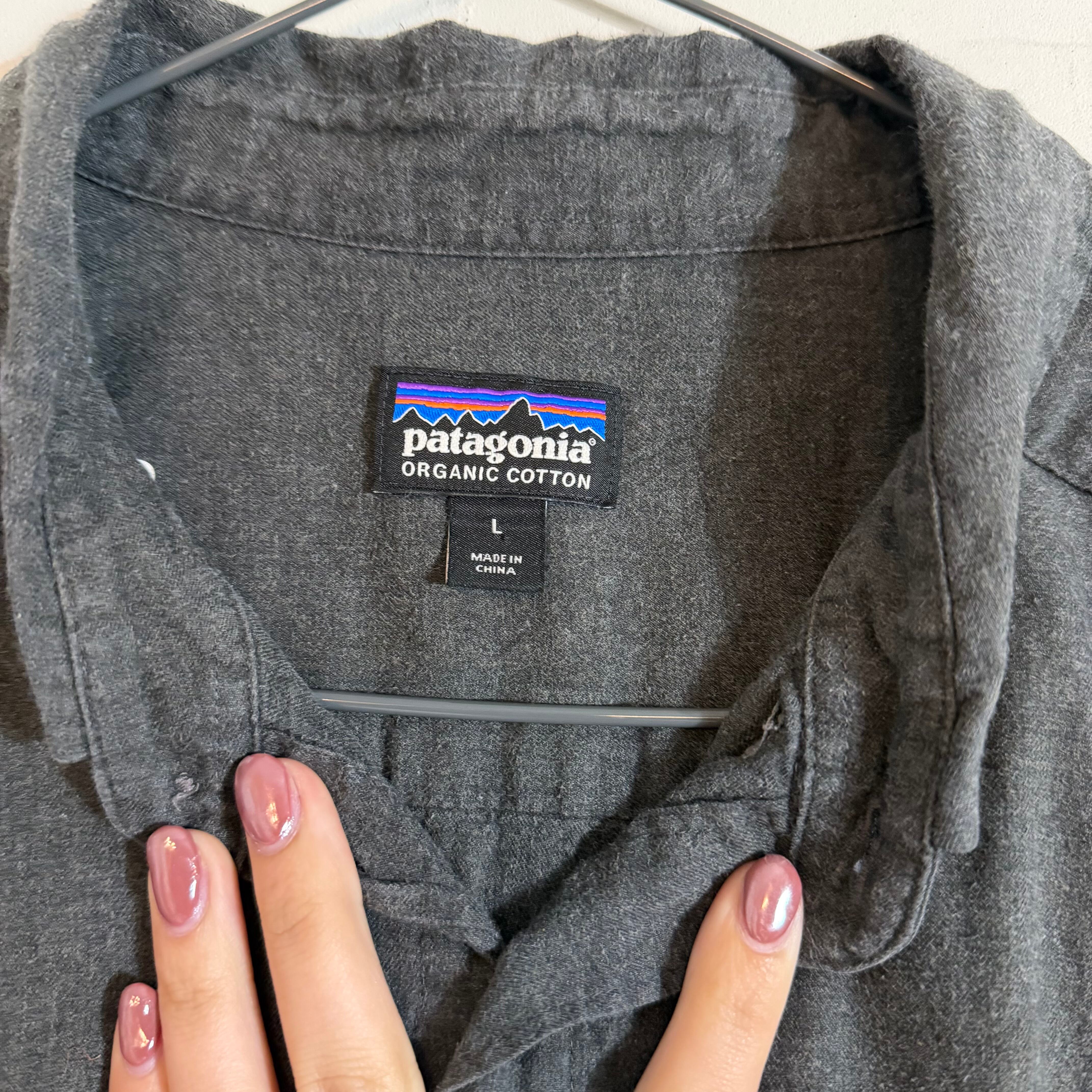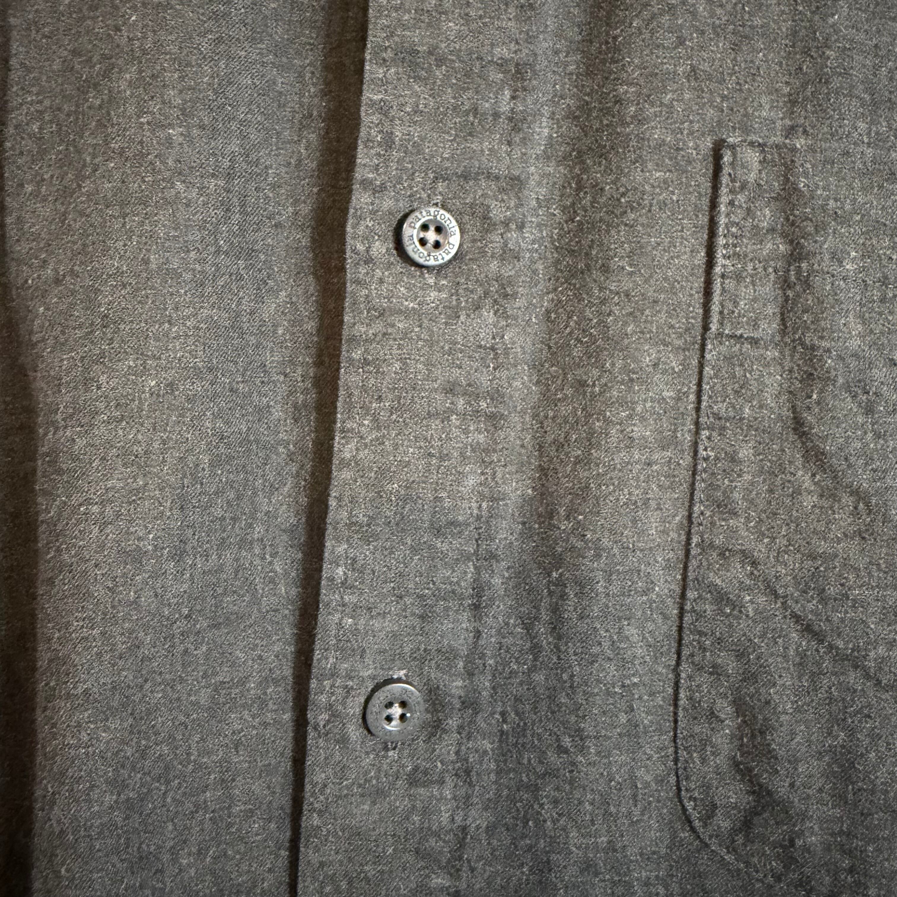 90s Patagoniaの無地長袖シャツ。MADE in China表記のこの年代らしい一枚で、シンプルながら素材感とシルエットで魅せるアイテム。着回しやすく、幅広いスタイリングにハマるヴィンテージシャツ。