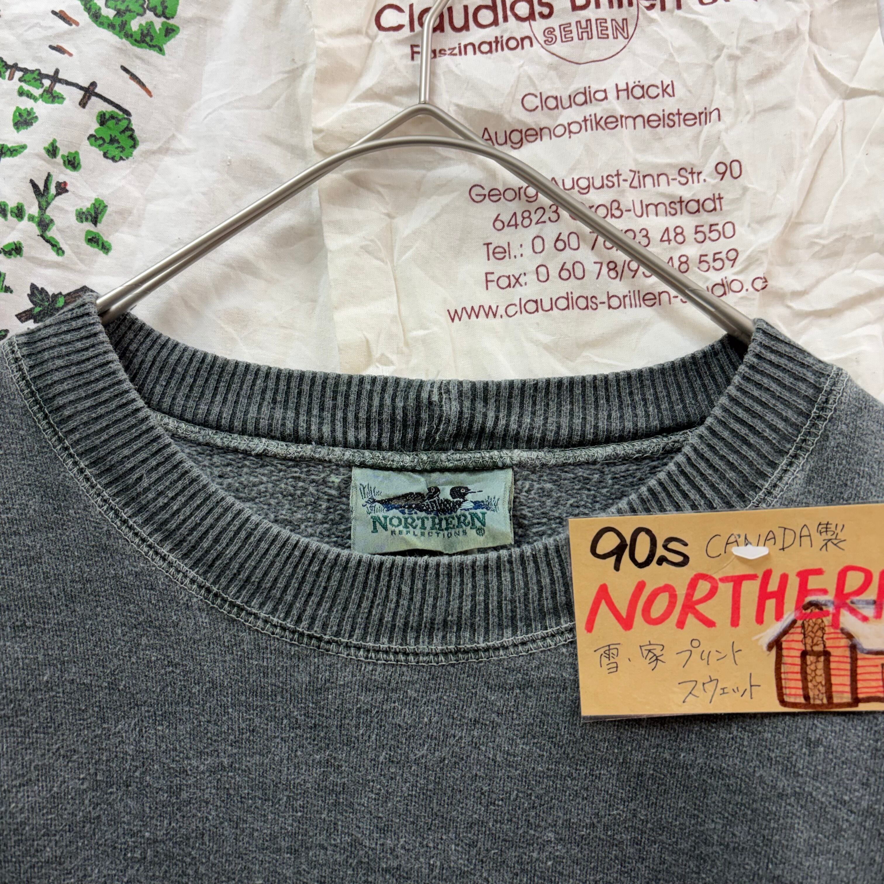 90s CANADA製 NORTHERN 雪・家プリントスウェット