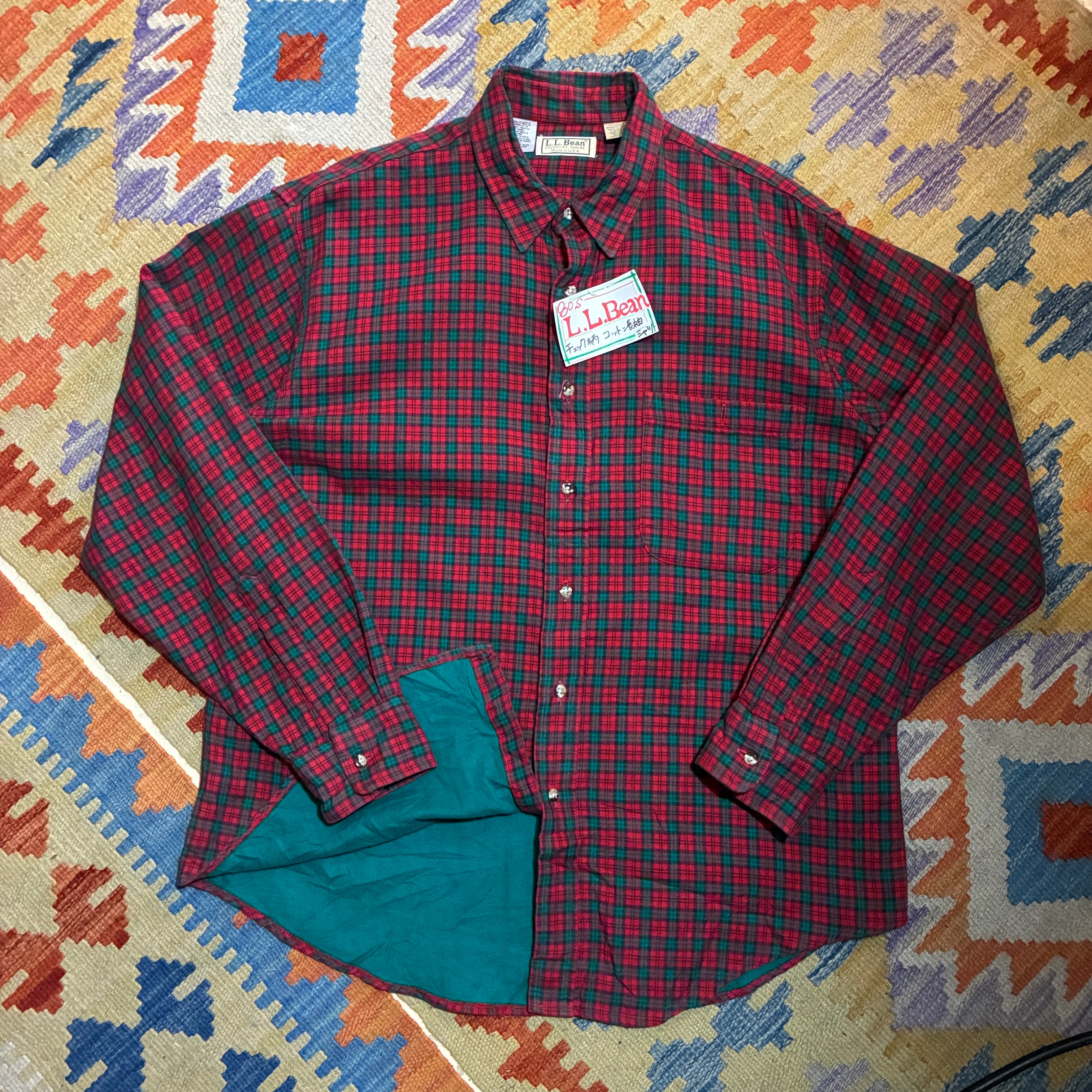 80s L.L.Beanらしいクラシックなチェック柄が魅力のコットンシャツ。しっかりとした生地感と落ち着いた配色で、1枚でも羽織りでも使える着回し力の高いヴィンテージアイテム。