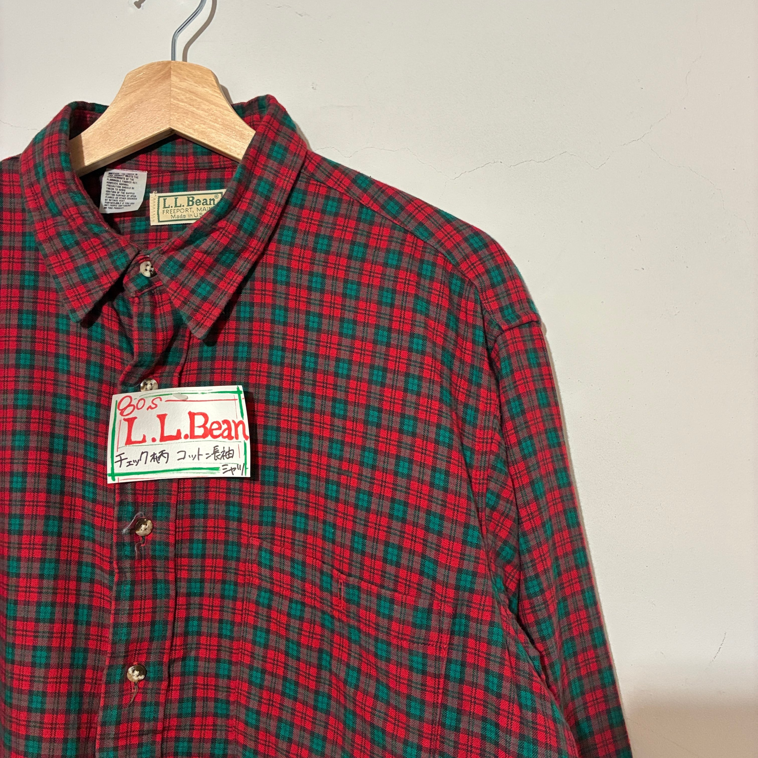 80s L.L.Bean チェック柄コットン長袖シャツ AKB