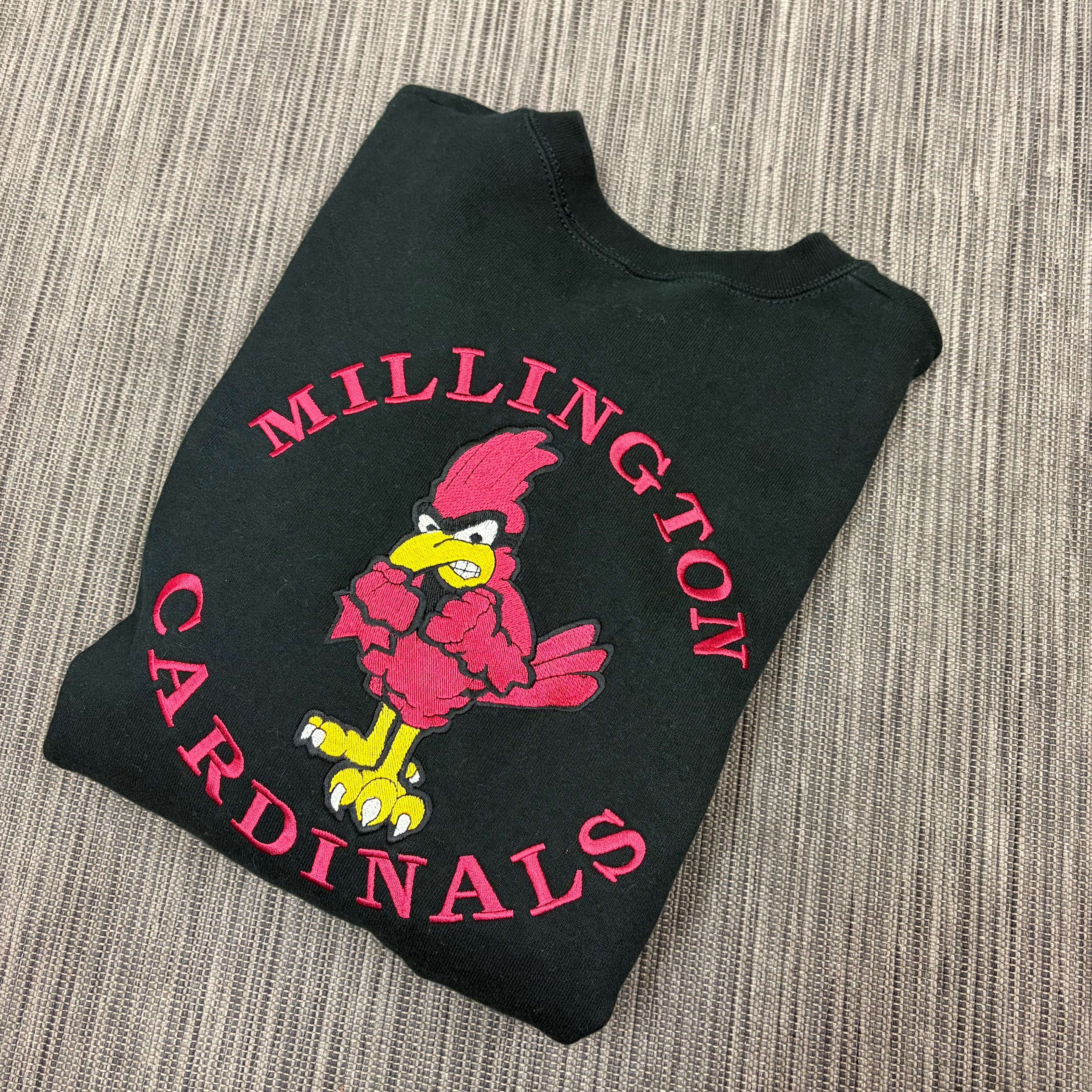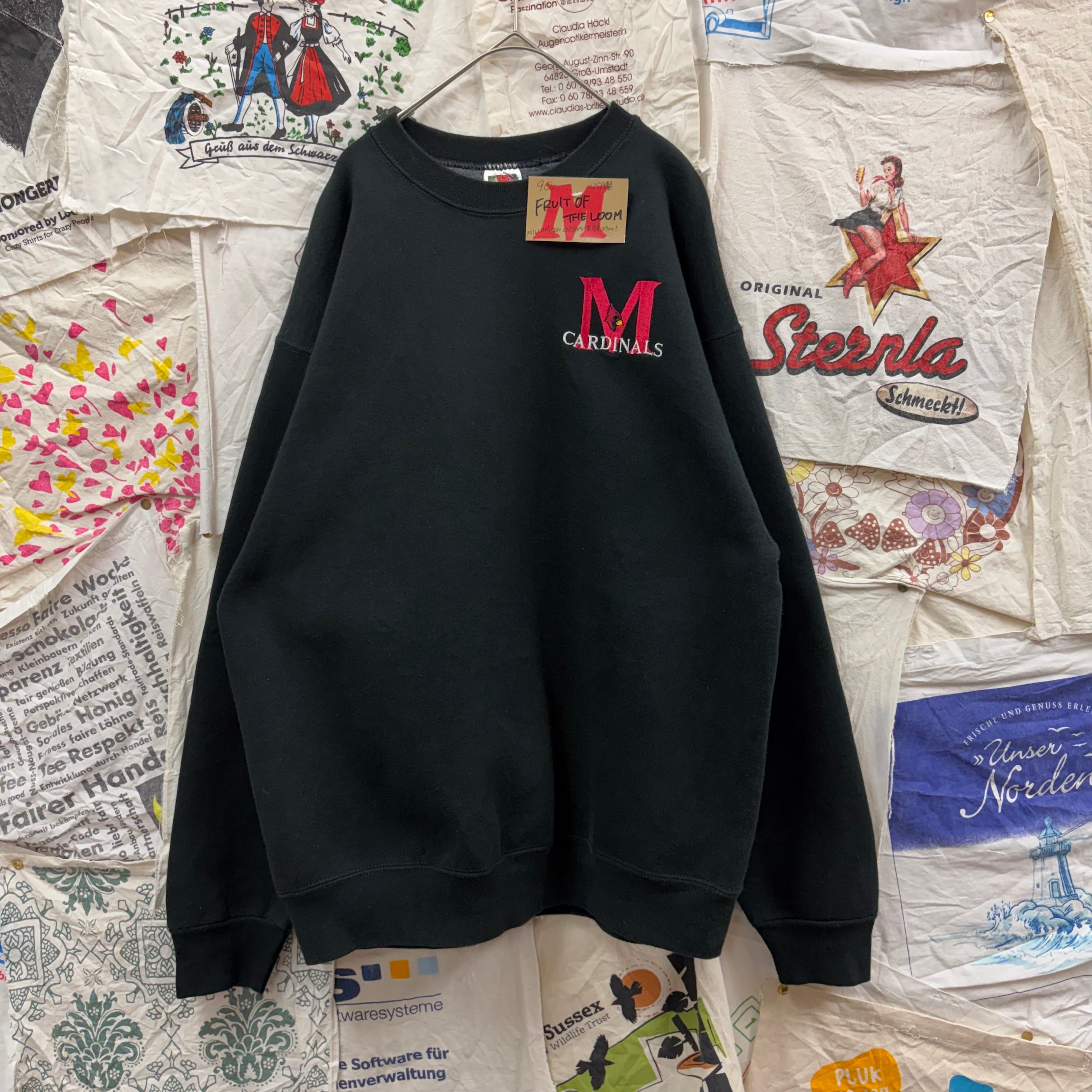 90s USA製 FRUIT OF THE LOOM MILLINGTON CARDINALS刺繍スウェット