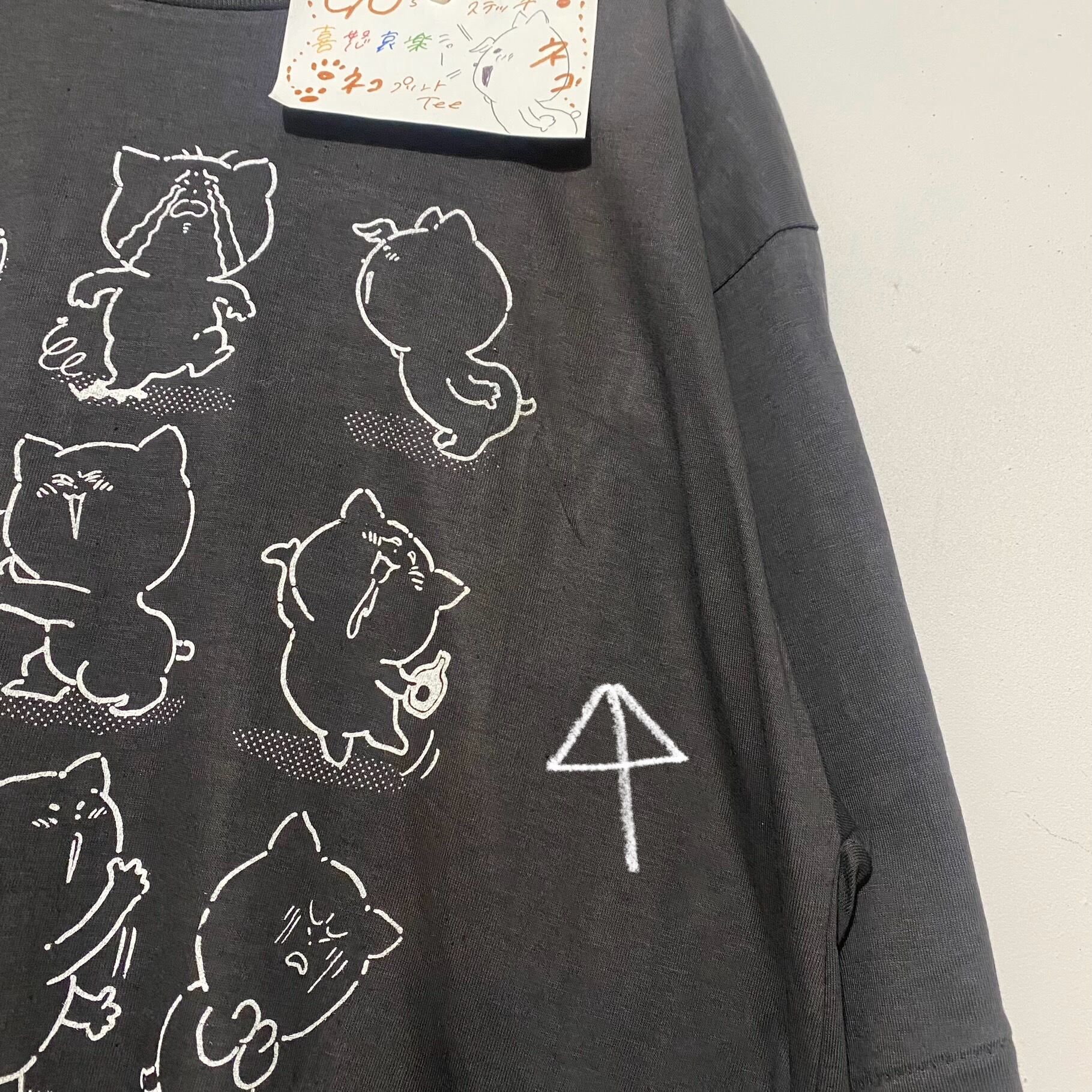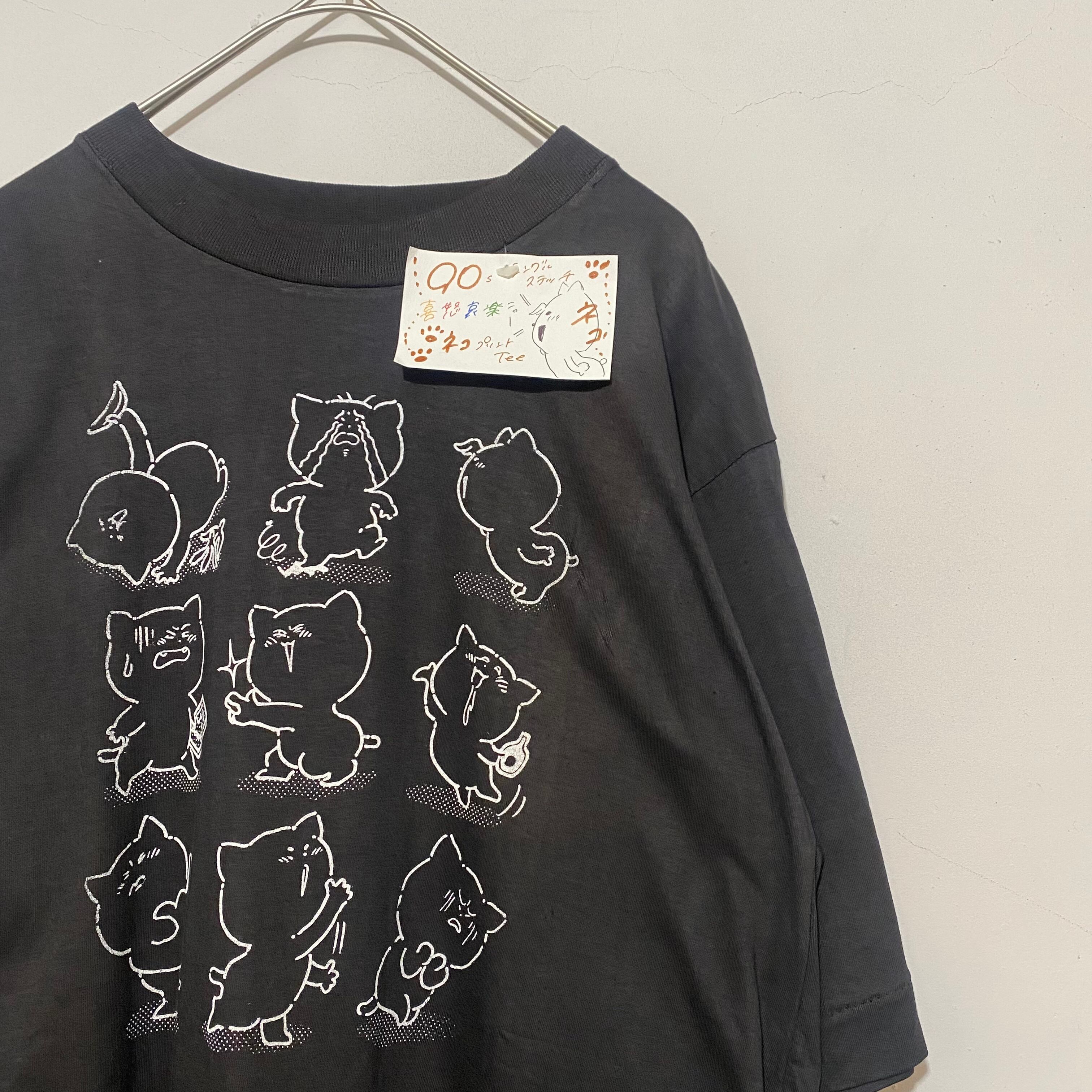90s シングルステッチ 喜怒哀楽 ネコプリント Tシャツ AKB