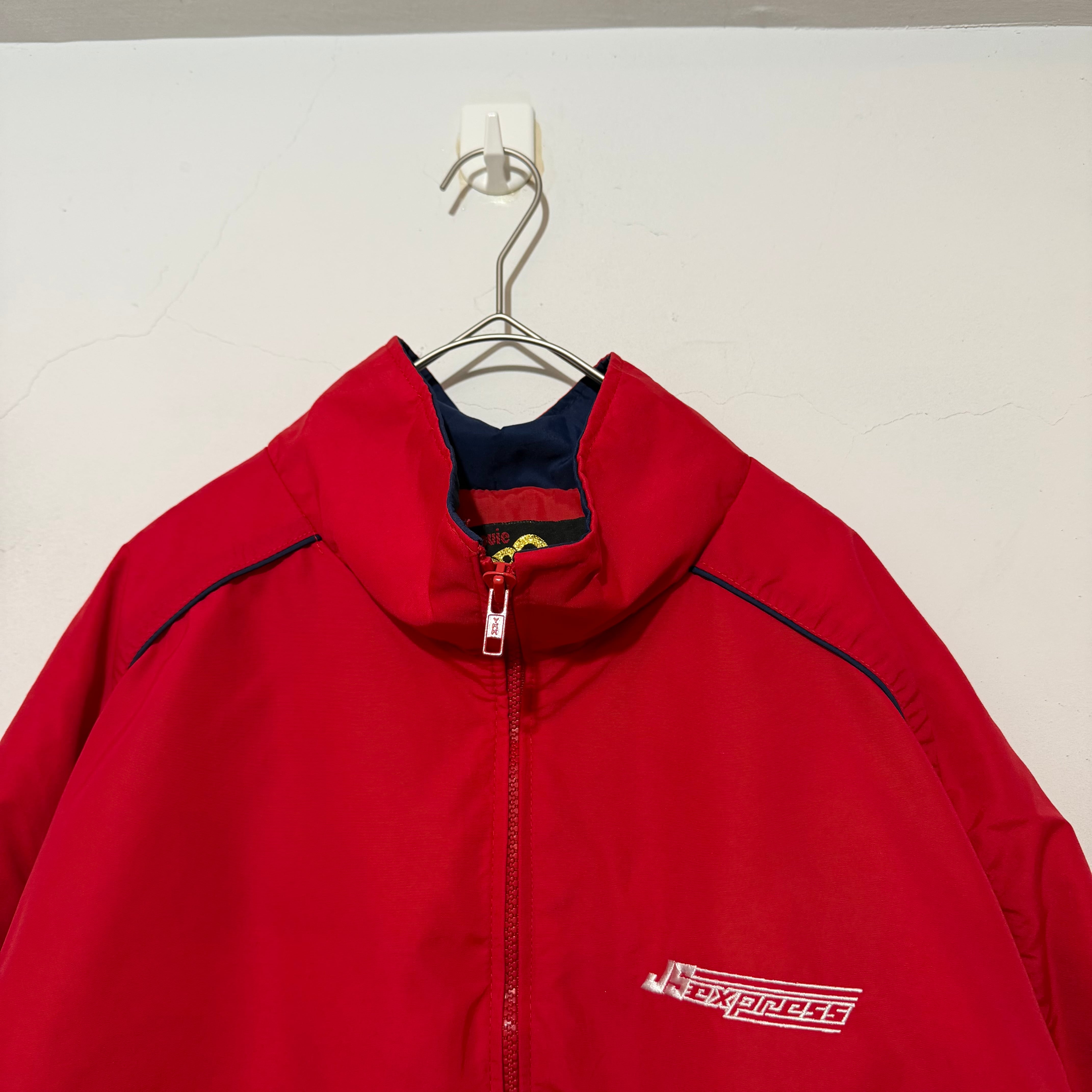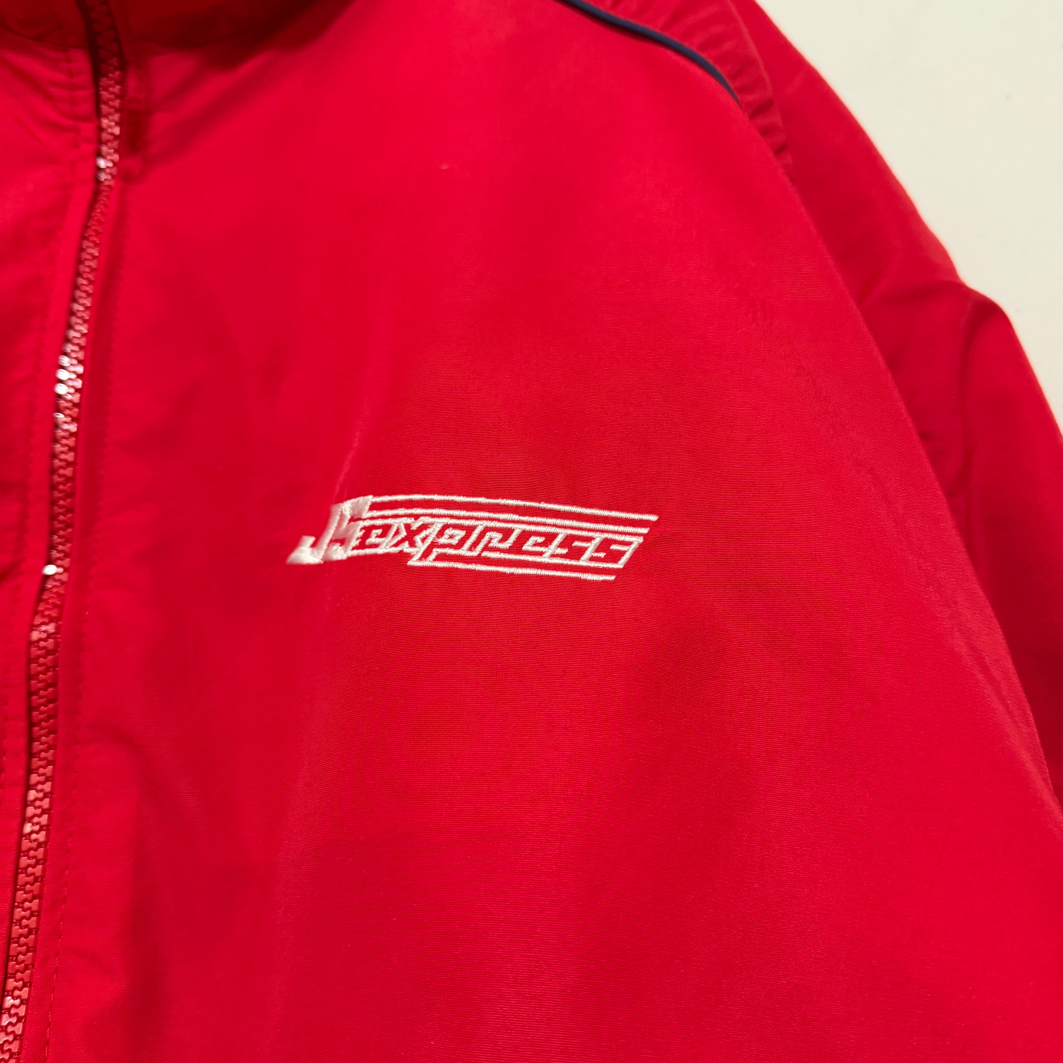 企業ロゴの刺繍が映える、アメリカ古着らしいワークテイストの一着。軽量なナイロン素材でサラッと羽織りやすく、当時特有の無骨さと実用性を兼ね備えたアイテム。ストリートにも落とし込みやすい雰囲気が魅力。