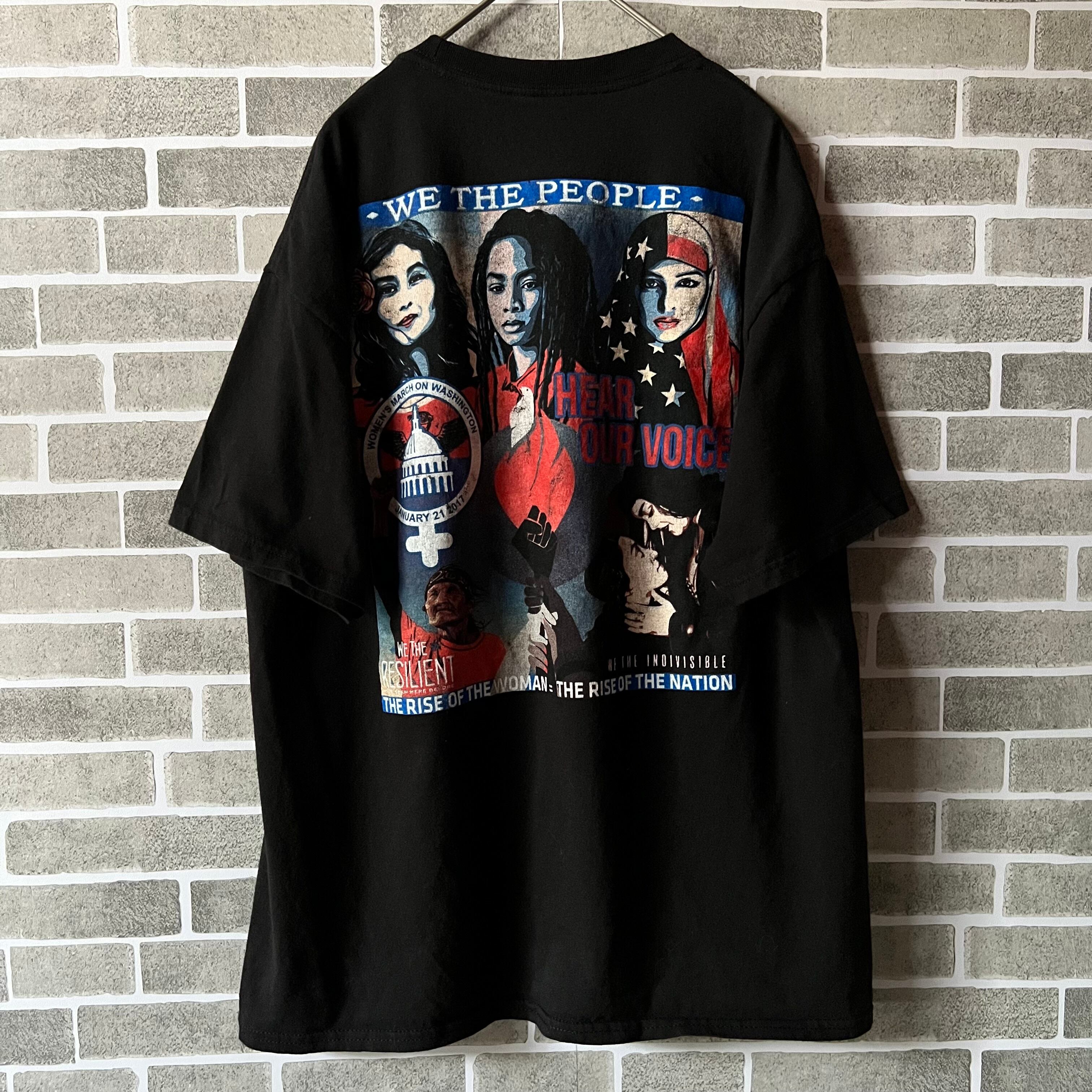 Hanesの有名な2017年ワシントン行進の両面プリントTシャツとなっております。