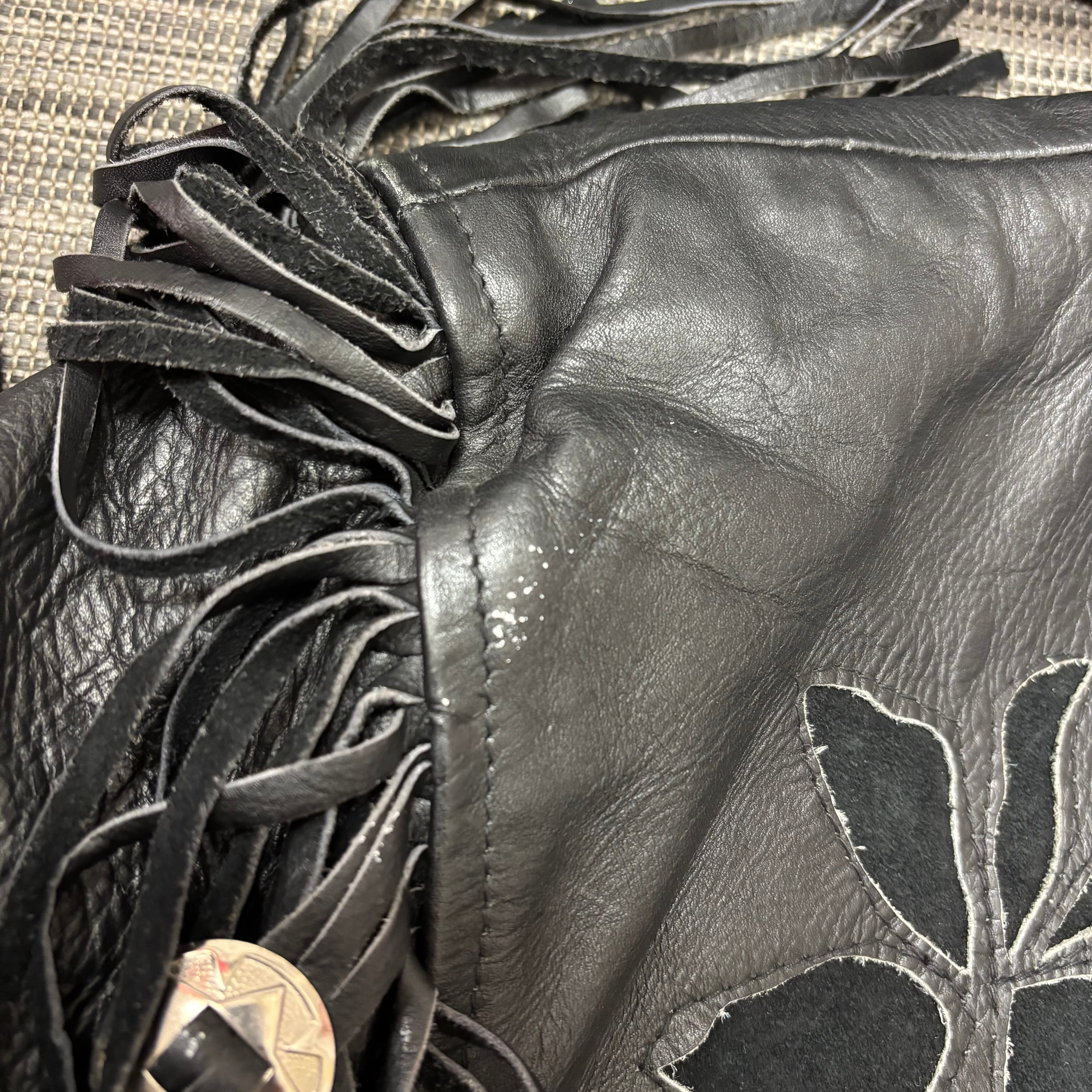 ブラックレザー花柄フリンジジャケット