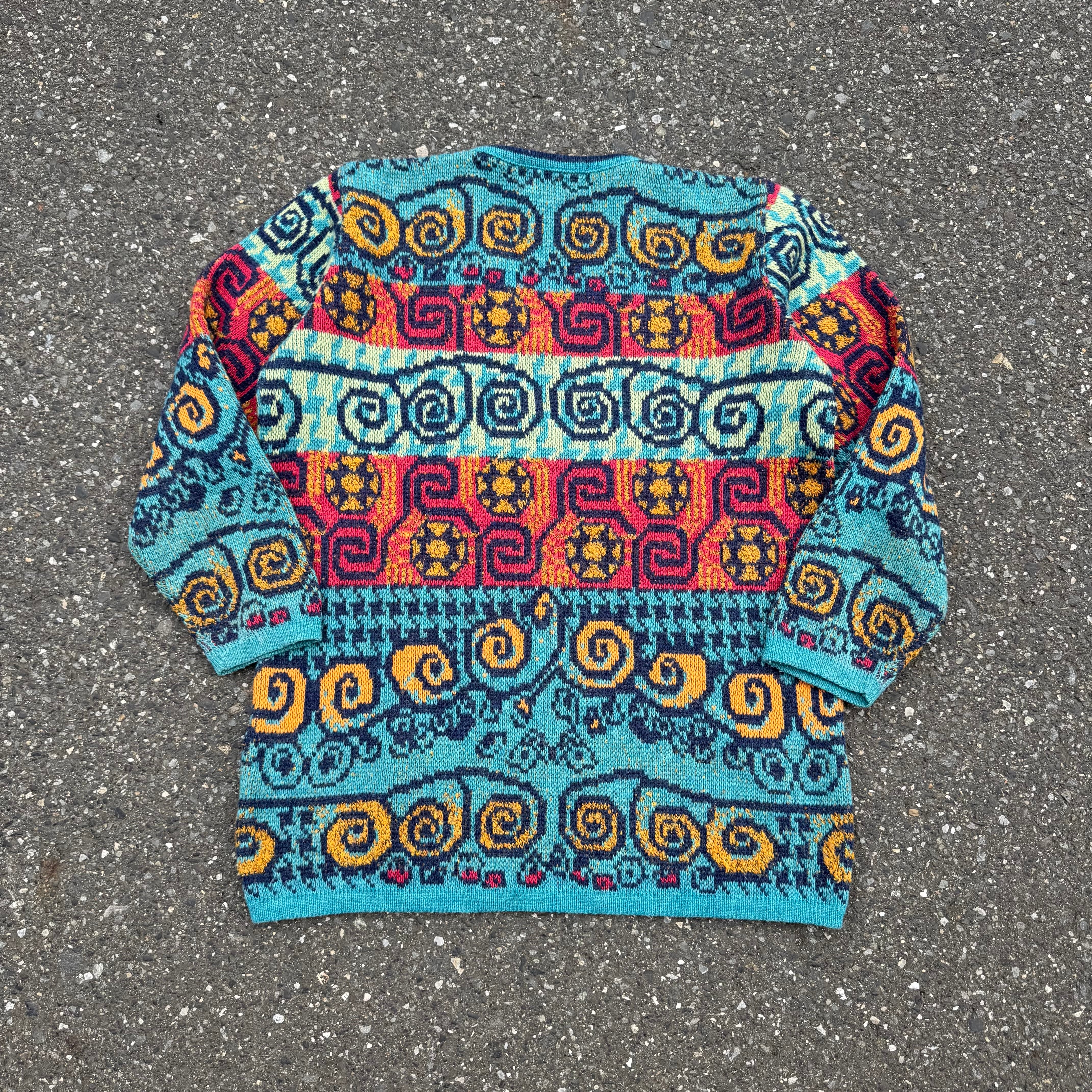 80-90s フランス製 LE LAUREAT 総柄VネックニットAKB