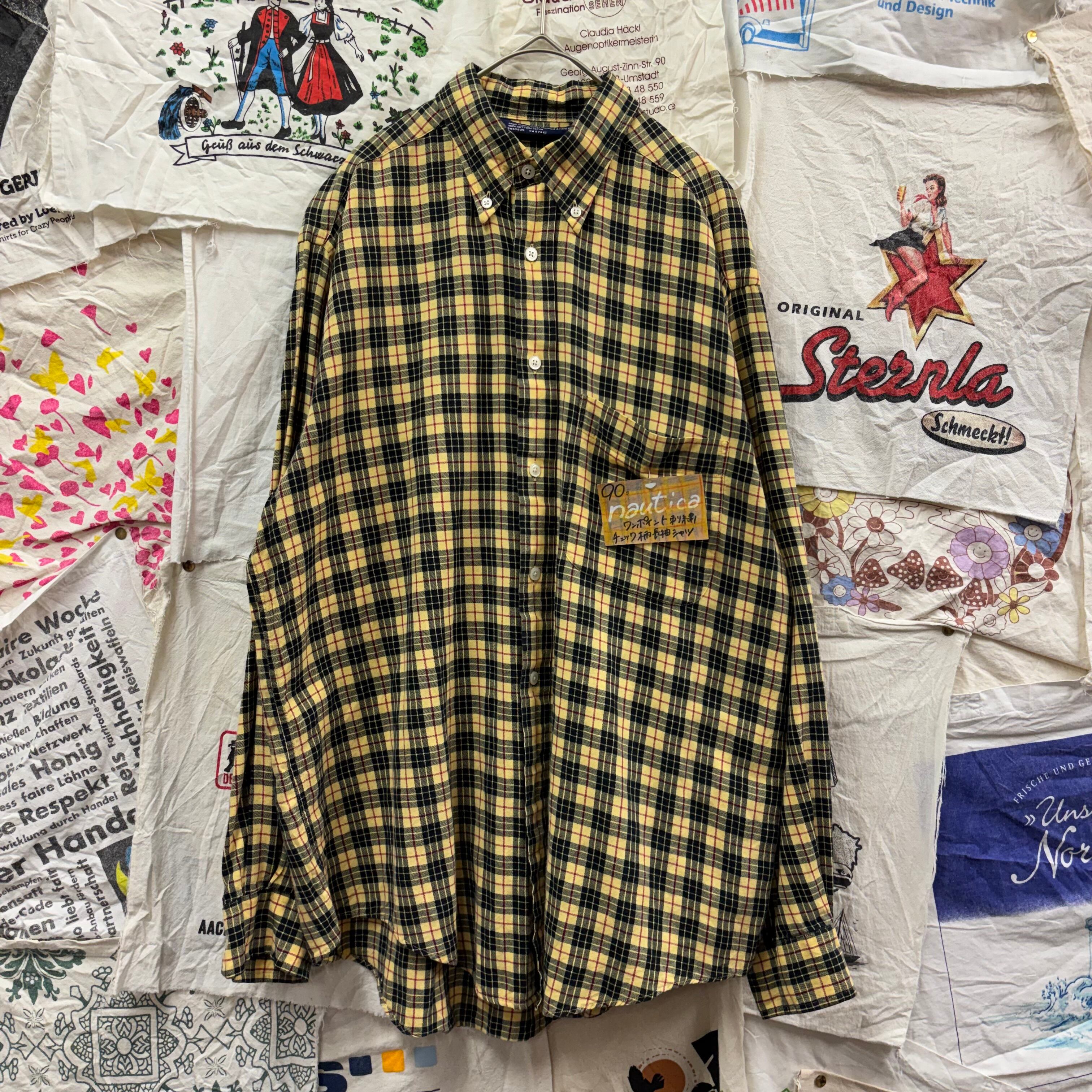 90s NAUTICA ワンポイント刺繍 チェック柄長袖シャツ