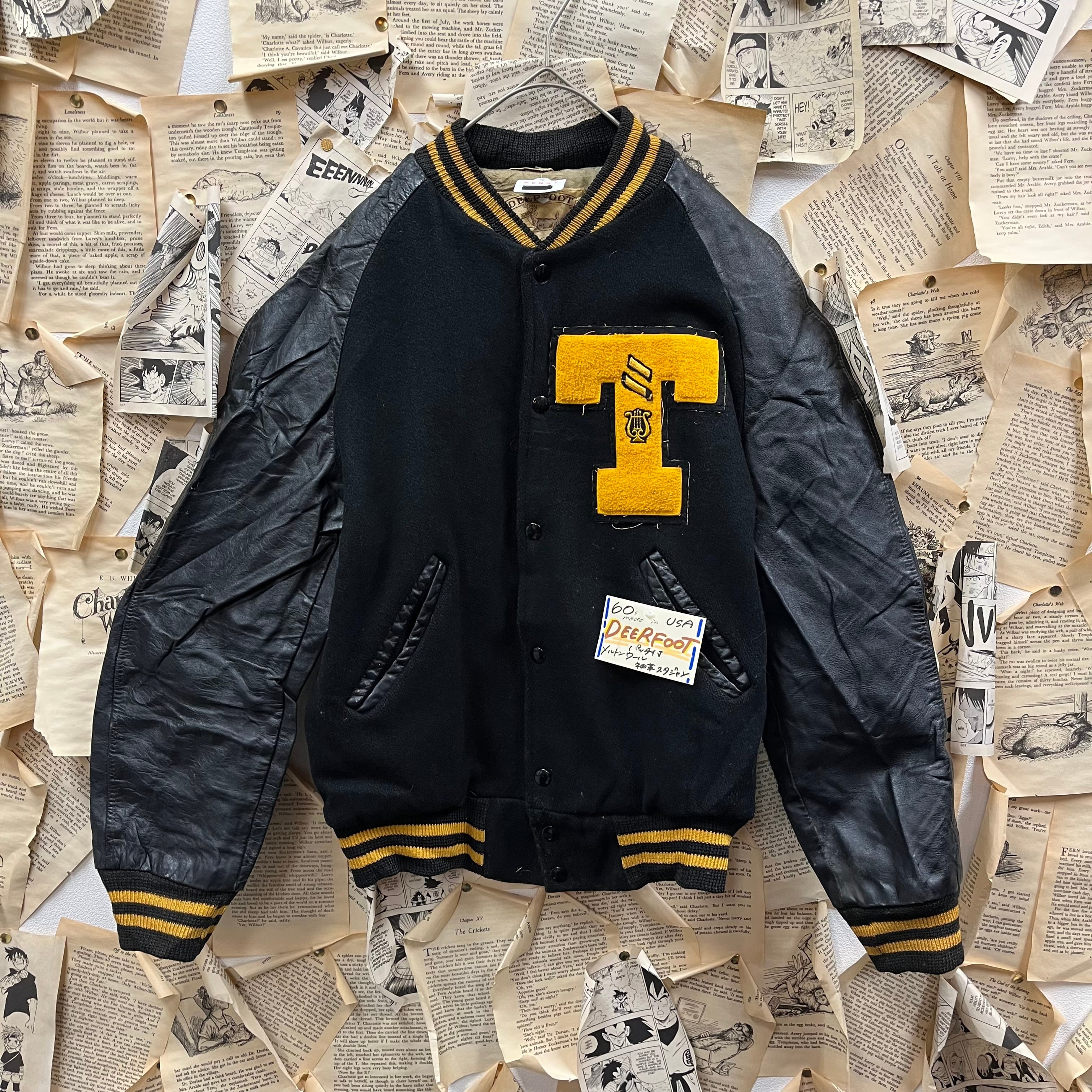60s USA製 DEERFOOT パッチ付 メルトンウール袖革スタジャン
