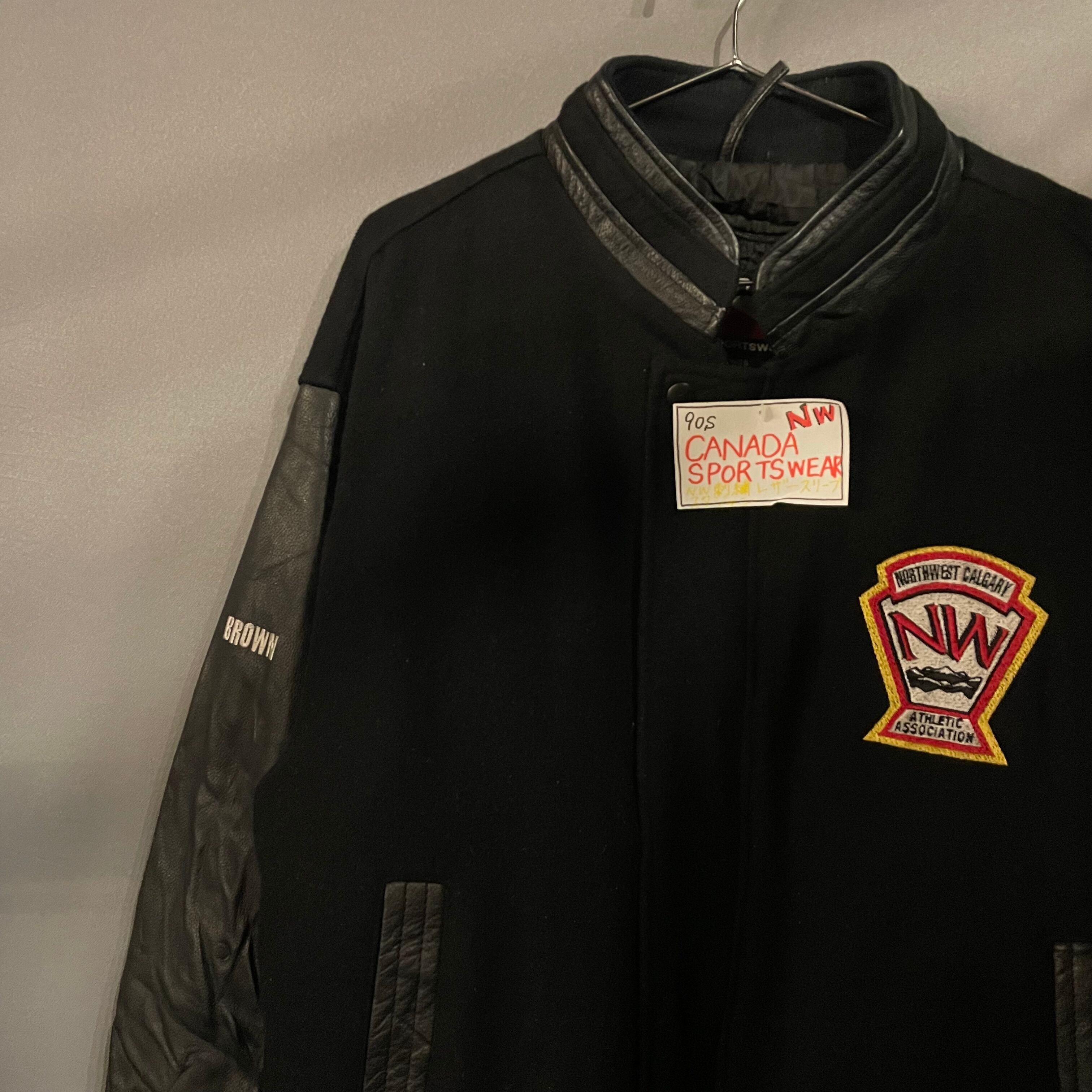 90s CANADA SPORTSWEAR NW刺繍レザースリーブスタジャン となっております。